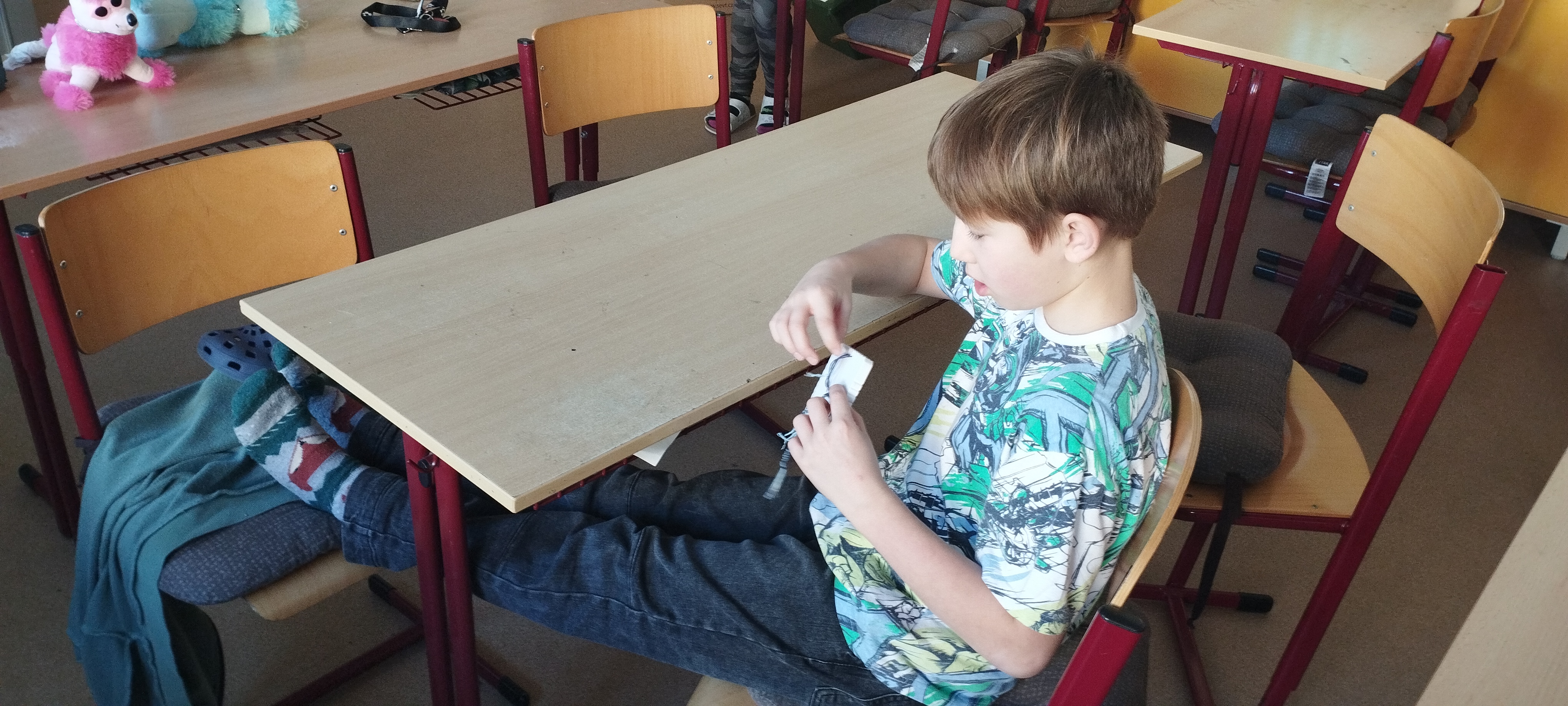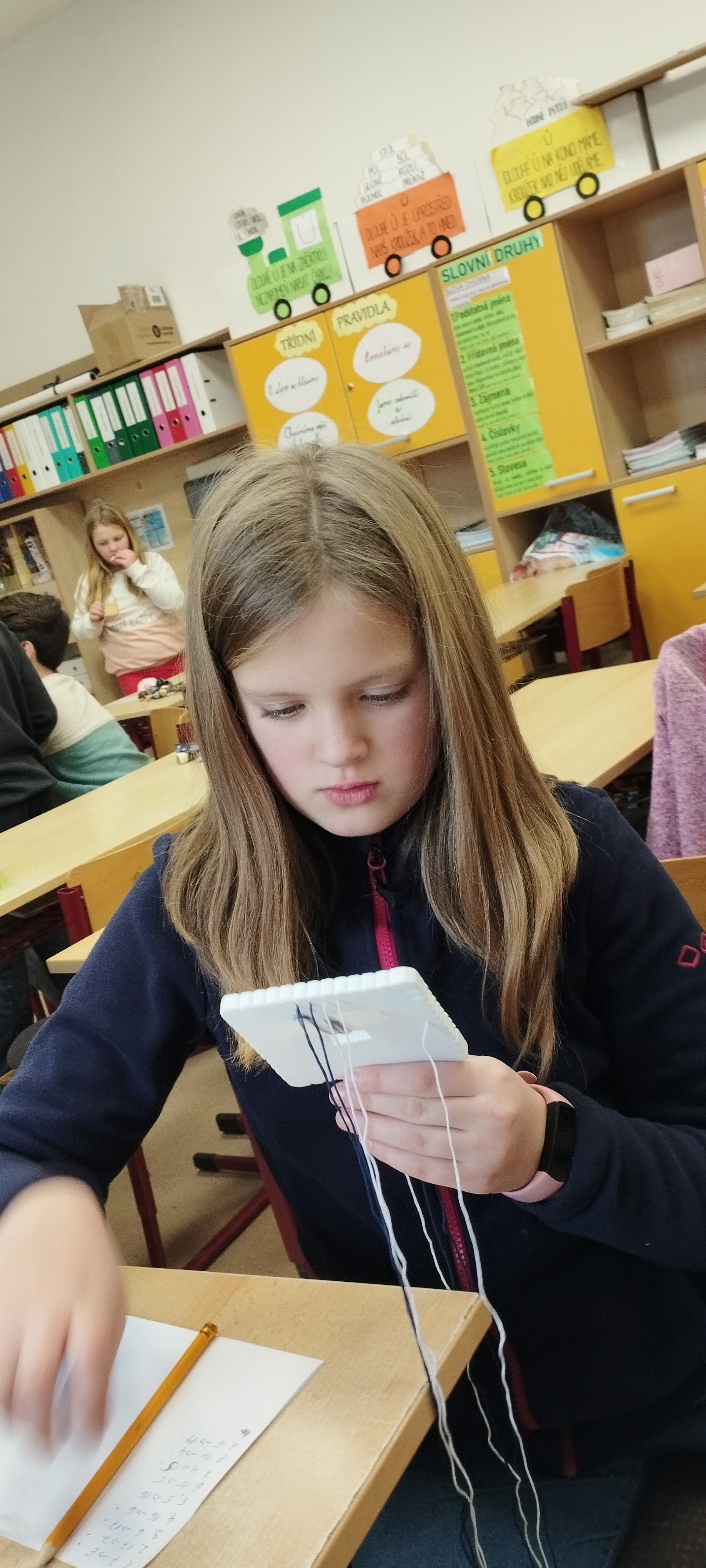 V lednu jsme ale také tvořili - děti si vyzkoušely vyrobit náramek pomocí KUMIHIMO metody, což se stalo hitem měsíce.