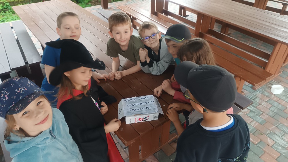 V pátek 3.5. jsme se vydali na čarodějnickou stezku, kterou pro všechna oddělení ŠD nachystala p. vychovatelka Adámková, které tímto patří velké poděkování. Na stezce jsme nejen plnili úkoly, ale také odpovídali na otázky a zapisovali písmenka, která byla důležitá pro vyluštění šifry. Všechny úkoly byly zábavné a otázky zajímavé a poučné. Přecházeli jsme bažinu, házeli pytlem s bylinkami, prolézali pavoučí sítí, ale také kouzlili a míchali lektvary. Dále jsme poznávali jarní květiny, hledali rozdíly, doplňovali logické řady,... V cíli jsme tedy zdárně vyluštili šifru, ale to stále ještě nestačilo. Museli jsme ještě objevit 3 čísla a najít správný číselný kód. Nakonec jsme vše úspěšně zvládli a otevřeli truhlu, kde na nás čekala zasloužená odměna. A poté ve družině i zasloužený odpočinek:-)) (viz. poslední fotografie)