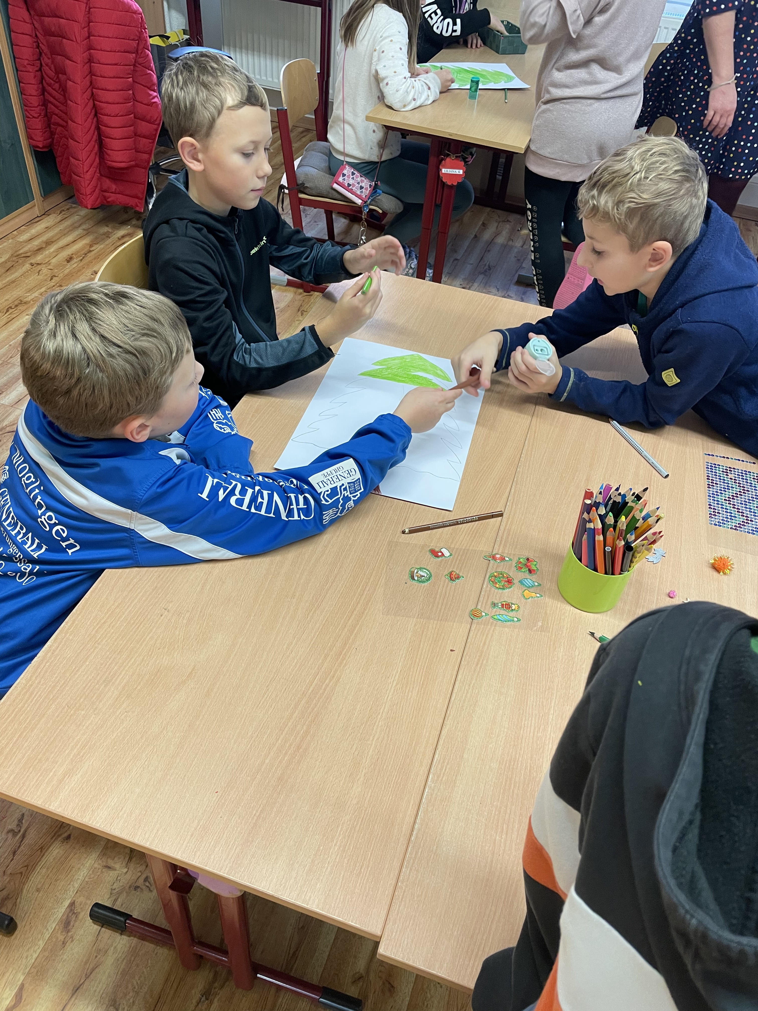 V rámci vánočního období jsme s dětmi tvořily stromečky na čtvrtky, které si ozdobily dle vlastni fantazie.