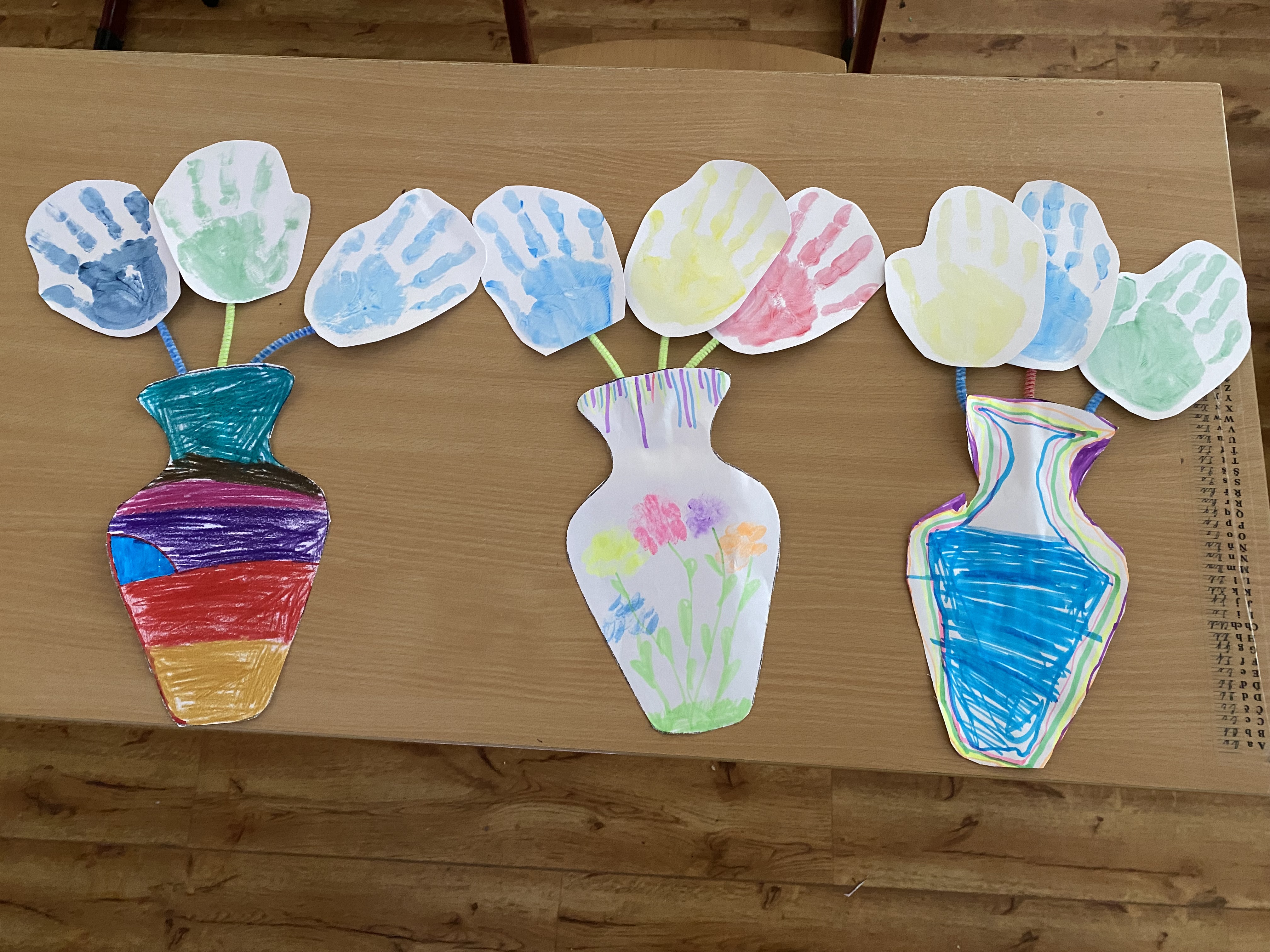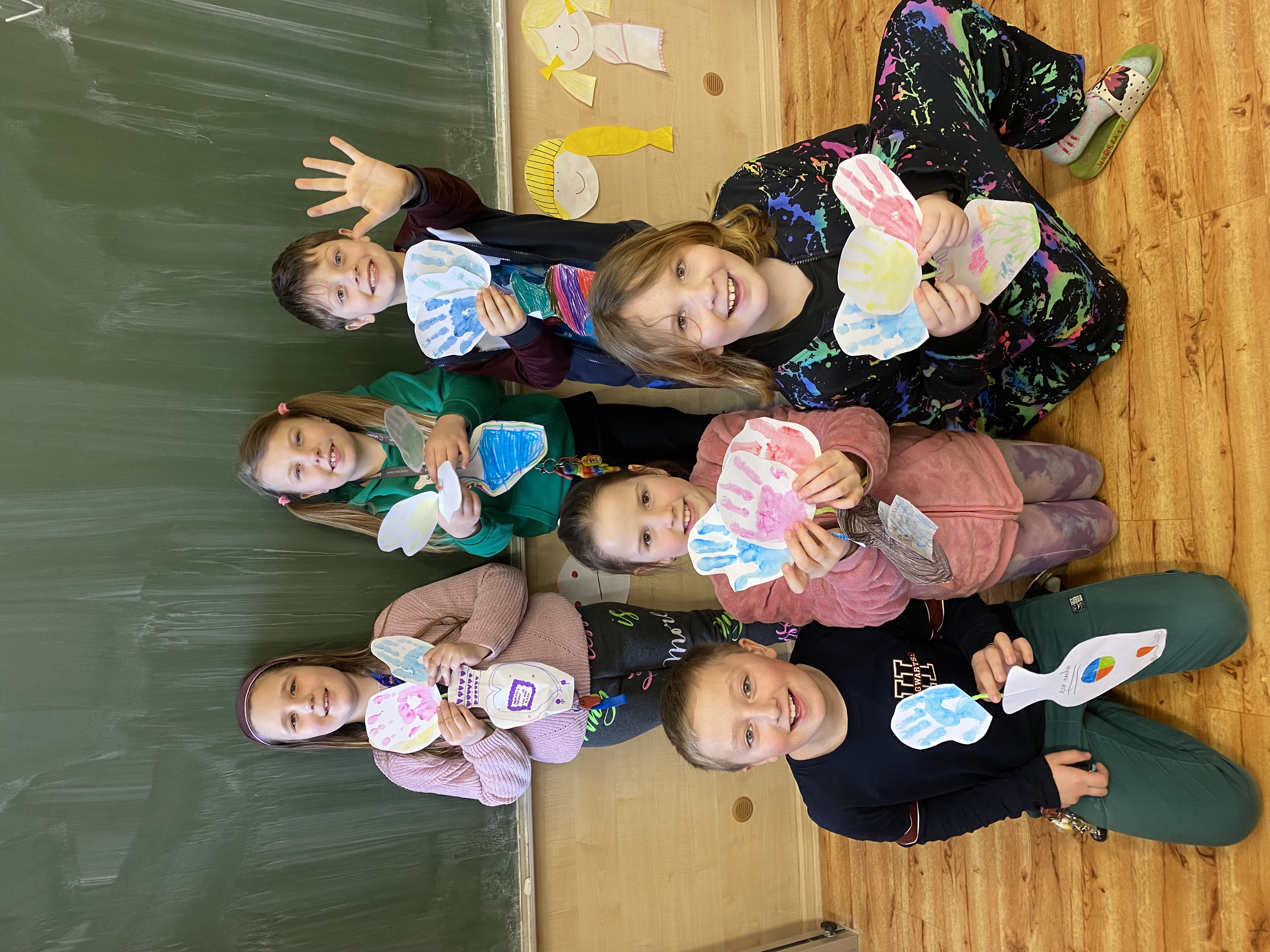 Valentýn jako svátek zamilovaných jsme ve družině pojali jako svátek všech, co se mají rádi, a proto jsme obtiskli ručičky, následně je slepili k sobě a tím vytvořili květiny jako dárek pro naše blízké.