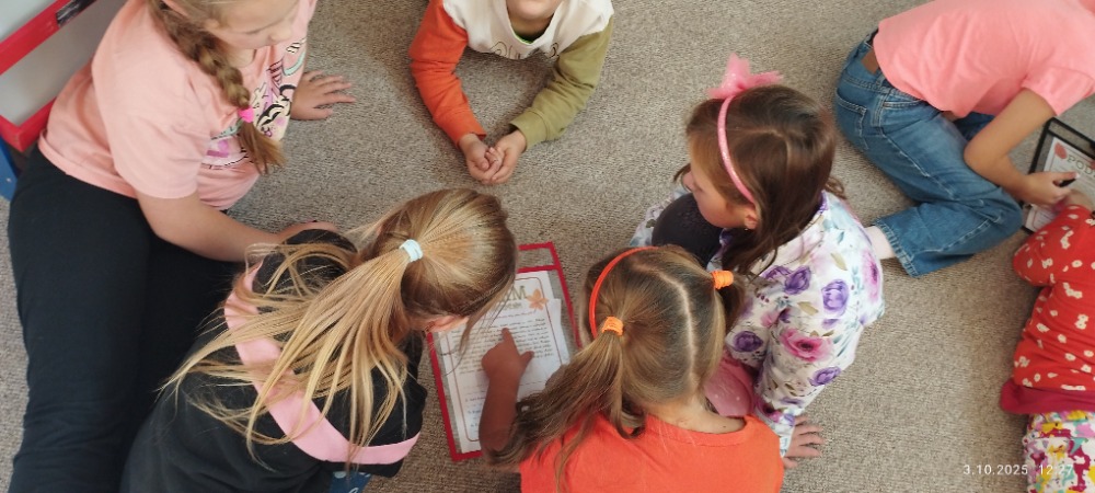 Každý den děti přišly oblečené do jiné barvy a nebo si donesly předmět v dané barvě – v úterý červená, ve středu oranžová, ve čtvrtek žlutá a v pátek hnědá. Díky tomu byla naše družina krásně pestrá a veselá.