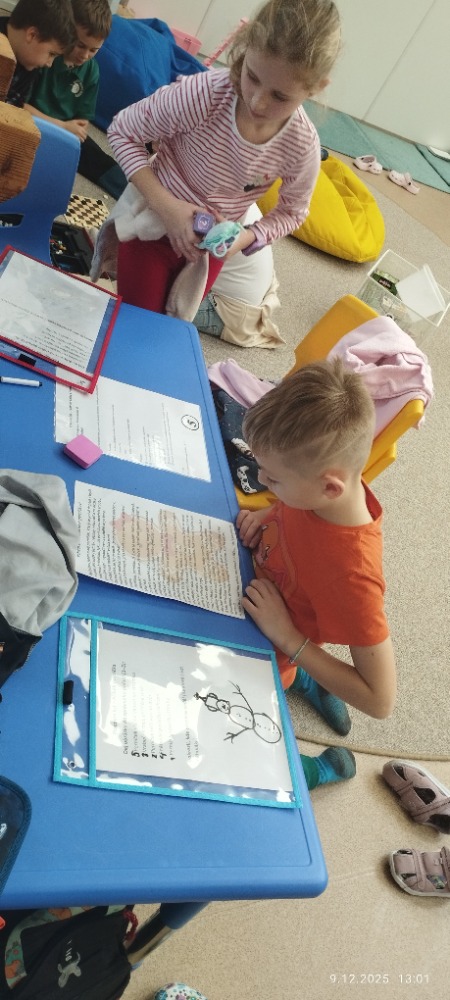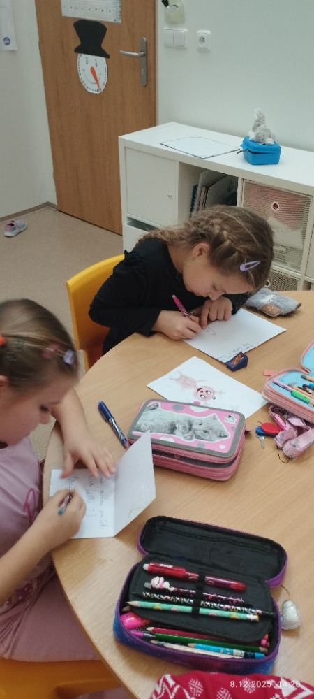 V centru kostek děti stavěly vše, co k cukrárně patří – pulty, vitríny, trouby i celé cukrářské provozy. V objevech a pokusech se zaměřily na poznávání vůní vánočního koření, které neodmyslitelně patří k adventnímu času. V centru knihy a písmen jsme se věnovali čtení s porozuměním a společně si přečetli pohádku o Perníčkovi. Děti si při hrách a činnostech nejen užily spoustu radosti, ale zároveň rozvíjely spolupráci, představivost i své dovednosti, které přirozeně propojily s vánočním tématem.