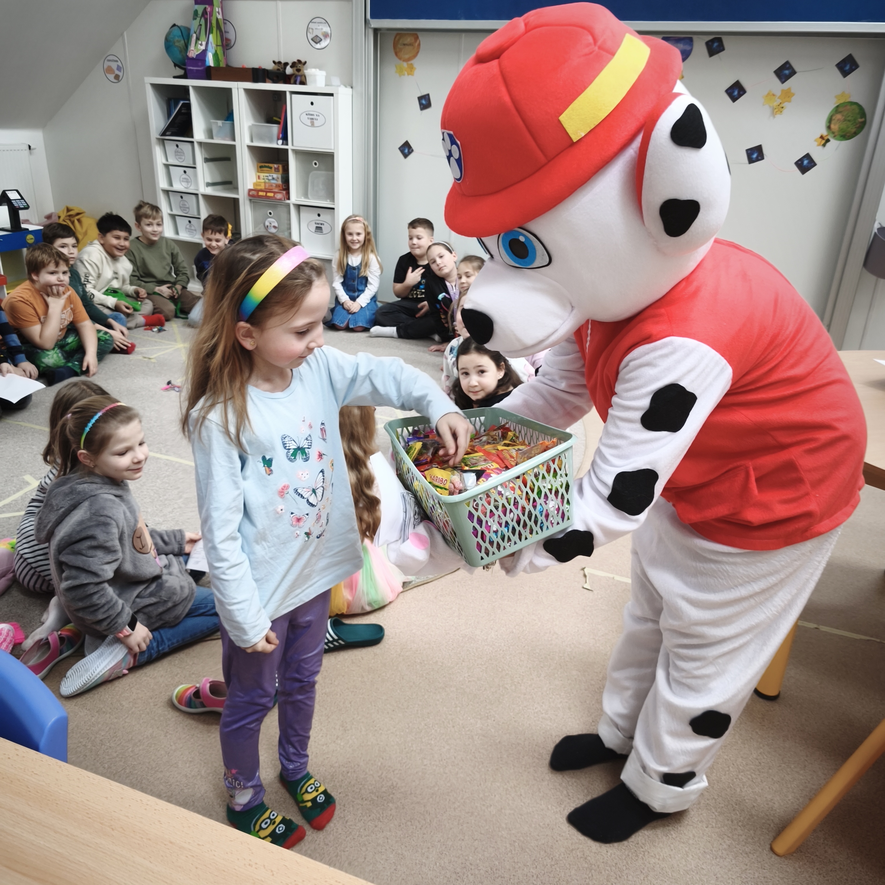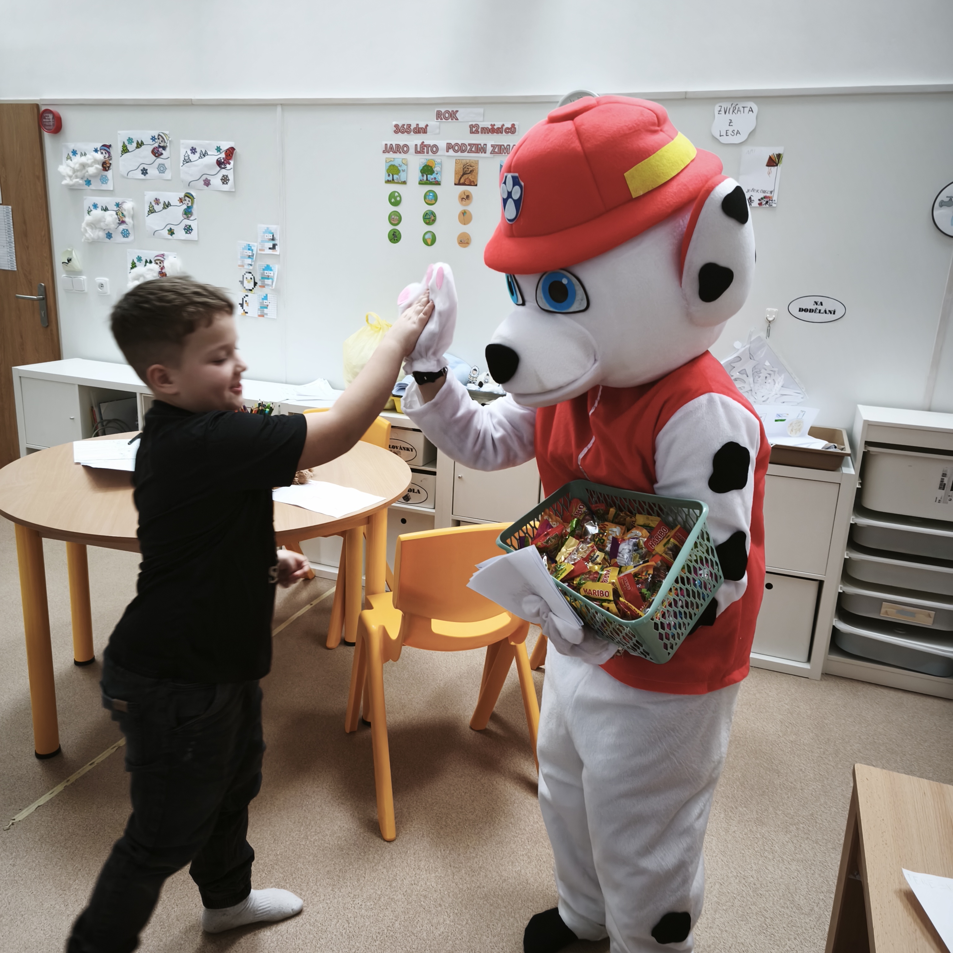 Ve čtvrtek na vysvědčení čekalo pro žáky ve školní družině velké překvapení. Do družiny dorazila jedna z postav TLAPKOVÉ PATROLY a to MARSHALL. Dětem předal pochvalný list od paní vychovatelky a sladkou odměnu.