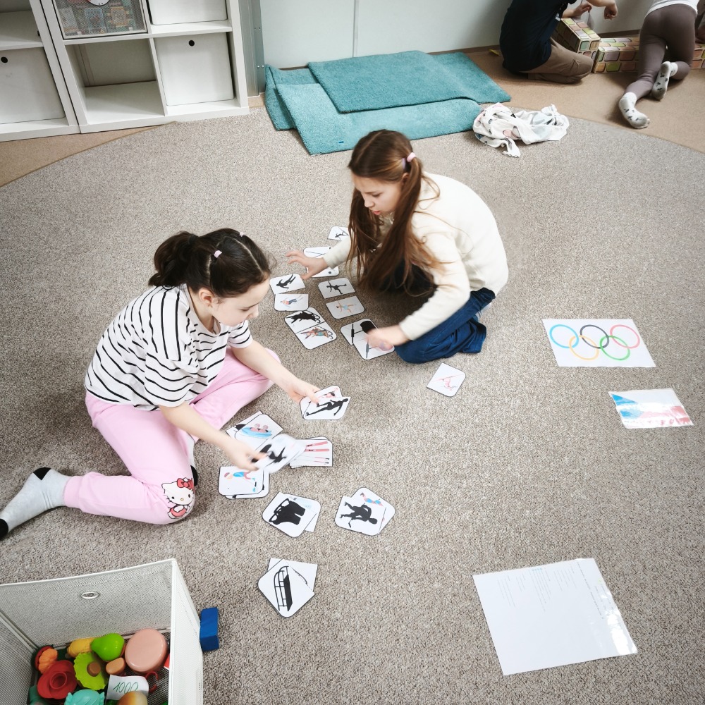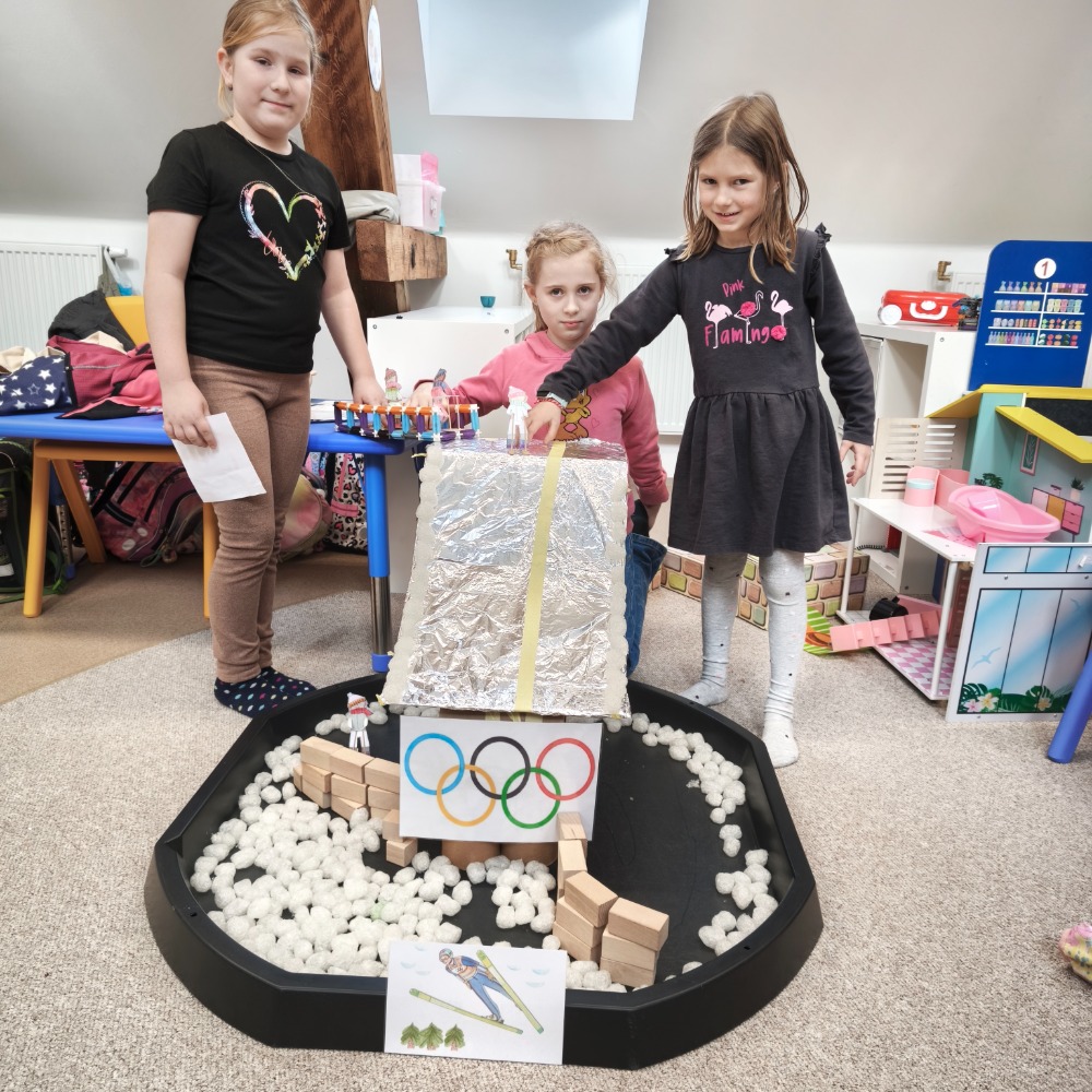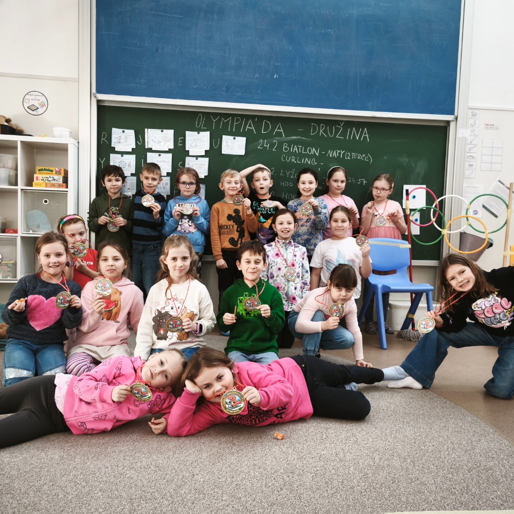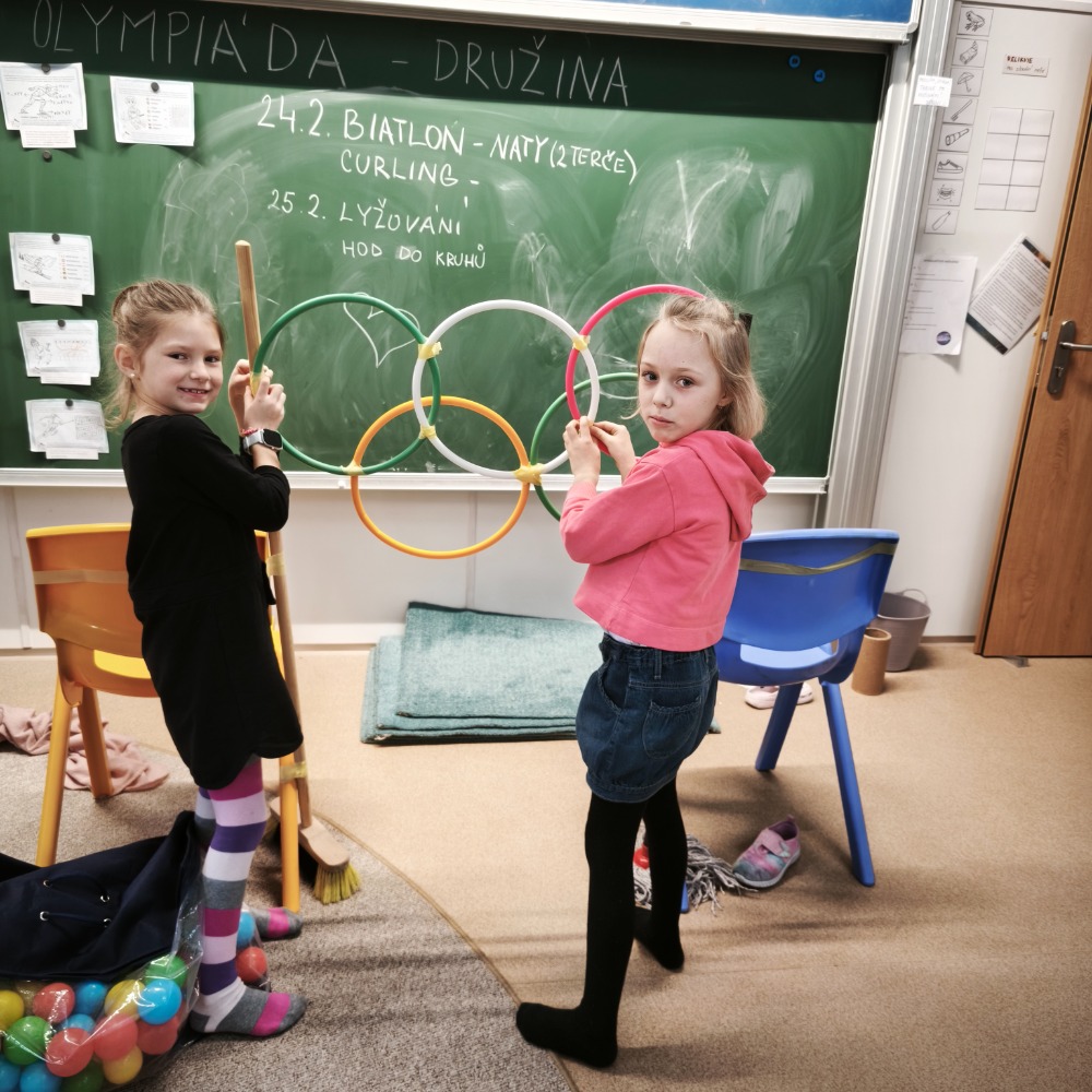 Ve školní družině Dinosaurů to během posledních dvou týdnů vypadalo skoro jako na opravdových zimních hrách. Celé období jsme věnovali zimním sportům, olympijské myšlence a hlavně radosti z pohybu. Děti si vyzkoušely, jaké to je soutěžit, fandit kamarádům a překonávat samy sebe. Každý den na malé sportovce čekaly olympijské disciplíny. Děti postupně absolvovaly například curling, kde se snažily co nejpřesněji dopravit své „kameny“ do vyznačeného kruhu. Velký úspěch měl také biatlon, při kterém musely děti nejdříve zvládnout běžeckou část a poté se soustředit na přesnou střelbu na cíl. Velkou dávku odvahy a šikovnosti si děti vyzkoušely při sjezdovém lyžování, kde rozhodovala rychlost i obratnost mezi překážkami. Neméně napínavé byly lety na lyžích, kde se sportovci z papíru snažili „doletět“ co nejdále. Další disciplínou byl hod do olympijských kruhů, který prověřil přesnost a pevnou ruku. Olympijská atmosféra ale nebyla jen o sportování. Děti byly velmi tvořivé a během odpoledních aktivit si samy vyrobily skokanský můstek, lanovku, ale také malé sportovce – skokany na lyžích, snowboardisty i bobisty. Díky jejich nápadům se družina proměnila v malé zimní sportovní středisko. Po celý týden také děti postupně luštily olympijskou šifru. Na závěr celé olympiády nechyběla ani slavnostní chvíle. Paní vychovatelka pro děti vyrobila opravdové olympijské medaile, které si všichni sportovci zaslouženě odnesli domů. Při závěrečném vyhlášení jsme si připomněli, že nejdůležitější není jen vyhrát, ale hlavně si sport užít, pomáhat si a fandit ostatním.