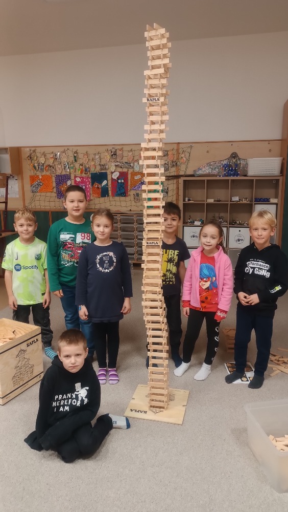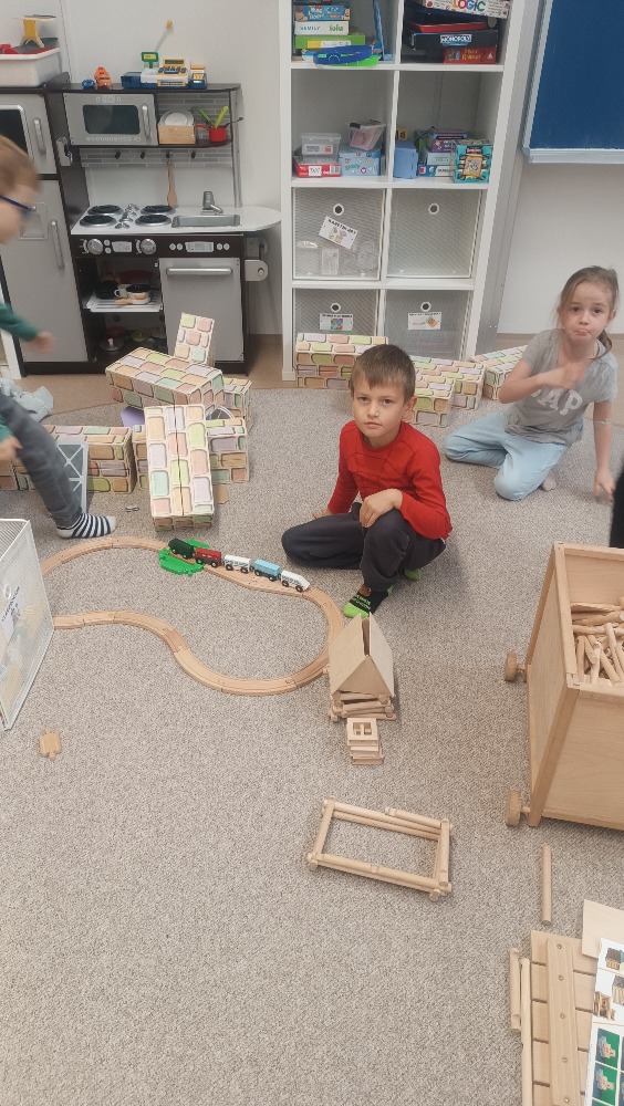 Odpoledne v naší družině patří mimo práce v Centrech aktivit také volné hře, při které si děti mohou odpočinout a zároveň rozvíjet svou fantazii i spolupráci. Oblíbené jsou především stavebnice Seva, Lego a Gravitrax, se kterými vznikají nejrůznější vynálezy, města i dopravní dráhy.
