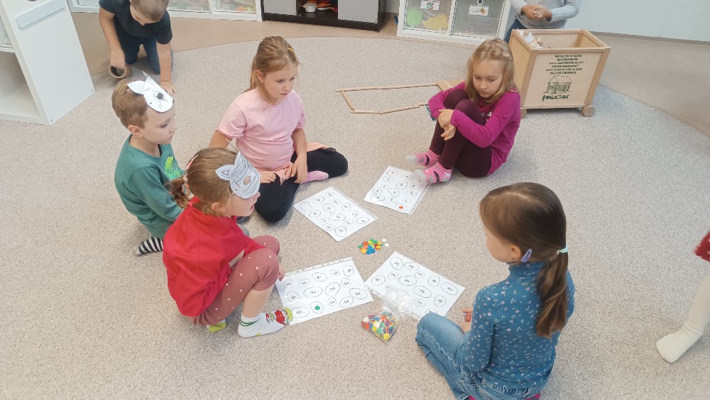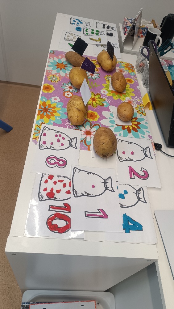 Manipulační a stolní hry – modelovaly brambory do pytlů s čísly a hrály hru s kostkou - Sbírání brambor