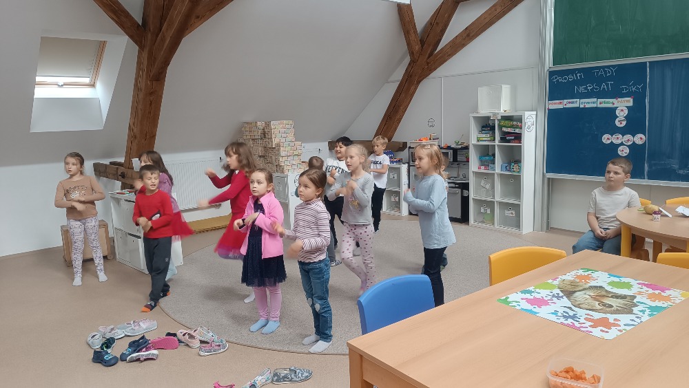 Hudba - poslouchaly a tancovaly na písničku Brambora