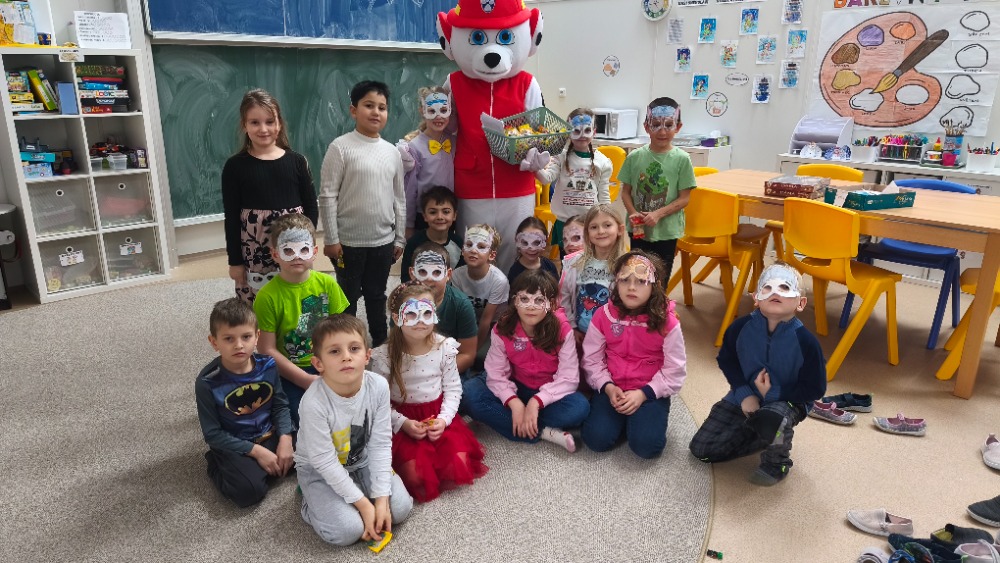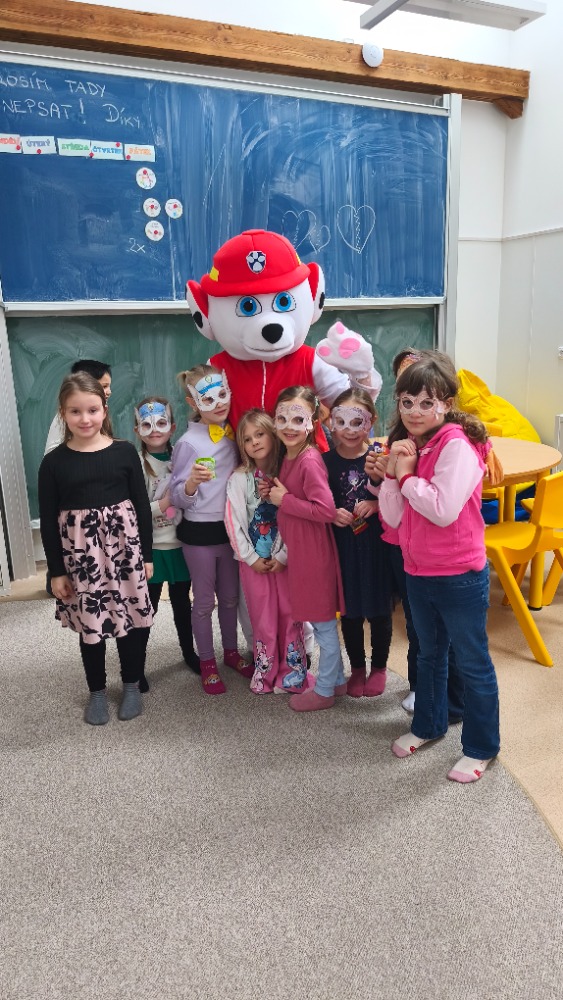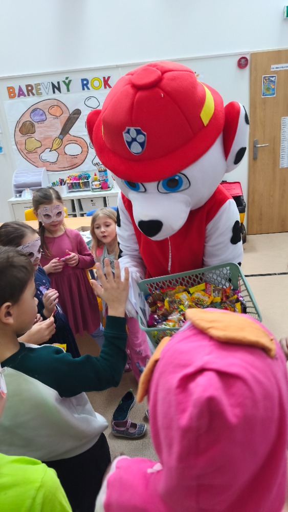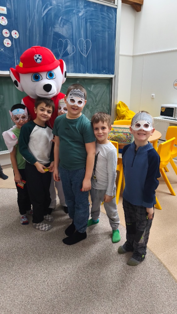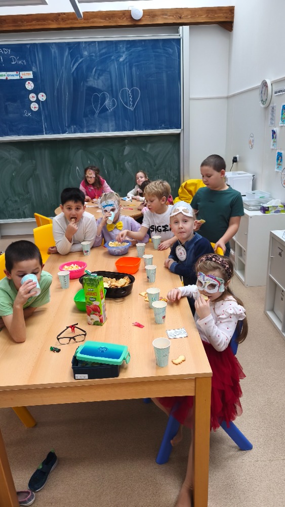 Den rozdávání prvního vysvědčení jsme si i ve družině udělali slavnostní. Už den předem jsme se na něj společně připravovali. V kuchyňce jsme pekli máslové sušenky pro ohlášenou návštěvu – věděli jsme, že k nám někdo přijde, ale kdo to bude, zůstávalo tajemstvím. Jedna skupina dětí se věnovala pečení sušenek, druhá mezitím vyráběla masky, aby bylo vše na slavnostní den připravené. V den "D" jsme si udělali malou oslavu – pochutnali jsme si na sušenkách, připravili si popcorn, zapíjeli ho jablečným džusem a užívali si společný čas. Největším překvapením ale byla návštěva Marshalla, který k nám přišel, zhodnotil náš uplynulý půlrok v družině a popřál dětem mnoho dalších krásných dnů. Celé odpoledne se tak neslo v radostné a slavnostní atmosféře a bylo kráskou tečkou za prvním školním pololetím.