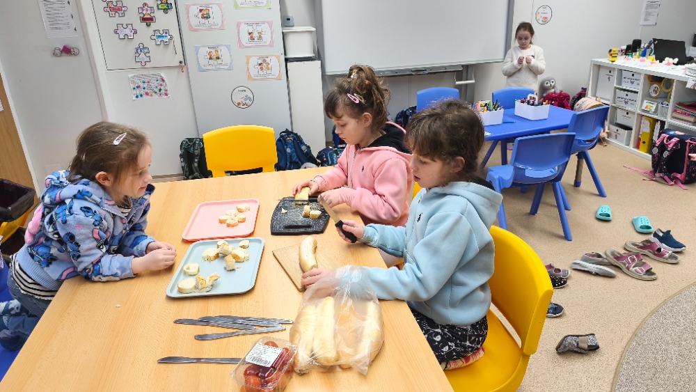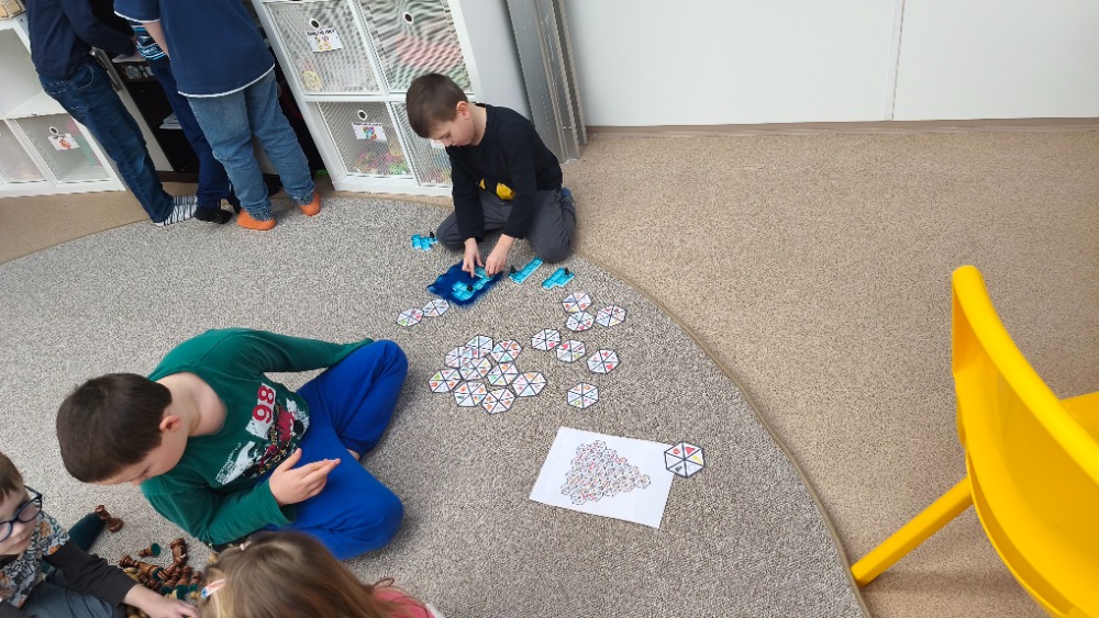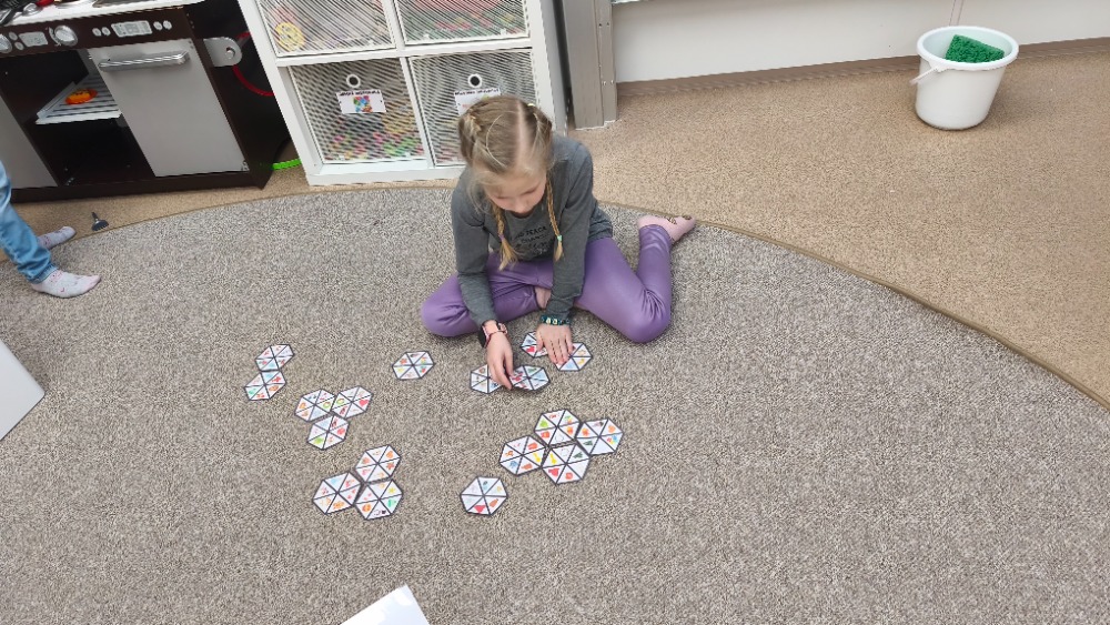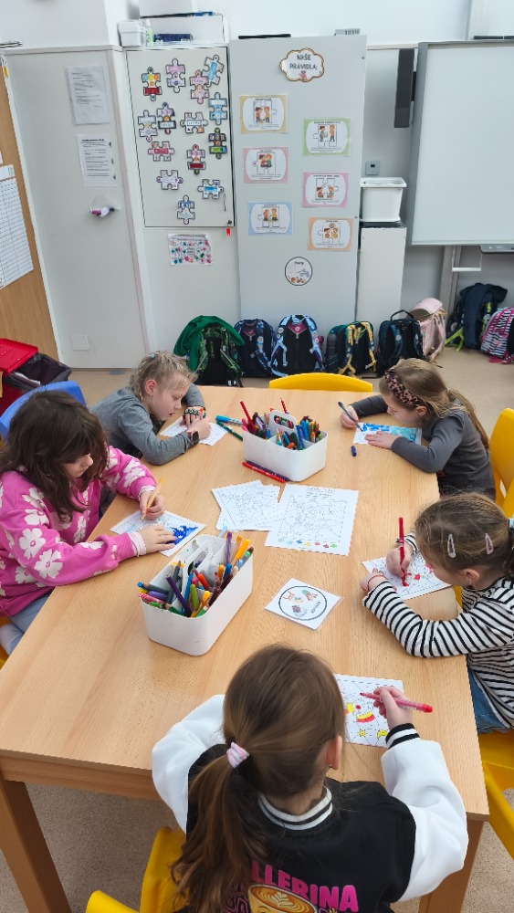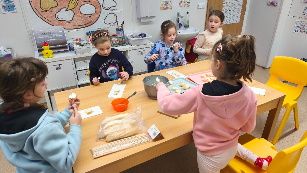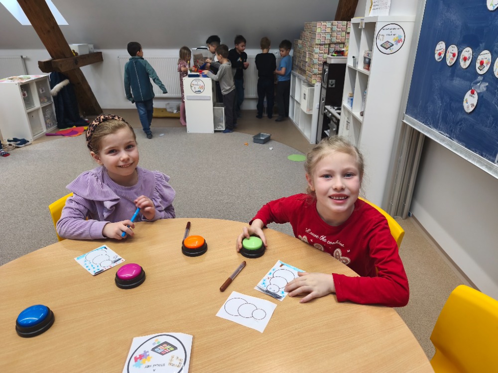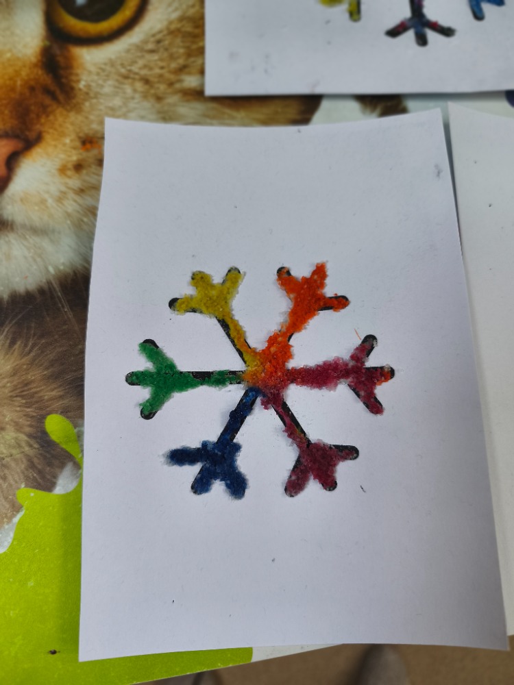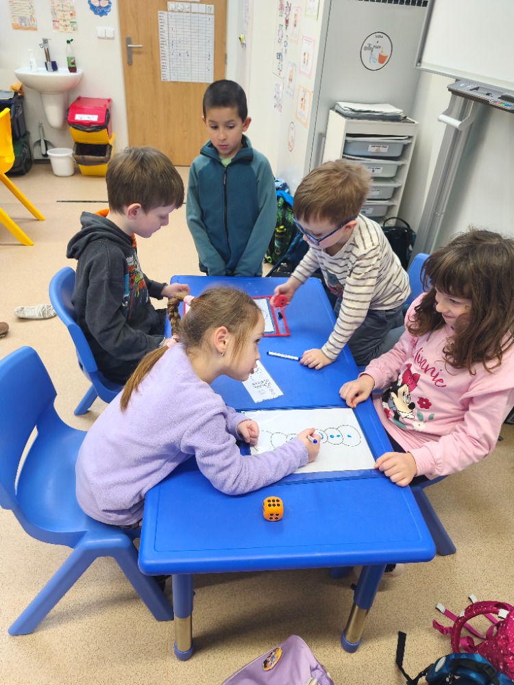 Jedním z aktuálních a zároveň velmi obsáhlých témat bylo Sníh a sněhuláci, kterému jsme v družině věnovali dva týdny. Společně jsme si povídali o zimě, jejích znacích a proměnách a četli jsme poučný příběh o vločce Bělince. Děti se zapojily do celé řady tvořivých i objevovacích aktivit. Vyráběly 3D obrázky sněhuláků, malovaly vločky lepidlem a solí, do kterých poté zapouštěly barvy, stavěly sněhové vločky z dřívek, kostek a bambulek. Novou zkušeností byla práce se zvukovými tlačítky, podle jejichž hlasových pokynů děti dokreslovaly obrázky. Vyráběly také 3D vločky z polystyrenu, párátek a trubiček, skládaly hexagon a odhalovaly vločky pomocí světelného panelu nebo baterky. Nechyběl ani sníh v reálném prostředí – alespoň na pár dní jsme si ho mohli užít venku. Celé téma jsme zakončili výrobou sněhové pomazánky a přípravou sněhuláka z jednohubek, na kterém si děti hned pochutnaly.