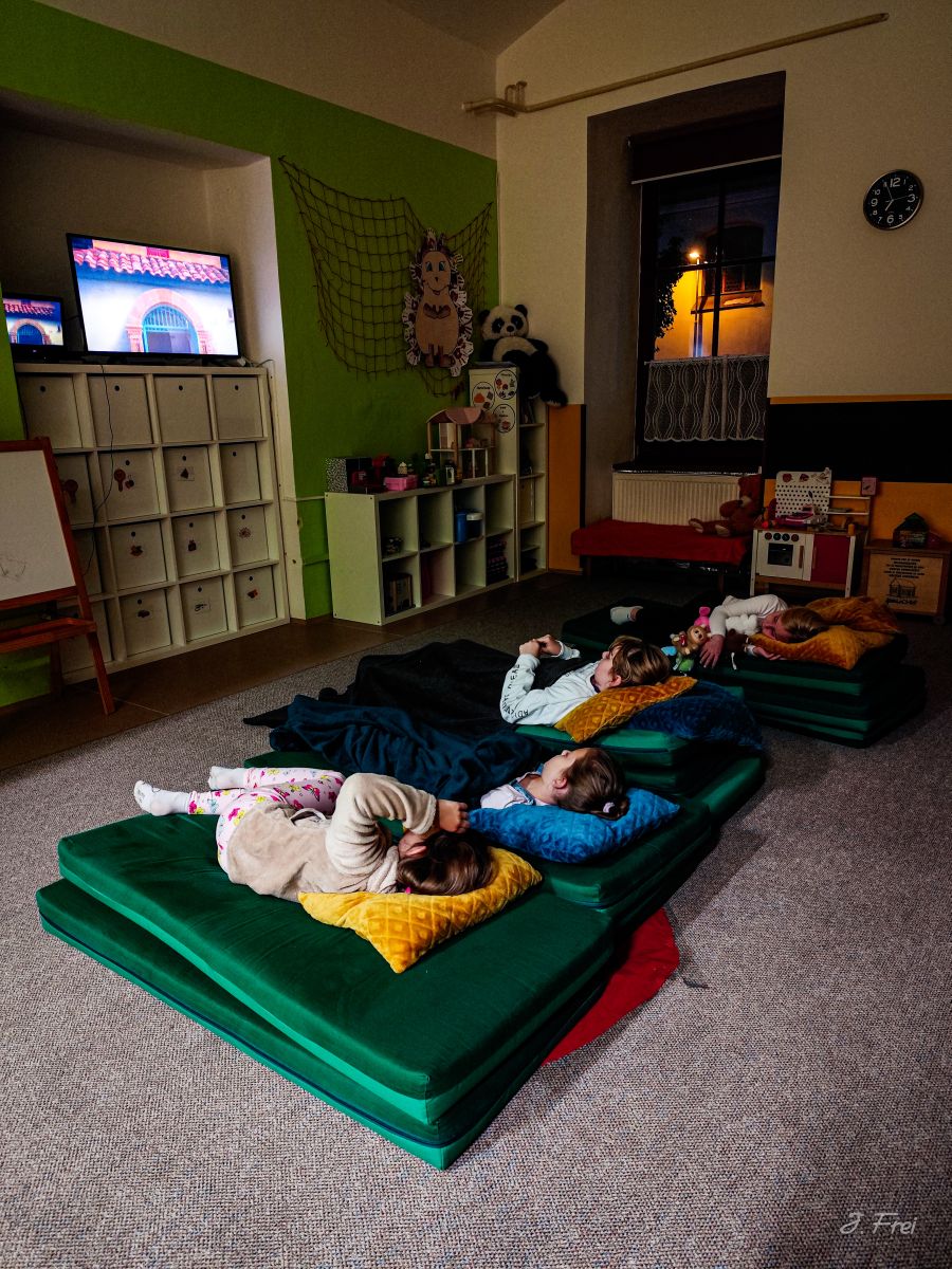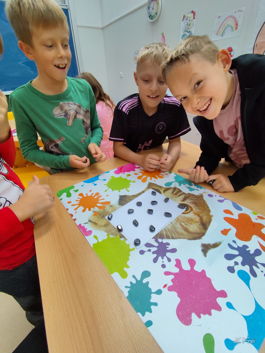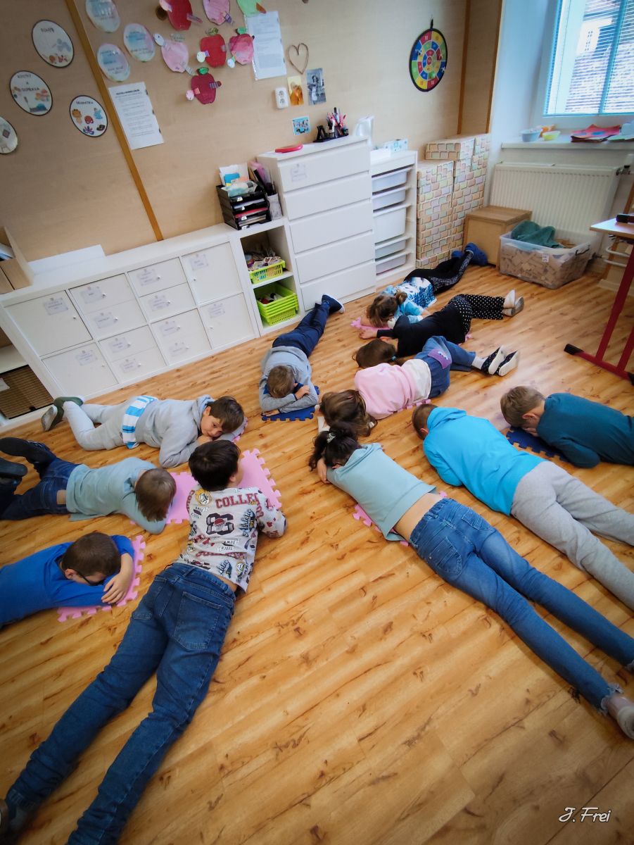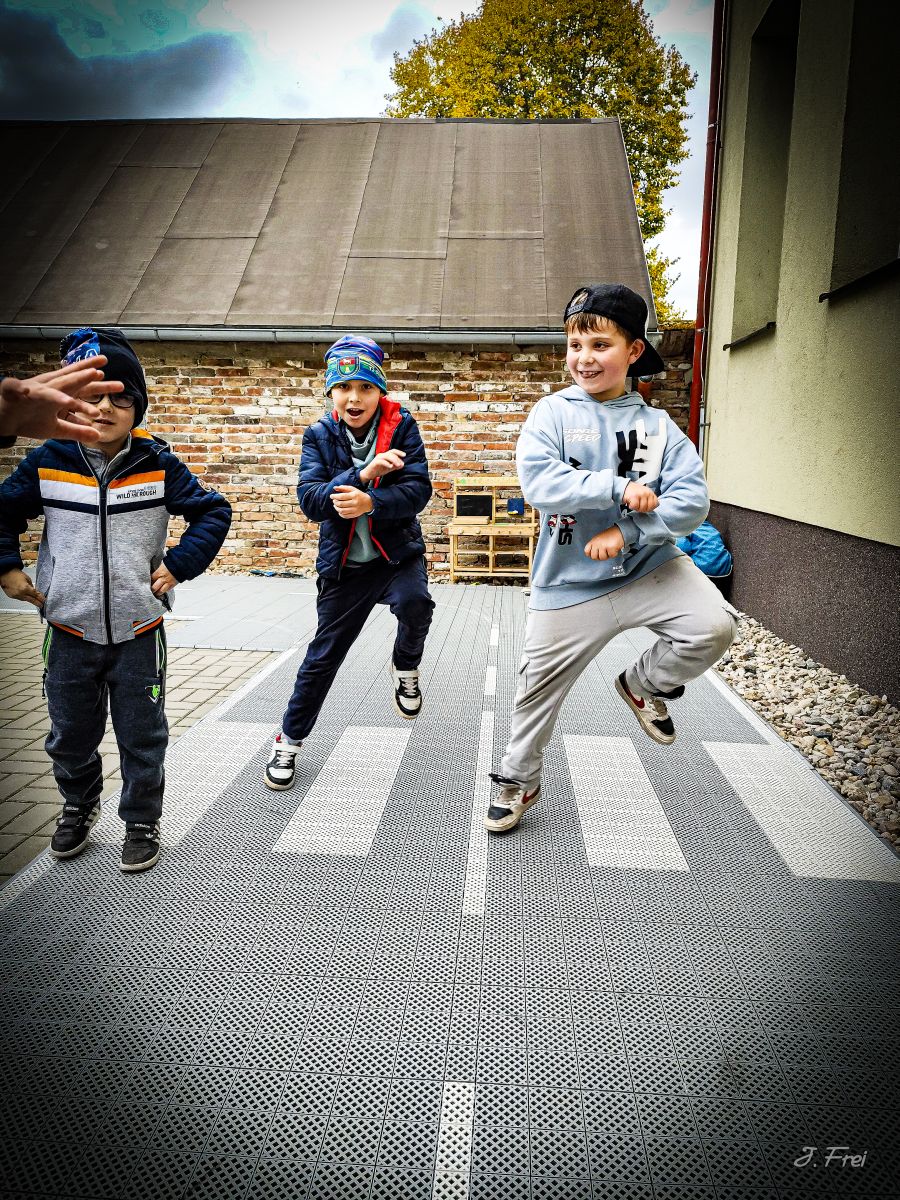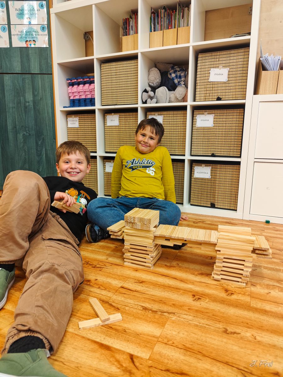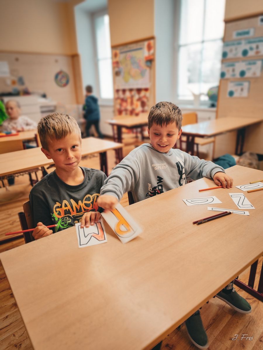 Letos má naše družina maskota, kterého si děti samy vybraly a je to lev, takže jsme družina lvíčat. Lvíčat, kteří milují fotbal. Proto chodíme ven, jak jen nám počasí dovolí. Kluci jsou nadšení, když můžou hrát fotbal, holky se předhání, která nejvíc naskáče přes švihadlo, staví domečky, hrají si v pískových kuchyňkách. Velké oblibě se těší také pískoviště, kde se budují nejrůznější stavby - někdy podle tématu, jindy dle vlastní fantazie.