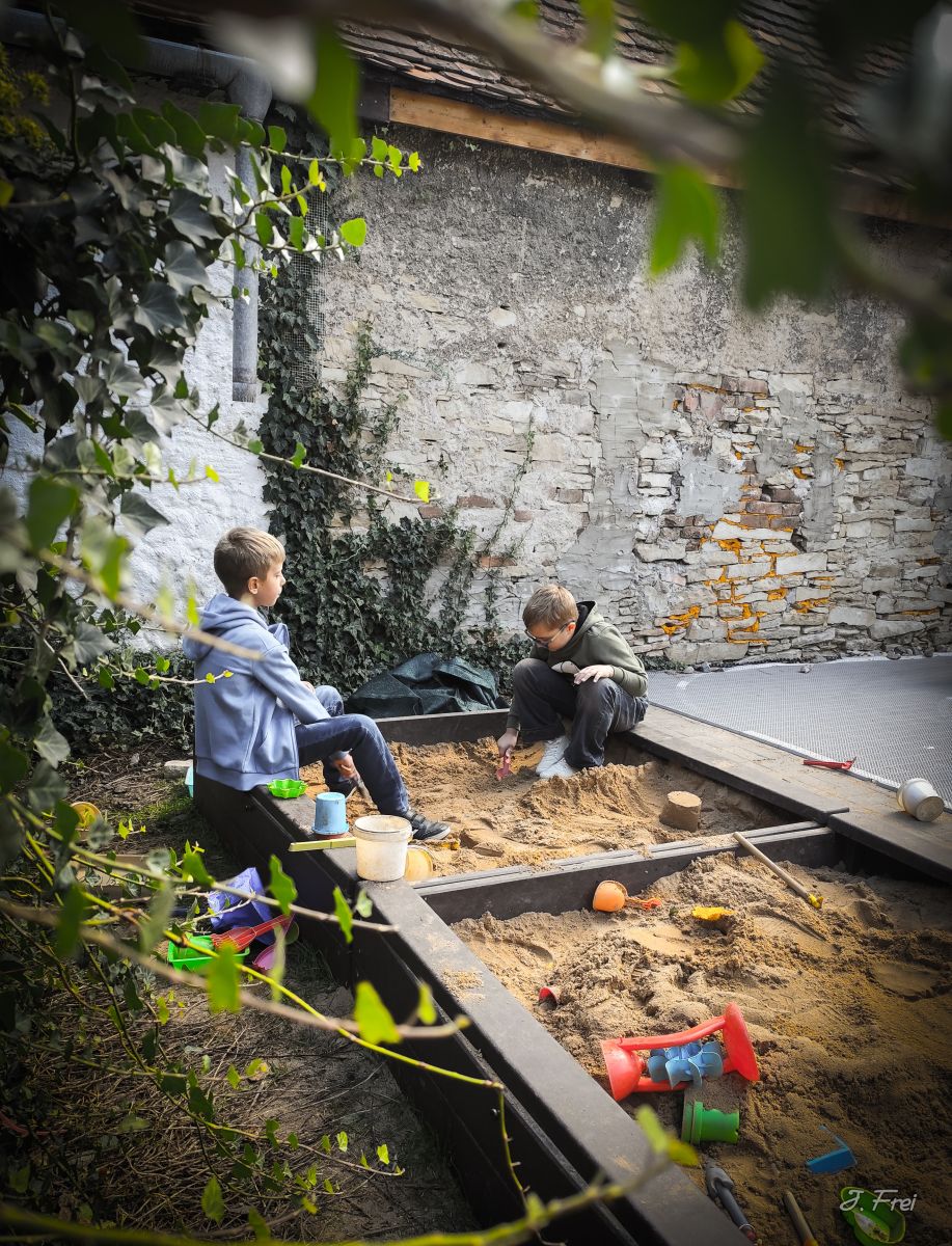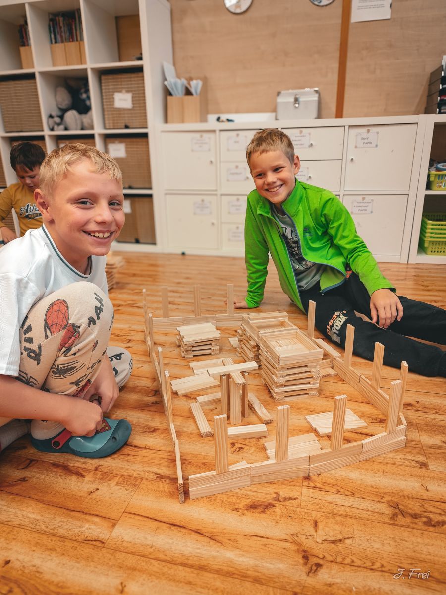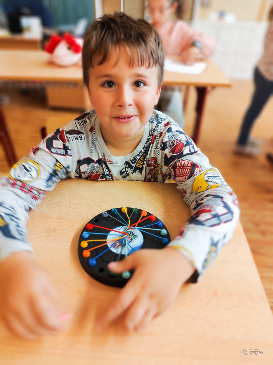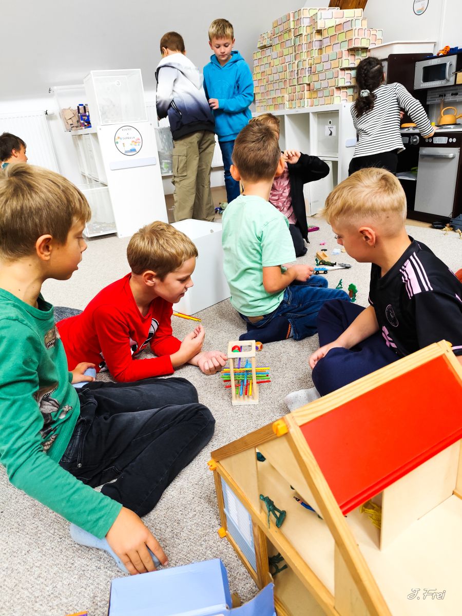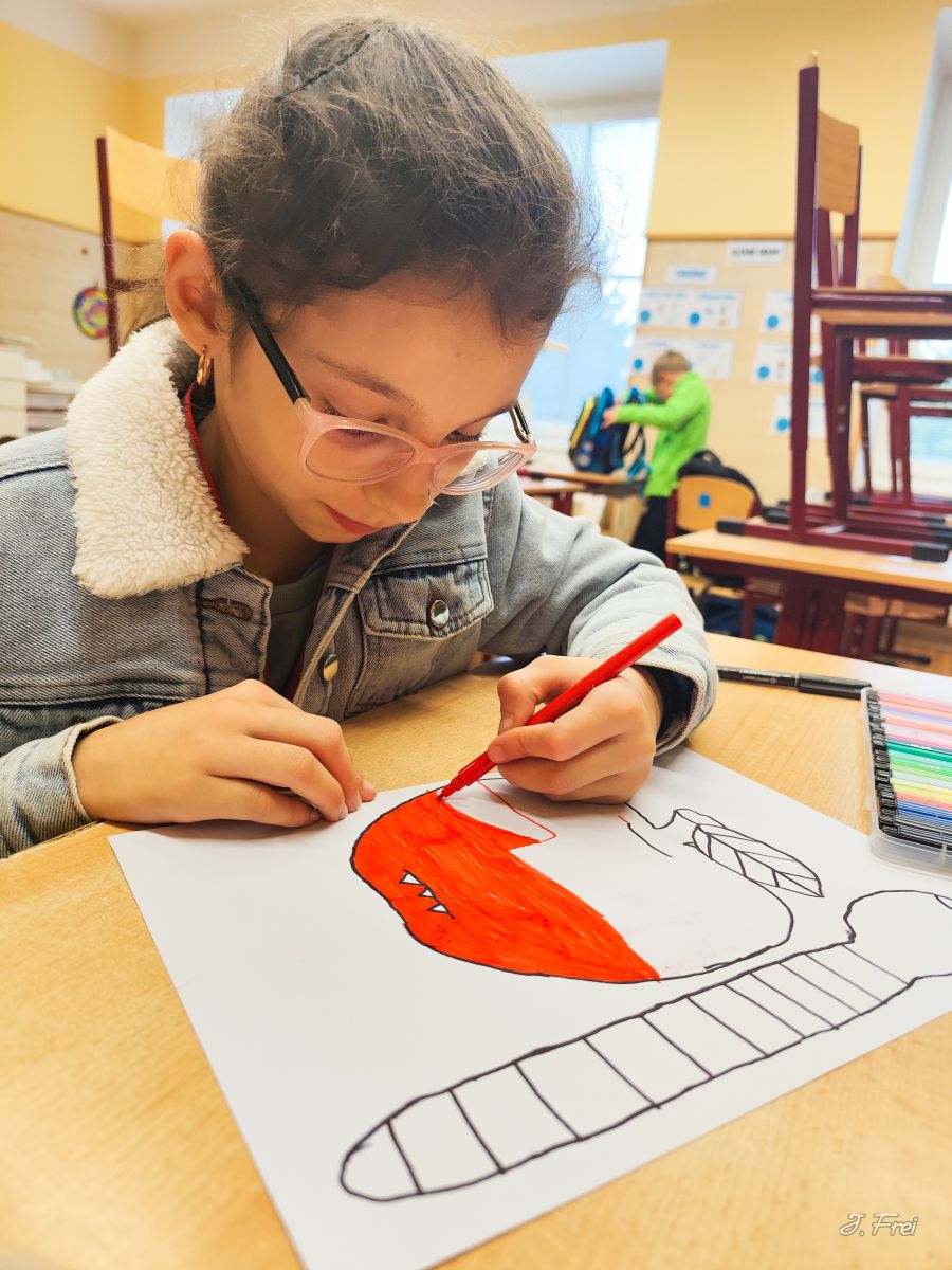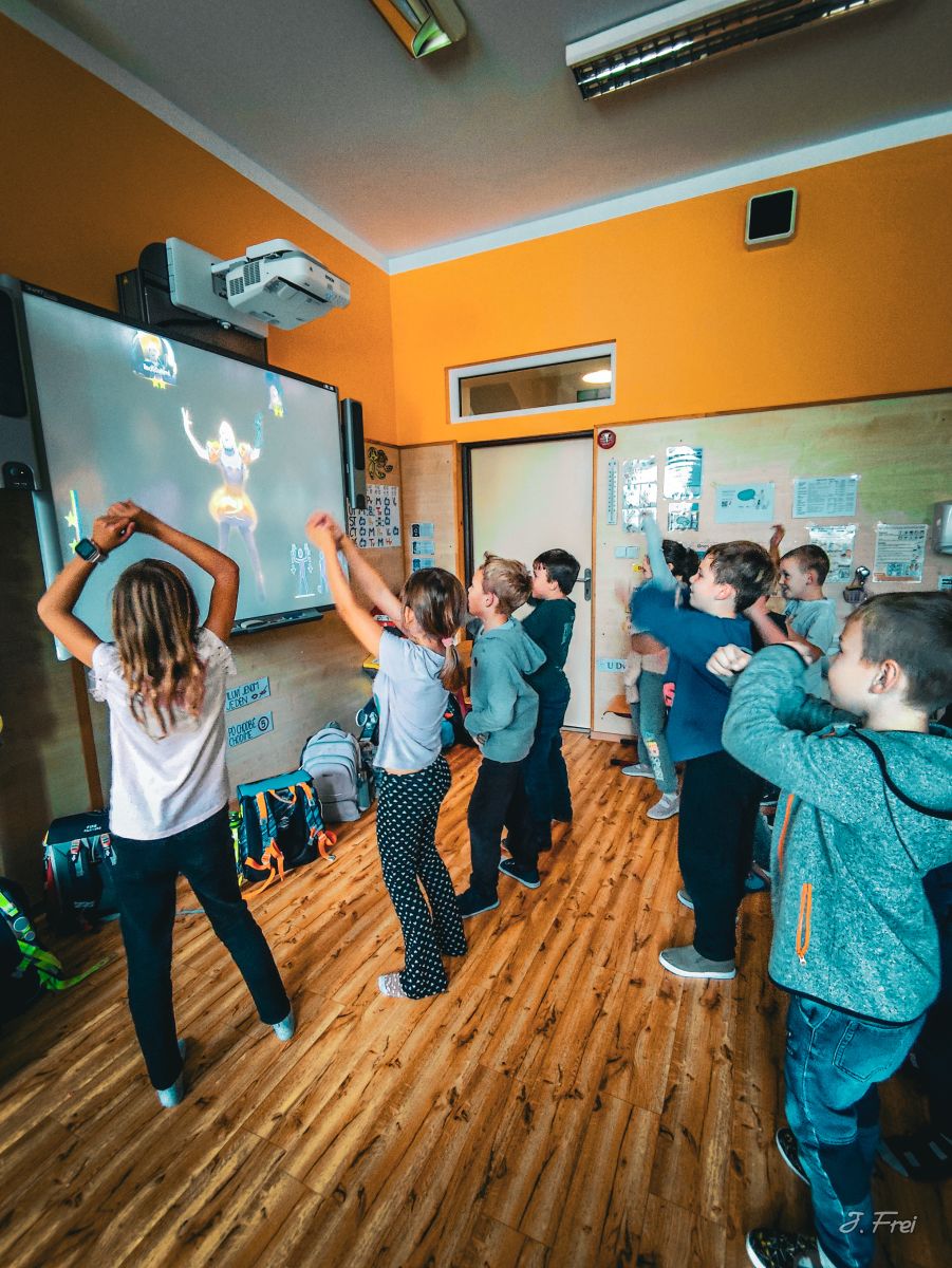 Letos má naše družina maskota, kterého si děti samy vybraly a je to lev, takže jsme družina lvíčat. Lvíčat, kteří milují fotbal. Proto chodíme ven, jak jen nám počasí dovolí. Kluci jsou nadšení, když můžou hrát fotbal, holky se předhání, která nejvíc naskáče přes švihadlo, staví domečky, hrají si v pískových kuchyňkách. Velké oblibě se těší také pískoviště, kde se budují nejrůznější stavby - někdy podle tématu, jindy dle vlastní fantazie.