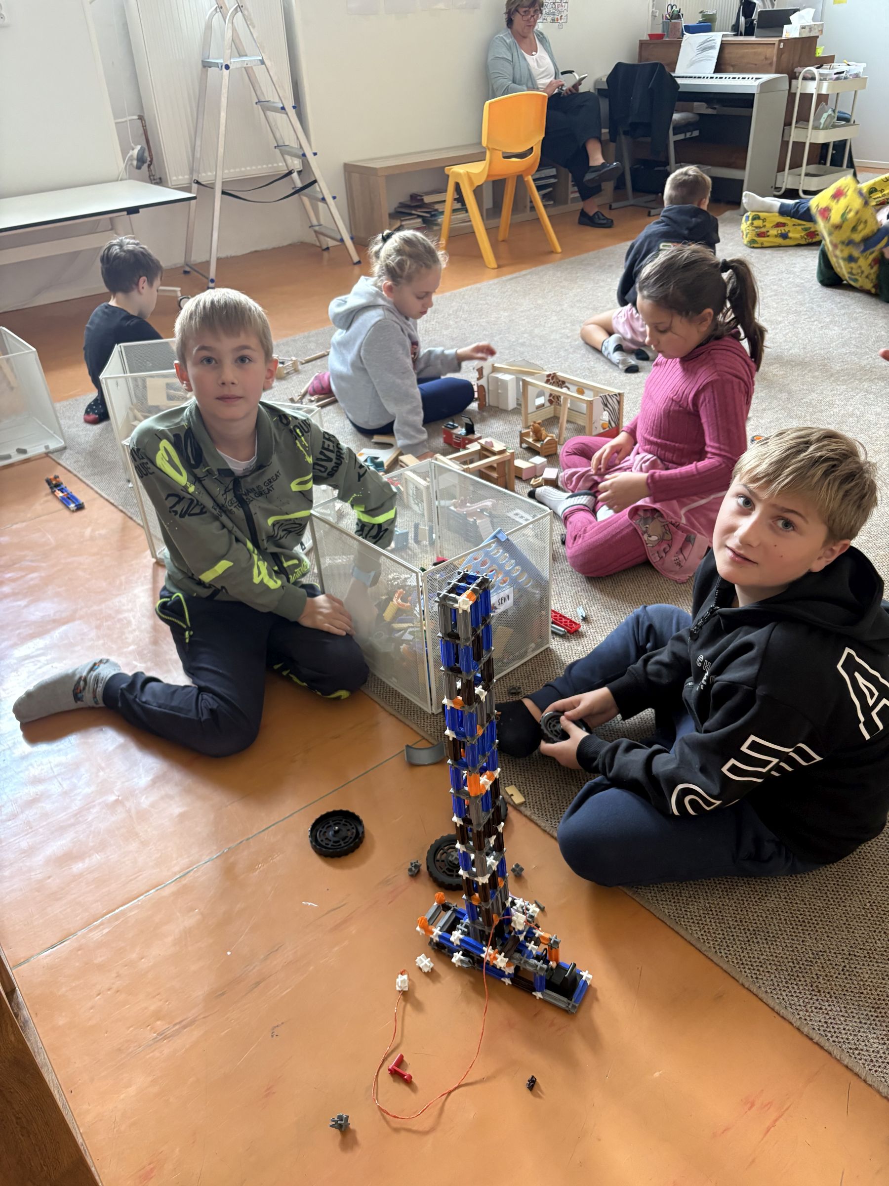 Letošní družina je plná malých stavitelů! Stavíme ze všech stavebnic, které máme – z LEGA, magnetických kostek i dalších materiálů. Každý má obrovskou představivost a fantazii, takže u nás vznikají hrady, města, auta i vesmírné základny. Každý den tak v družině vyroste něco nového a originálního!