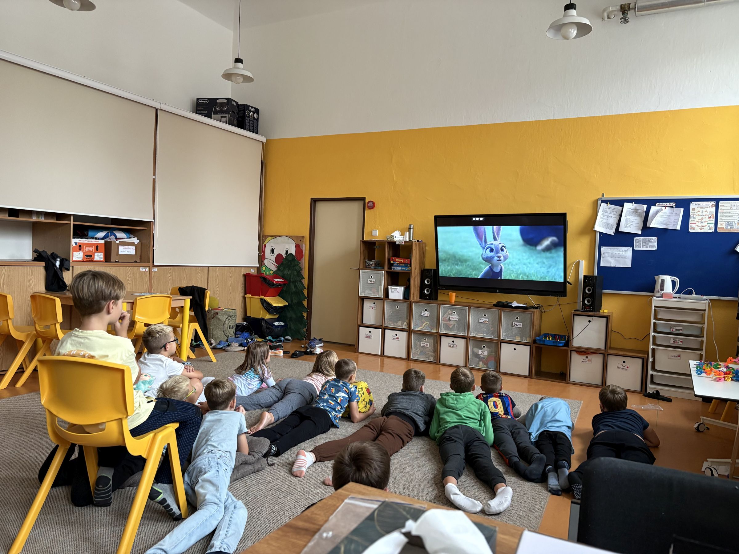 Po hrách si pak společně rozložíme polštáře a deky, zhasneme světla a uděláme si domácí kino. Tentokrát jsme sledovali oblíbený film Zootropolis – a o smích nebyla nouze!