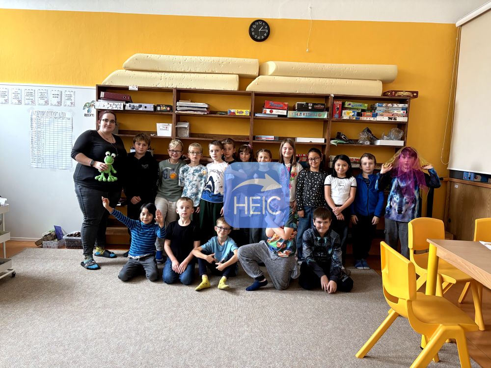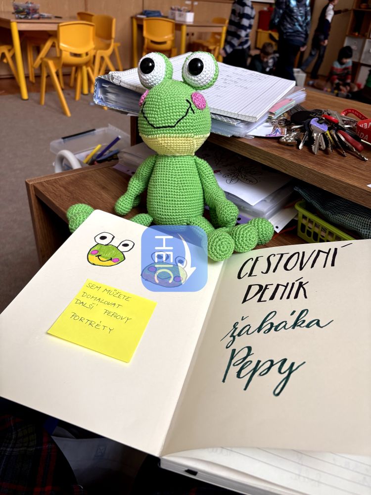 Letos máme ve družině nového putovního kamaráda – uháčkovaného žabáka, kterého nám speciálně pro družinu vyrobila maminka paní vychovatelky. Putování je ale tentokrát trochu jiné, než jsme zvyklí. Žabák nebude cestovat mezi dětmi v naší družině, ale bude putovat mezi námi a družinou v Pardubicích.