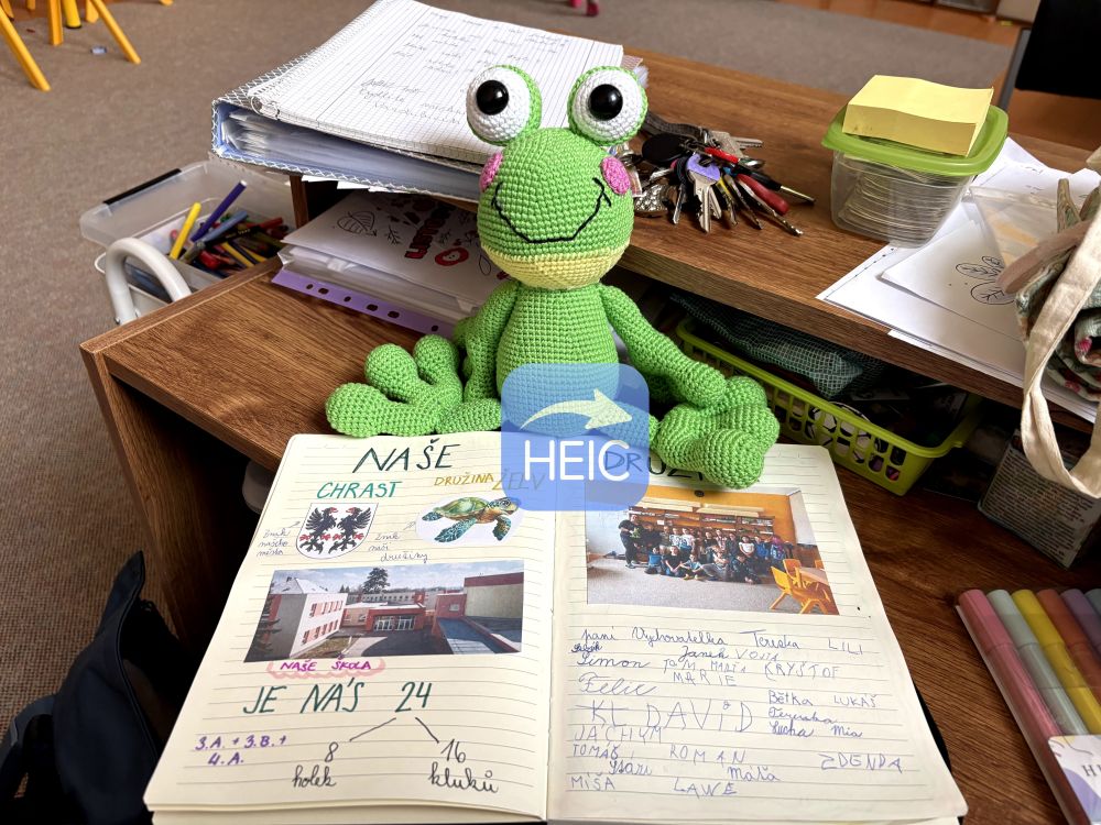 Když přišel čas poslat Pepu do Pardubic, pustili jsme se do tvorby jeho deníčku. Na jednu stránku jsme nalepili společnou fotku celé družiny a všichni jsme se pod ni podepsali. Poté jsme se trochu představili – kdo jsme my, odkud jsme, přidali jsme fotku školy a na dalších stránkách jsme zaznamenali všechny jeho zážitky u nás. Nechybělo ani několik otázek, které jsme připravili pro děti v Pardubické družině. Nakonec holky vše krásně dozdobily malůvkami, aby měl Pepa ten nejhezčí deníček, a paní vychovatelka ho odvezla do Pardubic.