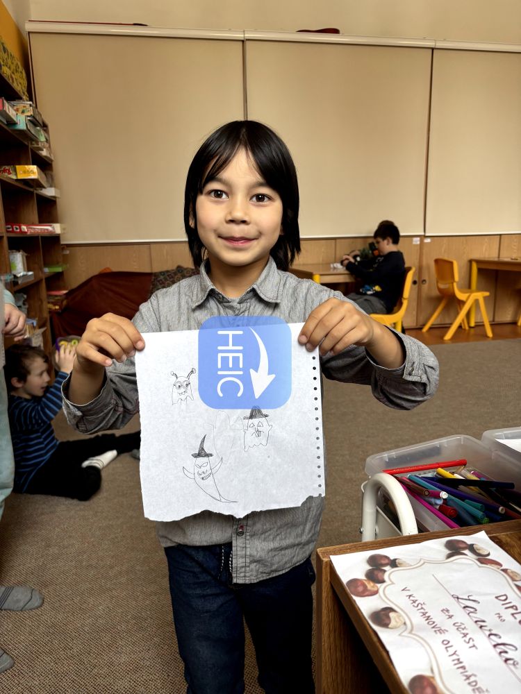 Během dušičkového týdne jsme měli centra ve strašidelném duchu. V ateliéru jsme malovali duchy – každý vypadal úplně jinak, protože jejich vzhled určoval hod kostkou. V centru kostek jsme měli za úkol postavit stavbu s dušičkovou tématikou a v centru manipulace jsme skládali dušičková puzzle. Celý týden jsme zakončili luštěním zašifrovaných dušičkových slov.