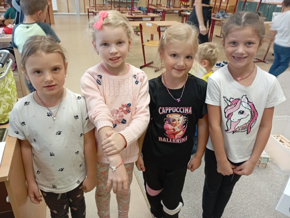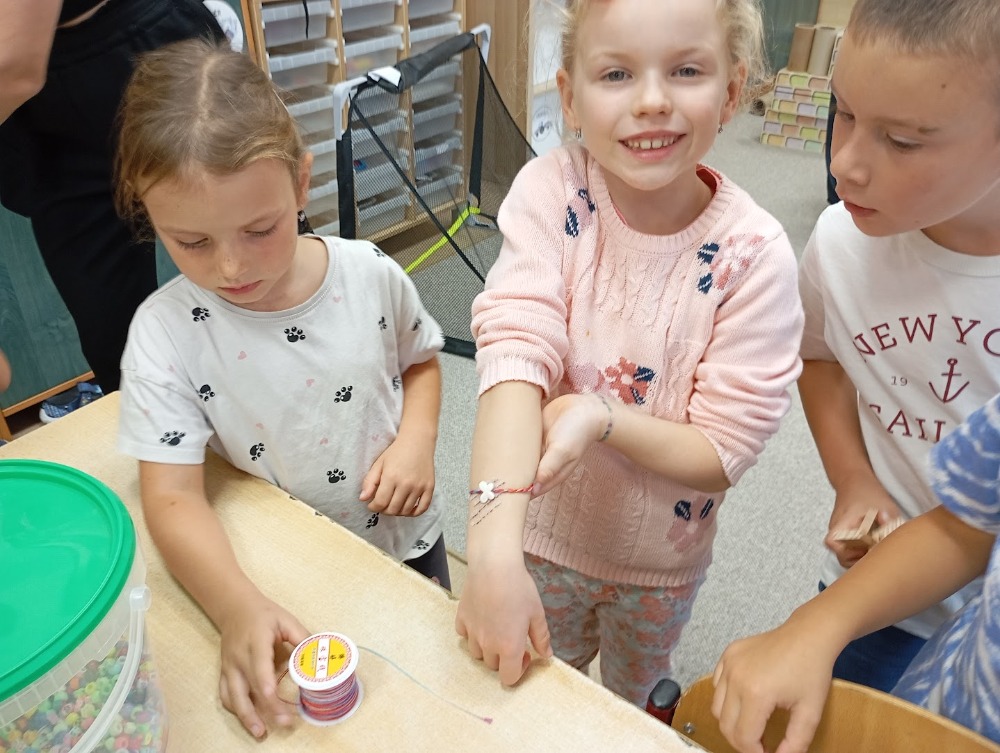 Od začátku školního roku v naší sovičkové družině panovala tvořivá nálada – děti si v centru ateliér vyráběly náramky přátelství. Společně si povídaly o kamarádství, pomáhaly si a odnášely si nejen hotové náramky nebo náhrdelníky, ale i hezké zážitky.