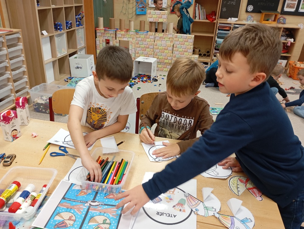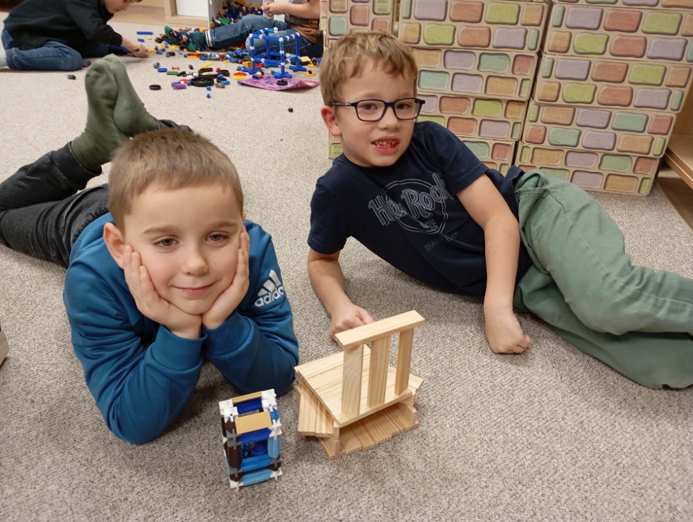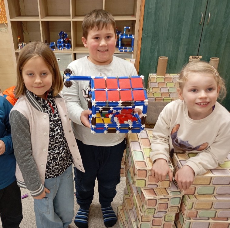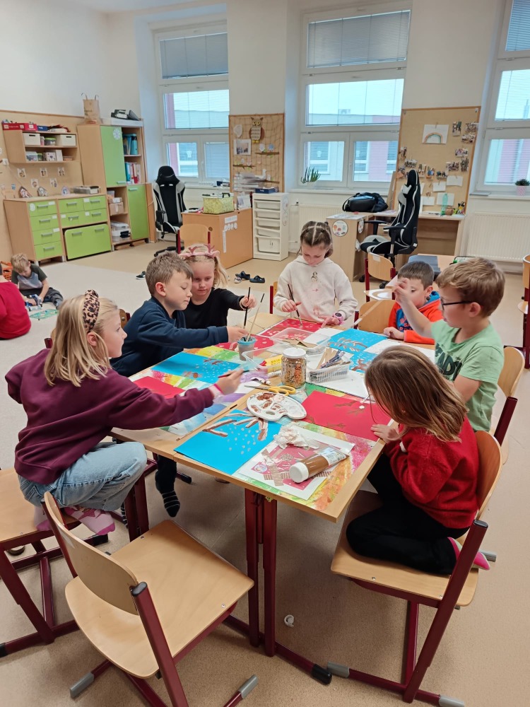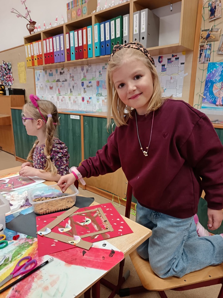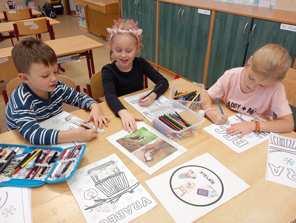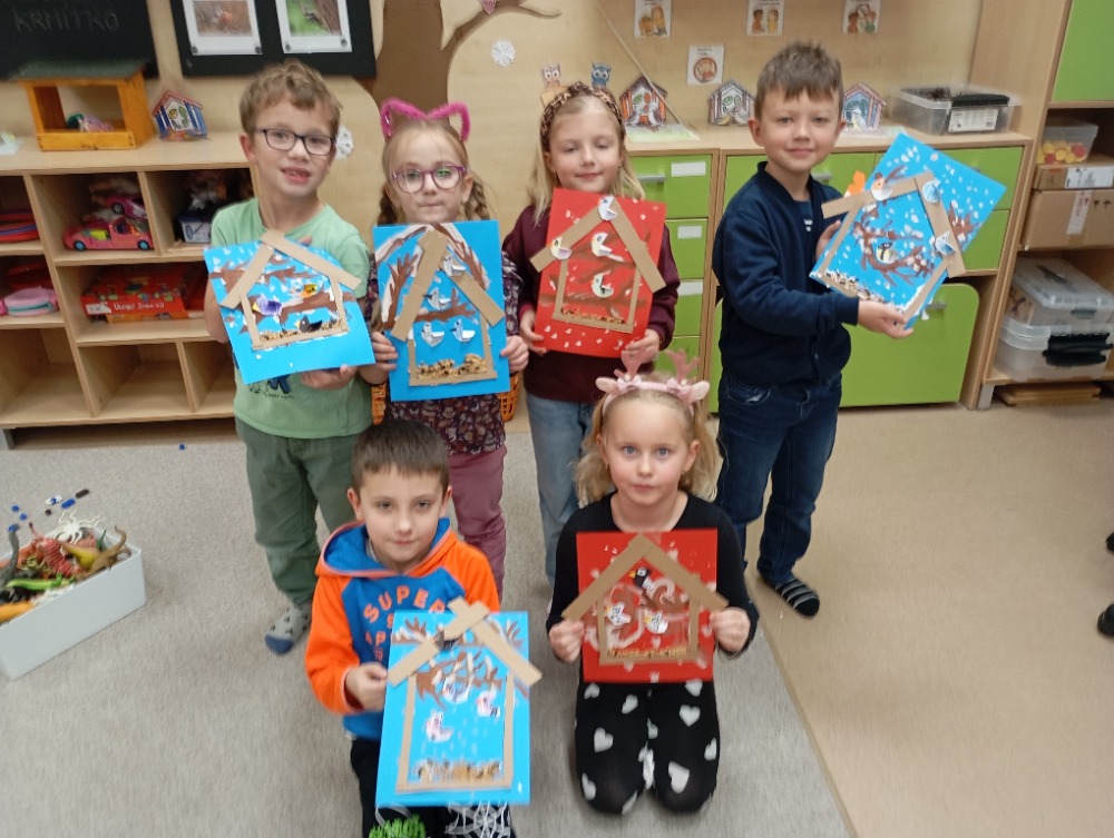 Na začátku prosince jsme se v naší družině seznámily s ptáčky, kteří u nás přezimují. Ve skupinové práci si děti nejdříve vymalovaly a poté slepily vrabce v krmítku. Velmi se jim povedlo také tvoření malých ptáčků, které nalepily do krmítka z kartonu a nezapomněly doplnit ani ptačí zobání. Ze stavebnic děti tvořily úkol týdne - krmítko pro ptáčky.