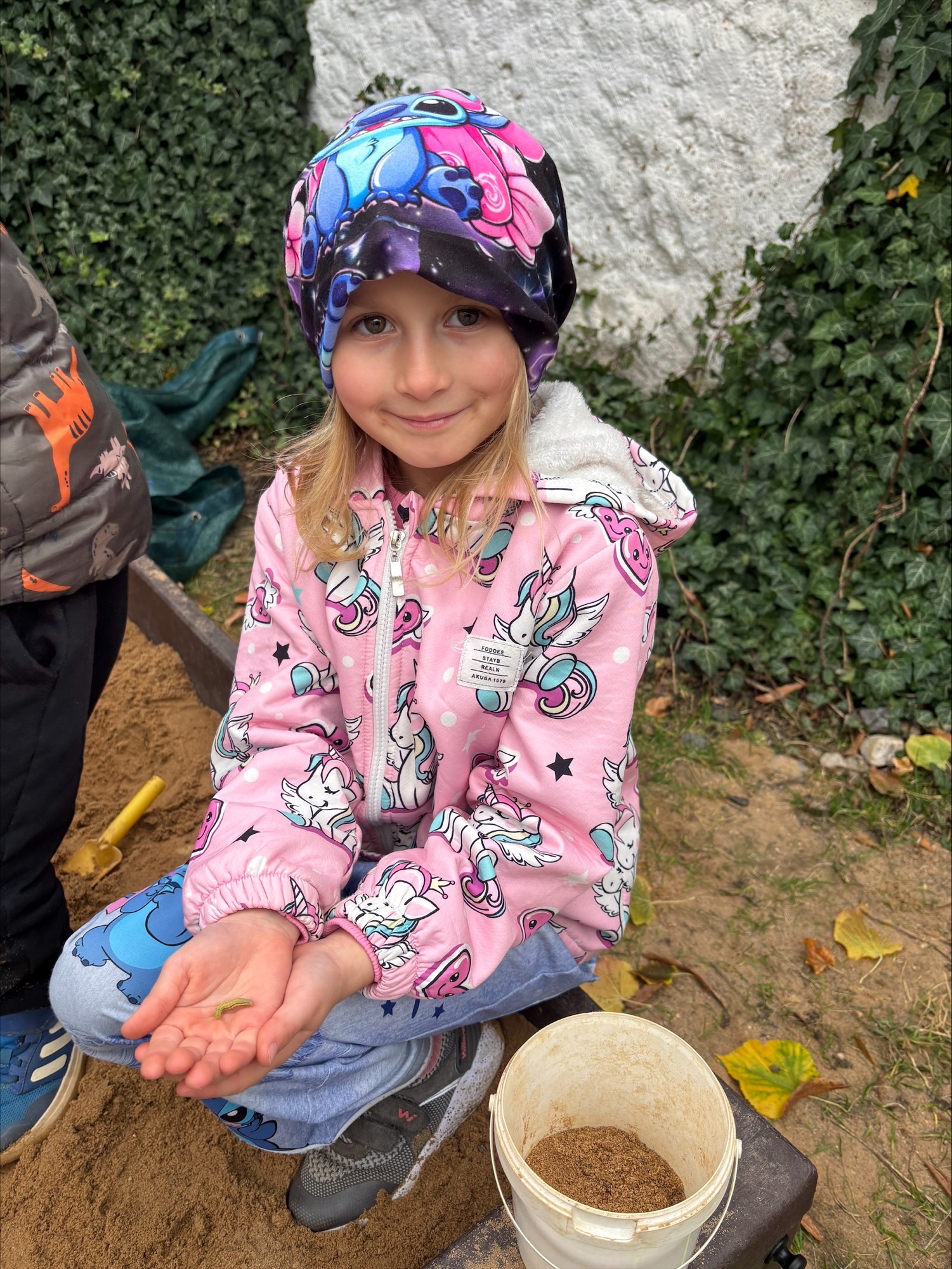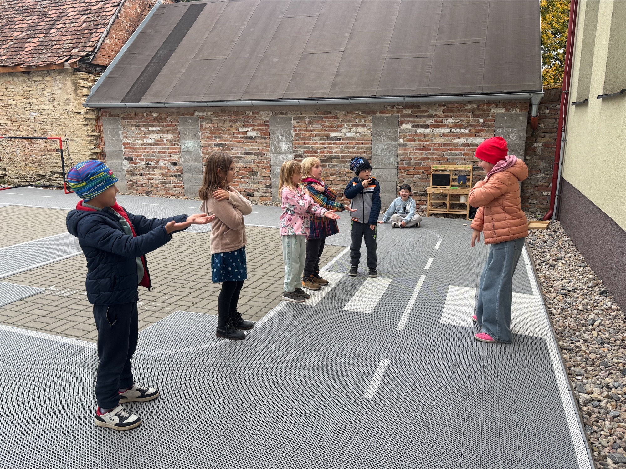 Využili jsme krásného podzimního počasí a trávili jsme spoustu času venku. Hráli jsme fotbal, skákali přes švihadla, vařili v našich venkovních kuchyňkách a stavěli na pískovištích.