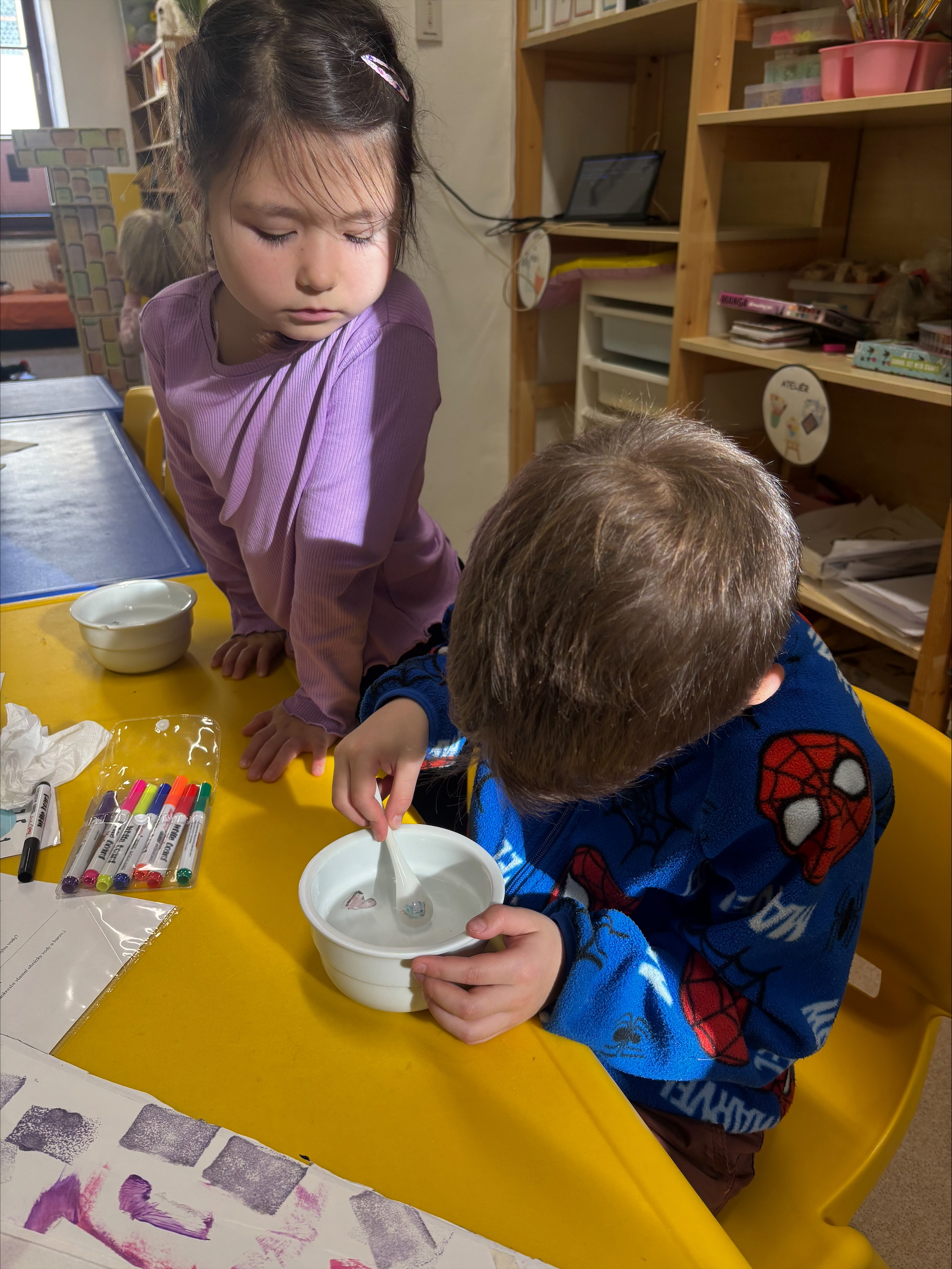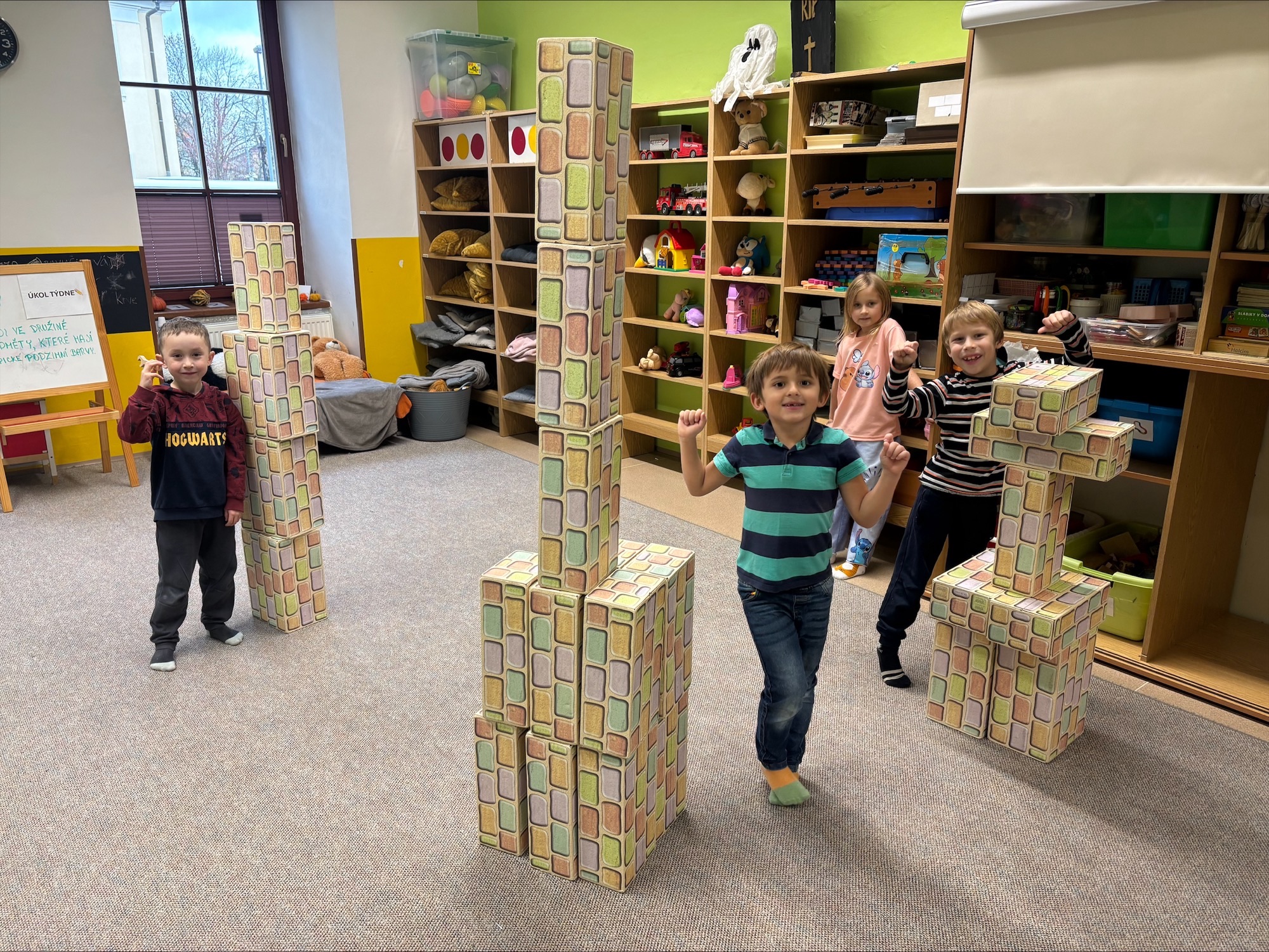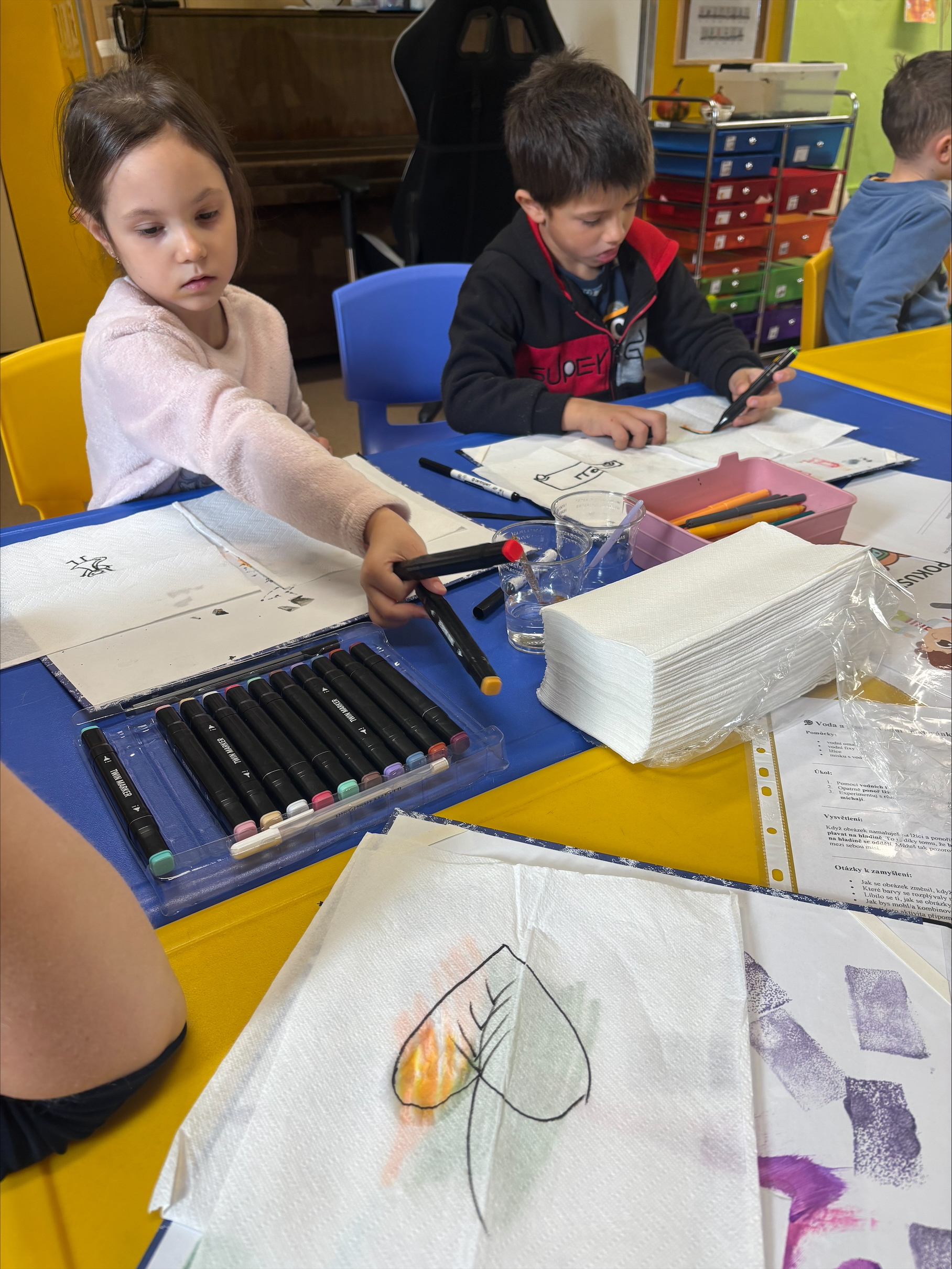 Zkoušeli jsme malovat pomocí ubrousků a vody, a tak vznikly zajímavé a originální obrazy. V kostkách jsme stavěli co nejvyšší stromy a nakonec z nich vytvořili společný les. V manipulaci jsme pracovali s modelínou – tvarovali listy a připevňovali je na větvičky. Také jsme si vyzkoušeli vodní fixy.