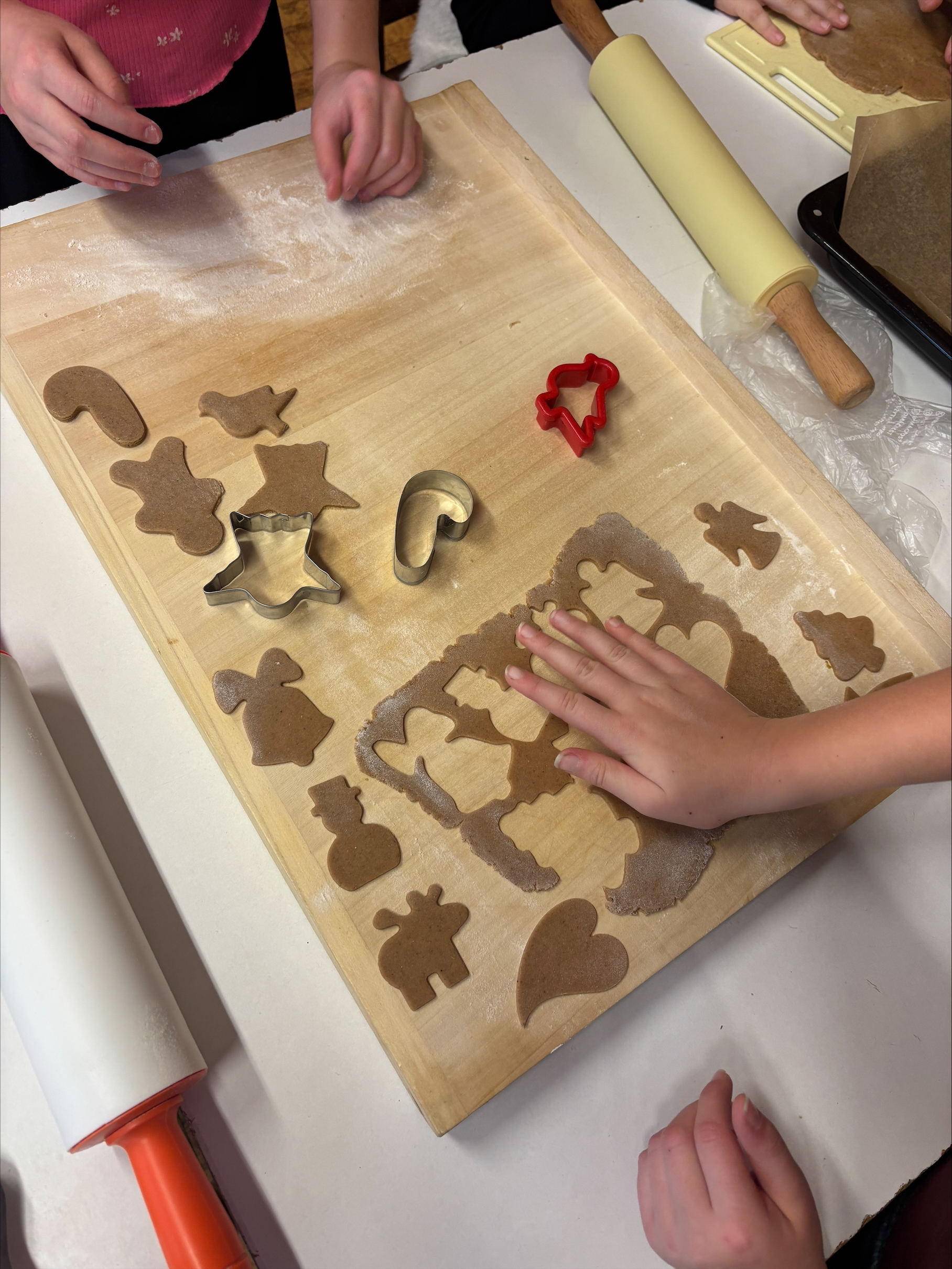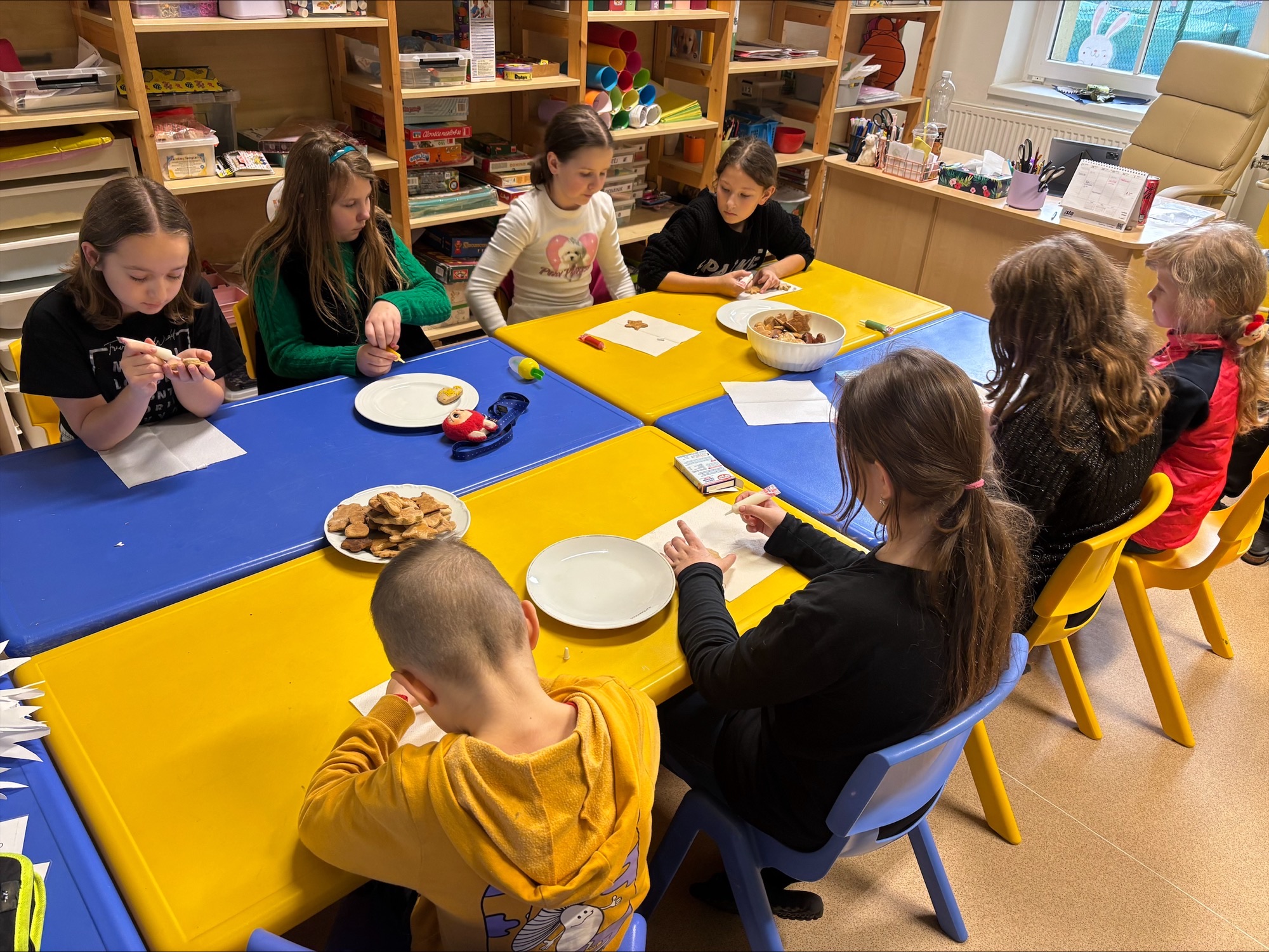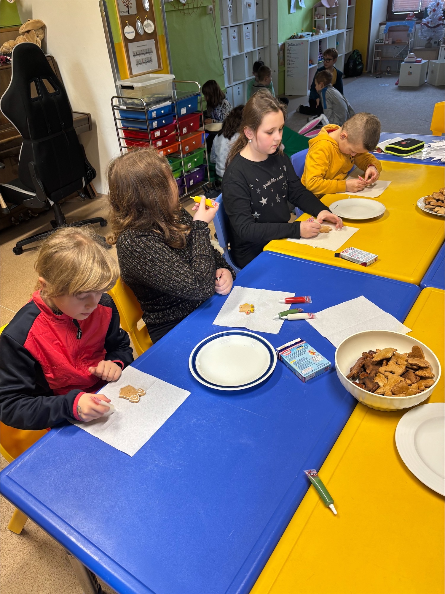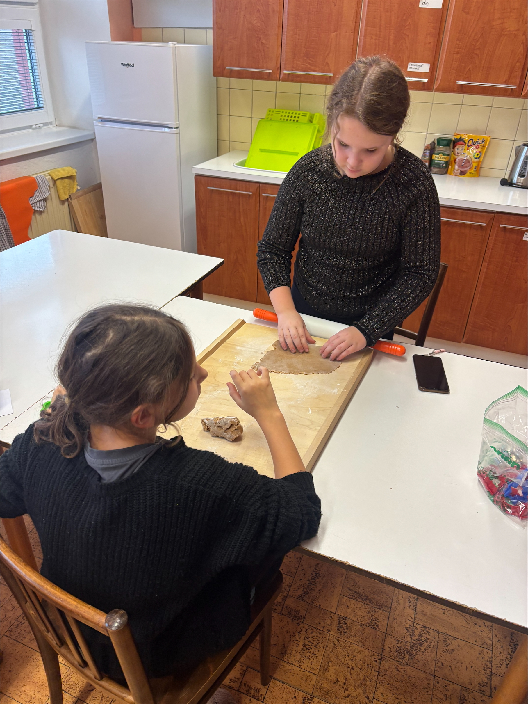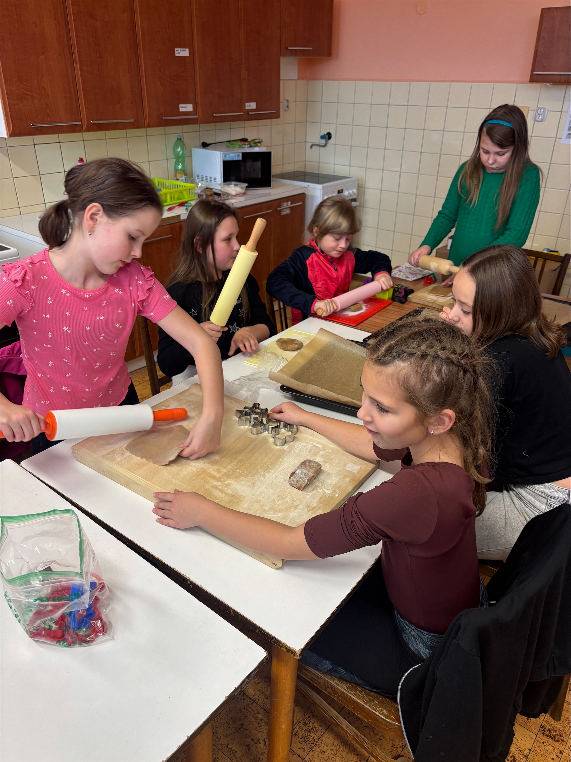 Abychom se naladili na vánoční čas, vydali jsme se péct perníčky. Využili jsme školní kuchyňku, kde jsme vyváleli těsto a společně perníčky upekli. Následující den jsme je zdobili a samozřejmě také s chutí snědli.