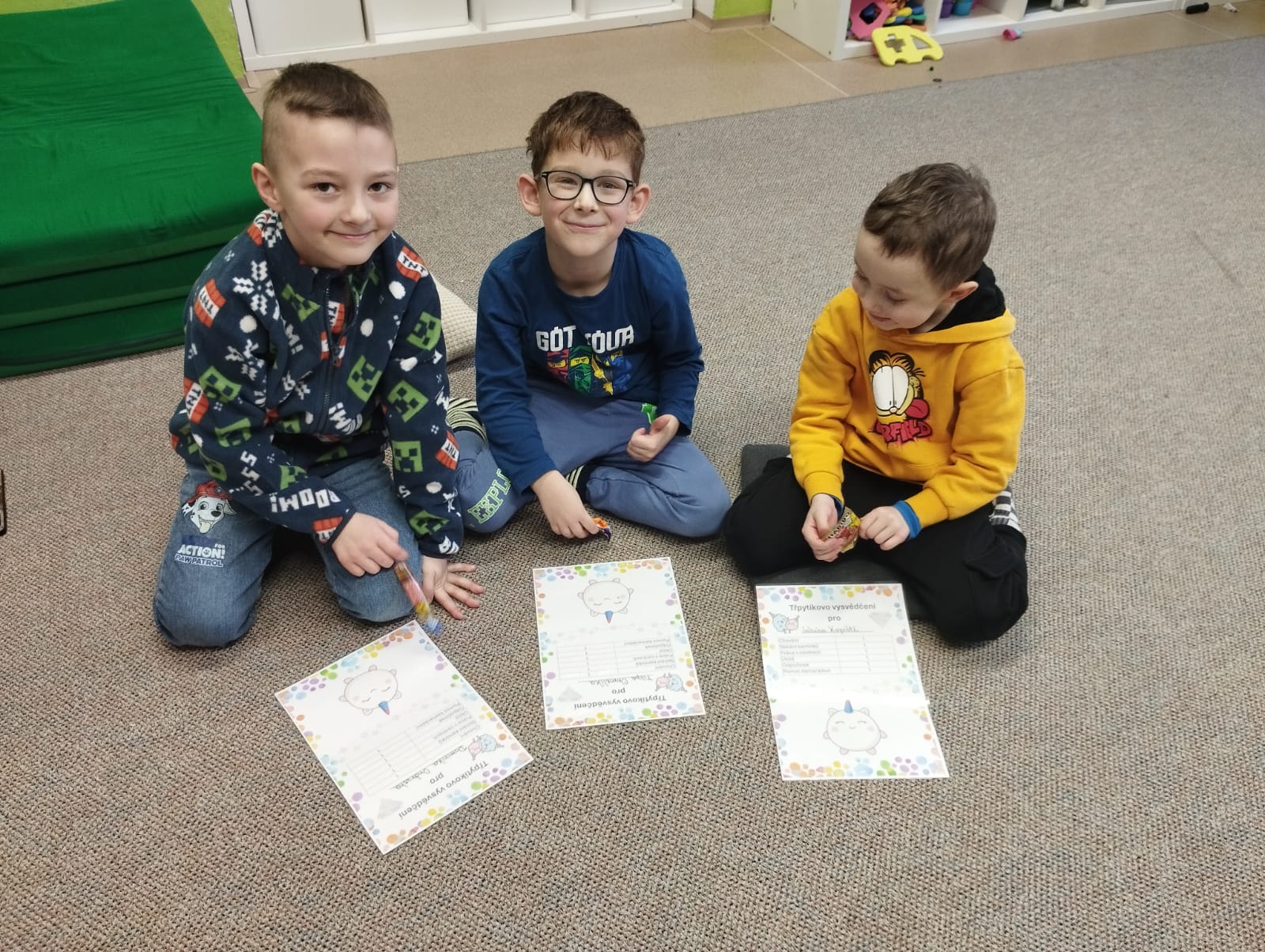 Přinesl dětem jejich první družinové vysvědčení od Trpytíka. Nechyběla pochvala za krásnou práci, sladká odměna ani tématická guma. Marshall dětem popřál, aby se jim dařilo a aby s radostí pracovaly i v druhém pololetí.