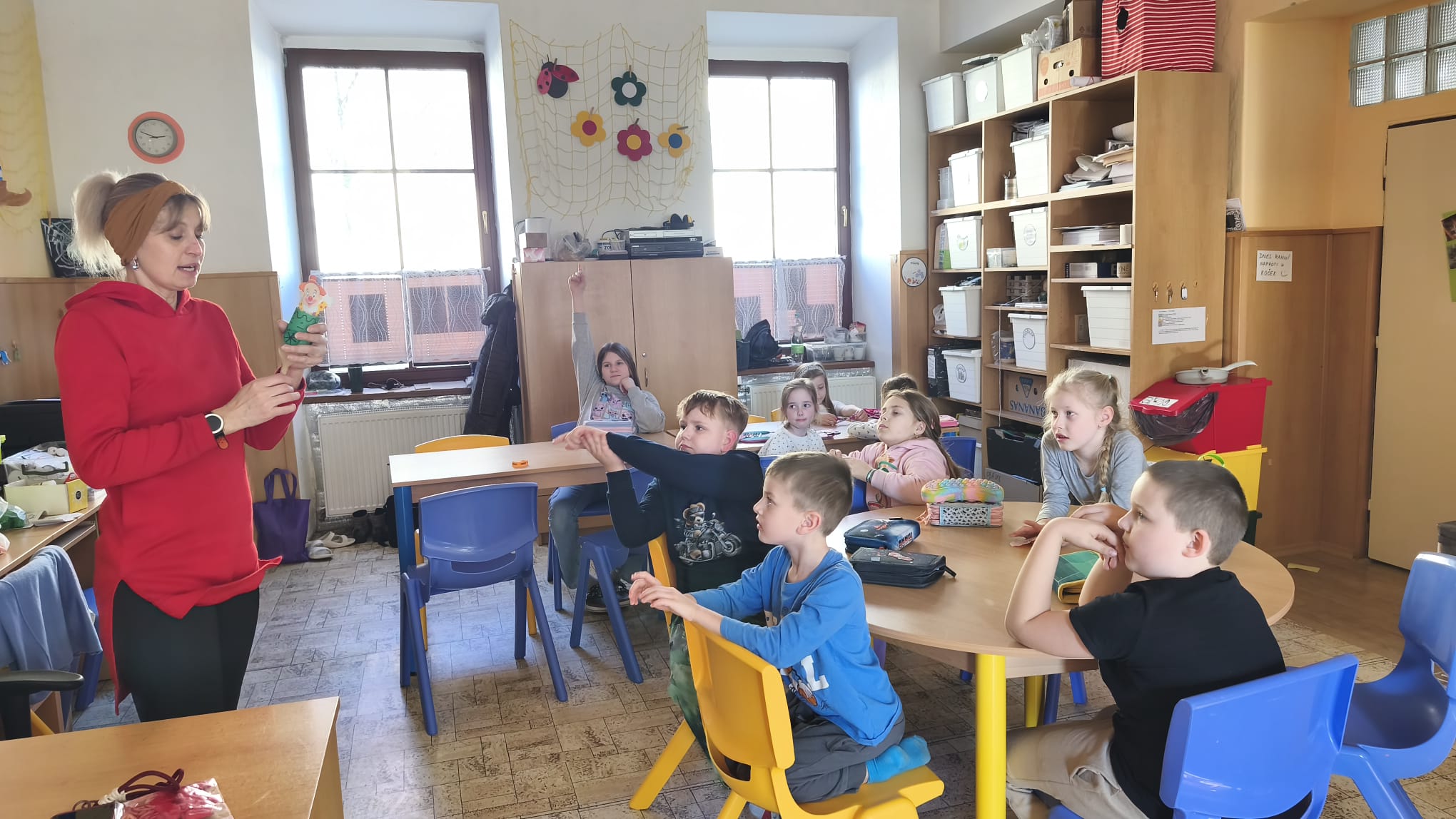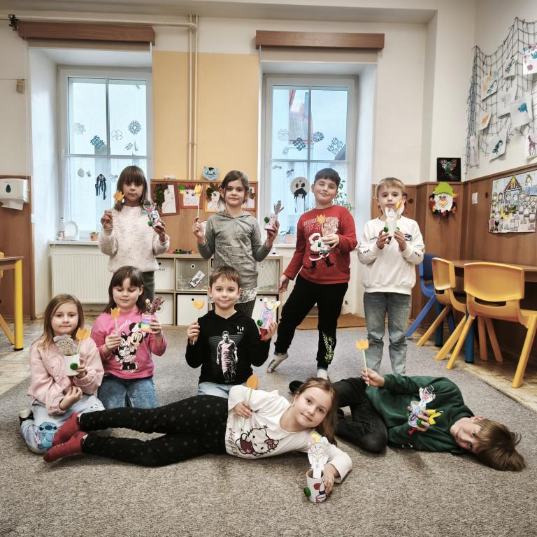 Po dokončení klauna jsme se pustili ještě do další jarní tvořivé aktivity. Z barevného papíru jsme si vyrobili papírové tulipány, které nám krásně připomínají přicházející jaro.