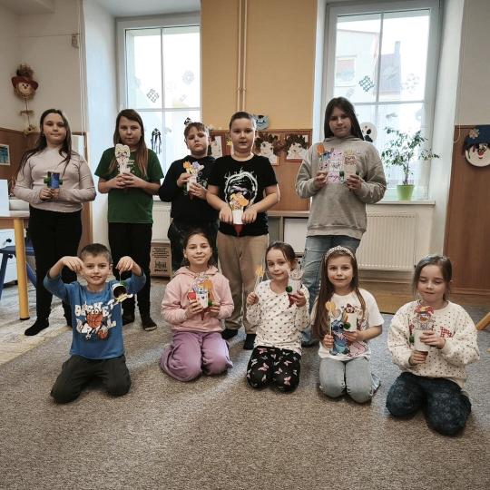 V době karnevalů si děti vyzkoušely výrobu veselého vystřelovacího klauna z ruličky a nafukovacího balónu.