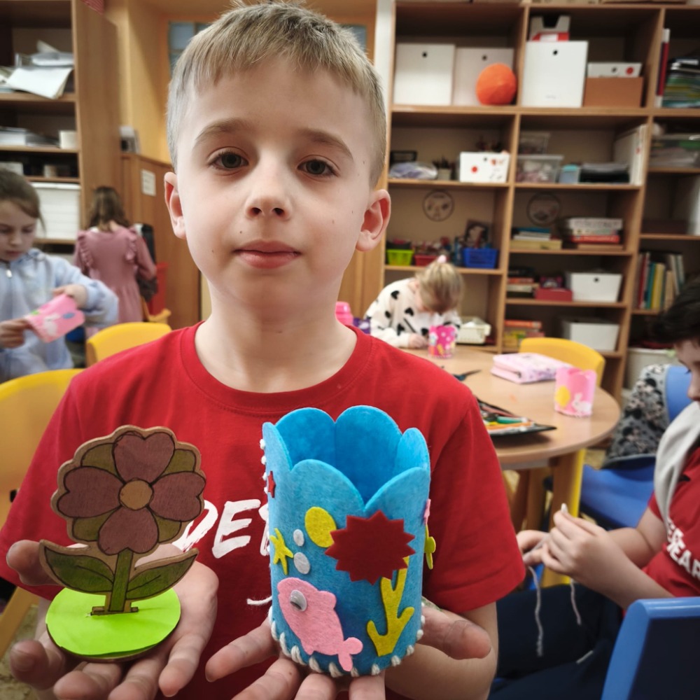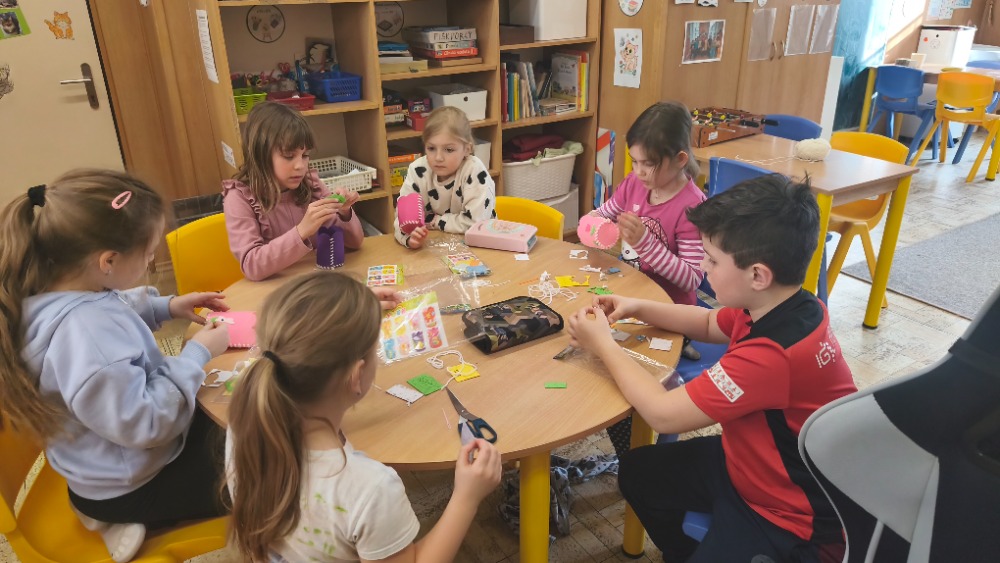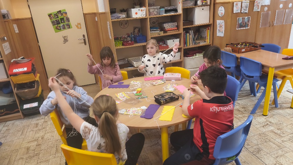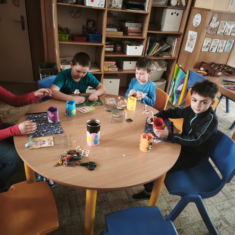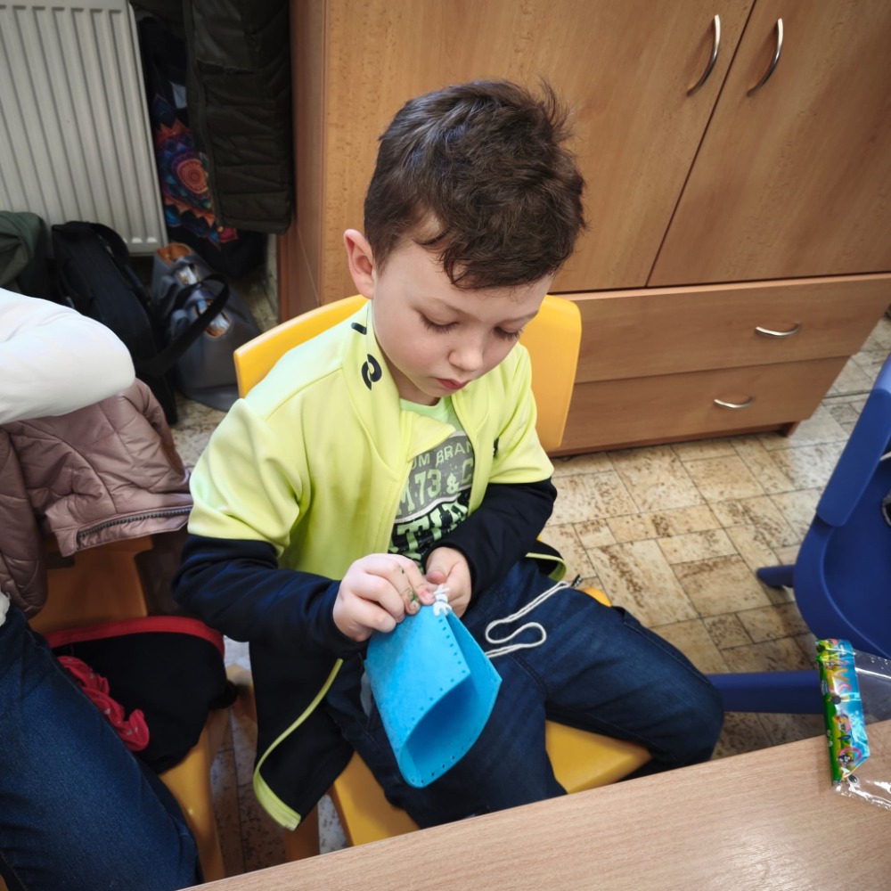 Na kroužku jsme se tentokrát pustili do šití z filcu. Děti si vyrobily a ozdobily výrobek, který mohou využít jako obal na květináč nebo tužkovník. Při práci si procvičily trpělivost, jemnou motoriku i základní šicí dovednosti.