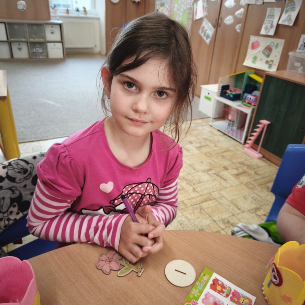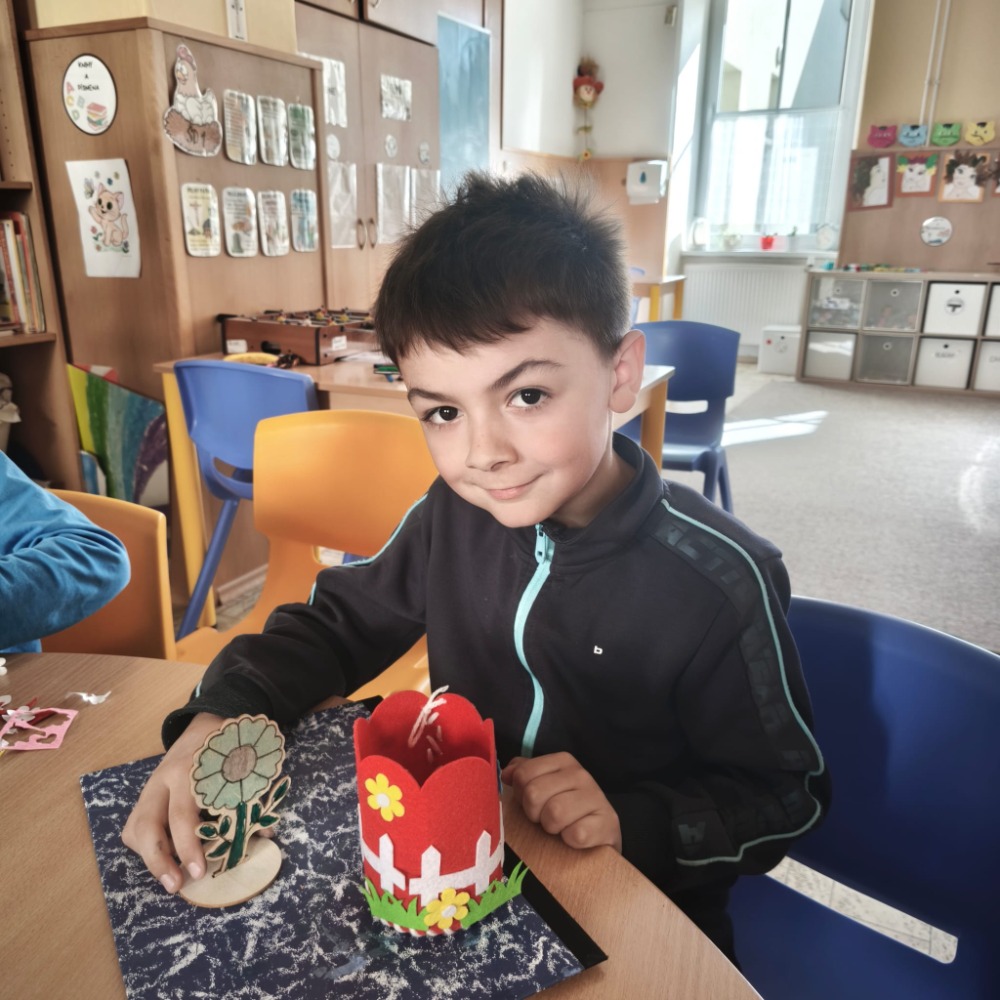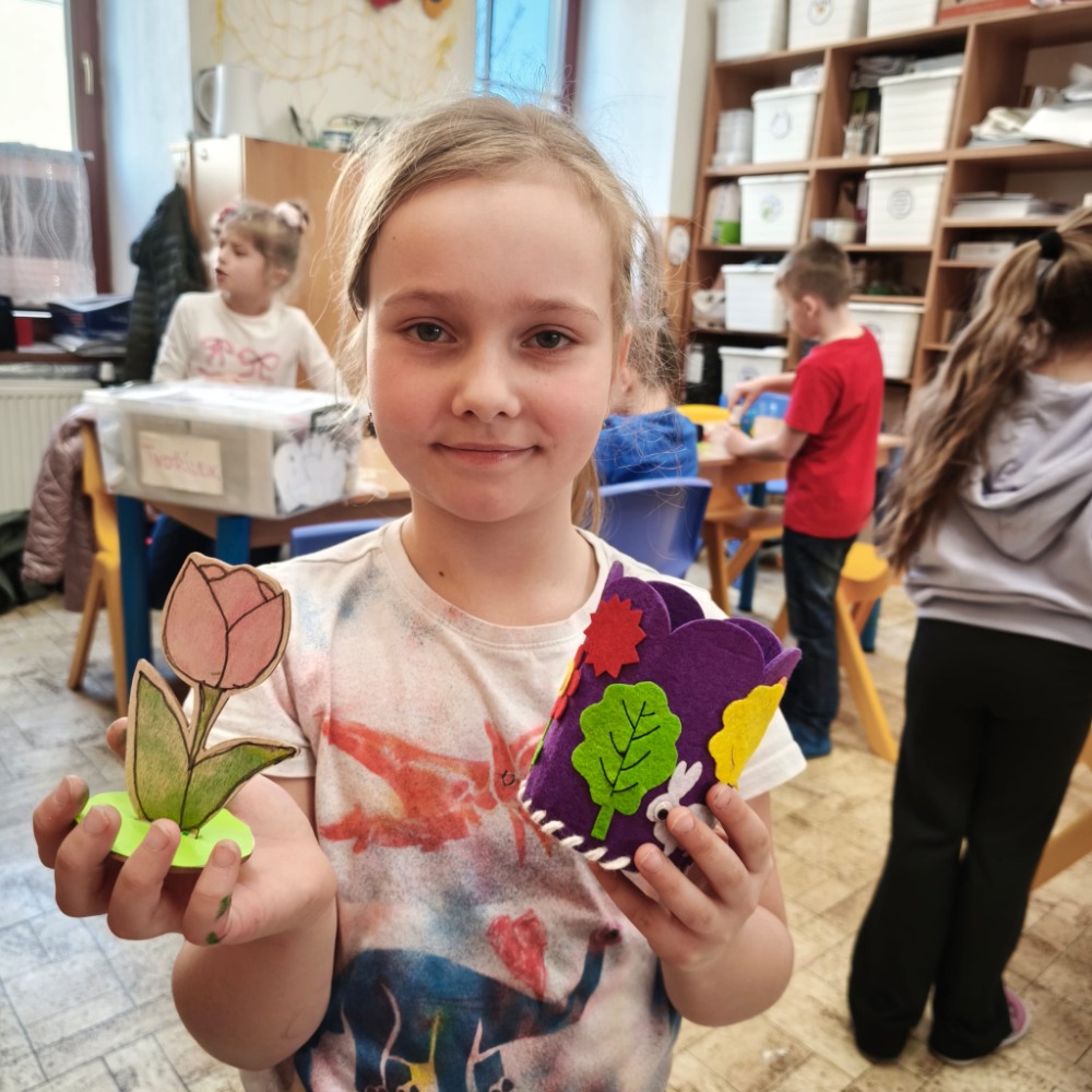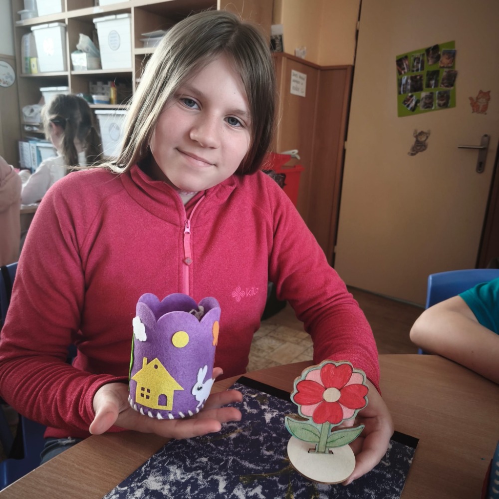 Kromě toho děti také vybarvovaly dřevěnou jarní kytičku, která krásně doplnila jejich tvoření.