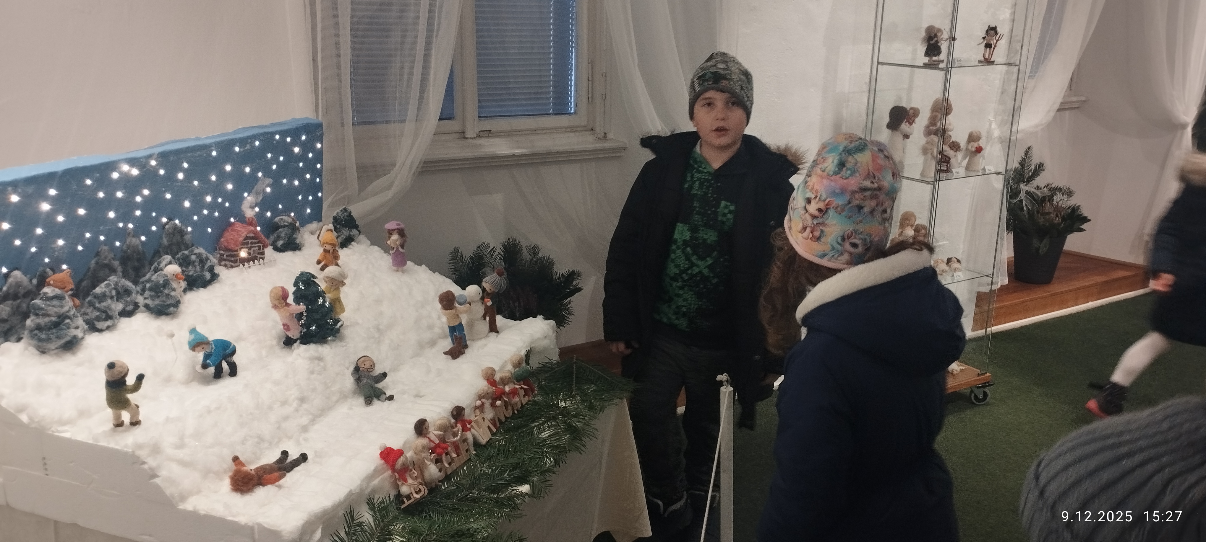 V úterý 9. prosince 2025 navštívily paní vychovatelky Adámková a Dušková a Ema Kloudová společně s dětmi z kroužku Tvořílek Muzeum města Chrast. Právě zde probíhala výstava Magický patchwork a Vánoce v muzeu, která všem nabídla krásnou inspiraci i příjemnou adventní atmosféru. Pro žáky byla návštěva příjemným zpestřením běžných kroužkových aktivit a zároveň ukázkou toho, co vše se dá vytvořit pomocí šikovných rukou, fantazie a trpělivosti – a že těch šikovných rukou je v našem kroužku opravdu hodně. Všichni jsme mohli vidět nádherné výrobky z látek, jako byly kabelky, hračky, tašky či různé bytové doplňky. Velký obdiv si zasloužily také práce s vánoční tematikou – plstěné betlémy, vánoční ozdoby a dekorace, které dokonale podtrhovaly kouzlo blížících se svátků. Dětem se výstava velmi líbila. Návštěva muzea tak splnila svůj cíl – potěšila, inspirovala a ukázala, že tvoření má mnoho krásných podob. Na závěr bychom chtěli poděkovat paní Bc. Andree Dvořákové, vedoucí muzea, za milý a poutavý výklad, ochotné provázení výstavou a trpělivé odpovídání na zvídavé otázky dětí.