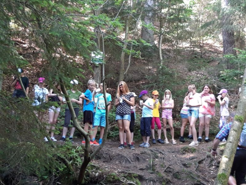 20. 6. 2019 se rozjeli žáci Ekorady pod vedením pana učitele Grassingera a paní učitelky Dostálové po pramenech a vrtech okresu Chrudim. Začátek trasy byl na Polance, kde ochutnali pramen Kapalice (čistou a chladnou vodu výborné chuti). Voda z oblasti Toulovcových maštalí se v průběhu let posouvá po geologickém podloží směrem k Polabí. Žáci se vydali za ní. Další ochutnávka proběhla v Jenišovicích. Voda zde měla více minerálů, ale také železa, což se projevilo na chuti. Poslední ochutnávka byla z vrtu v Blansku u Hrochova Týnce, kde je voda obohacena sírou. Některým žákům zřejmě proto moc nevoněla. Zhruba uprostřed cesty žáci ještě navštívily Střemošickou stráň, prohlédli si teplomilné květiny a hledali zkameněliny. Děkujeme panu Janu Douckovi z Vodních zdrojů Chrudim za zdařilé putování.