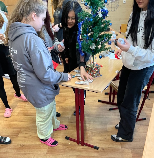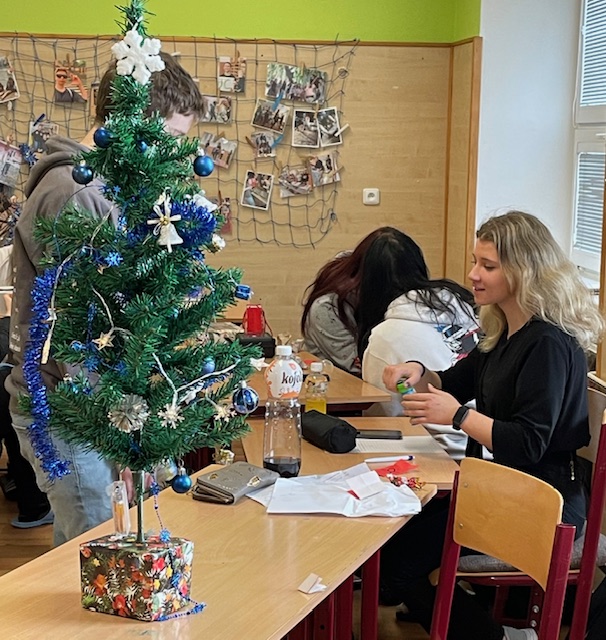 Prosinec v 9.C Mikulášská nadílka nám udělala radost, poprvé jsme totiž oblékli třídní mikiny! V turnaji v přehazované holčičí tým zabojoval, základní část vyhrál a celkově obsadil 2.místo. Den poté v turnaji ve florbale nastoupil náš mix tým (= outsideři turnaje, dle slov pana učitele Nováka) a dotáhl to až do finále! Opět skvělé 2. místo!Poslední vánoční besídku naší třídy jsme si na pohodu užili, zašli jsme na koledy pod schody a vyměnili si dárečky.