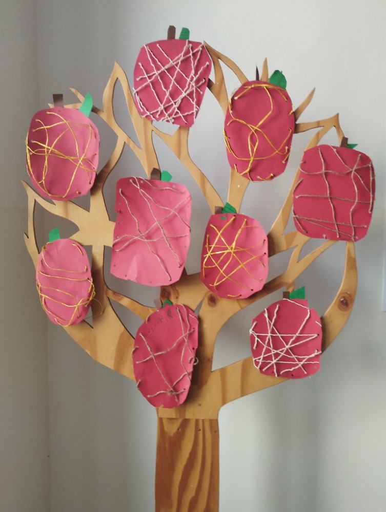 V přípravné třídě jsme se, prvních čtrnáct dní v říjnu, věnovali projektovému vyučování nazvanému "JABLÍČKOBRANÍ". Naučili jsme se pojmenovat všechny části jablíčka, které jsme si zároveň důkladně prozkoumali všemi smysly. Dozvěděli jsme se, co všechno lze z jablíček uvařit, ochutnali jsme mošt, jablíčko jsme si vyrobili z několika různých materiálů. Při pobytu venku jsme hledali stromy jabloně, porovnávali velikosti lístečků. S jablkovou babičkou jsme se uváleli veselé jablíčkové knedlíky z modelíny a projektové vyučování jsme ukončili ve školní kuchyňce, kde jsme si upekli jablkový závin. Představte si, že ho jedli i ti, kteří "prý" jablkový závin nejedí. Takový byl dobrý. :-)