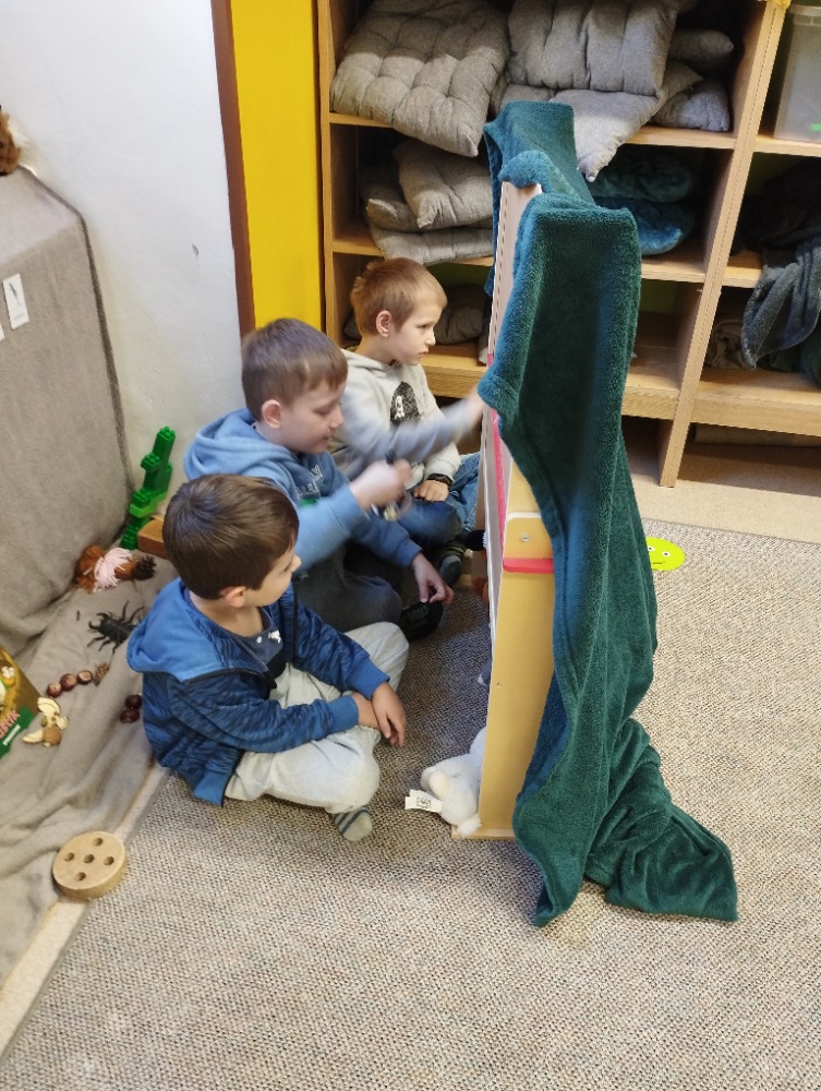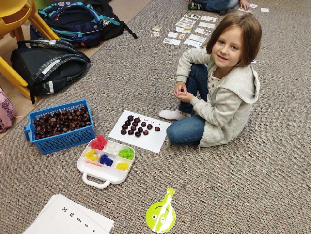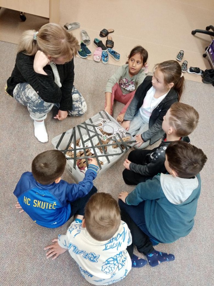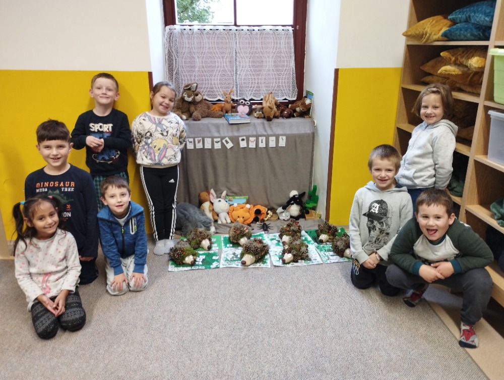 V těchto týdnech jsme v přípravné třídě pracovali s tématem Zvířátka v lese, plody lesa a podzimu. Přinesli jsme si svá plyšová zvířátka z domu, takže nám ve třídě vznikl náš "třídní les", o který jsme se čtrnáct dní starali a také doplňovali, co jsme ještě doma našli. V knihovně jsme si půjčili knihu s albi tužkou a byli jsme překvapeni z některých zvuků zvířat. Nejvíce nás zaujala veverka, to se všichni moc nasmáli.