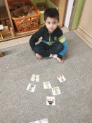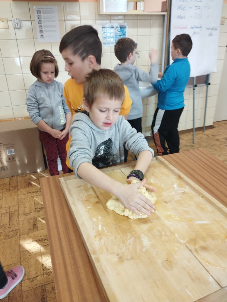 Svatého Martina jsme v přípravné třídě oslavili pečením svatomartinských rohlíčků, ale nejdříve jsme si museli dojít nakoupit suroviny do místních potravin. Paní učitelka nám připravila seznam, podle kterého jsme nakupovali. Ve třídě jsme měli překážkovou dráhu, kterou jsme zdolávali na dřevěném koni. Stříhali jsme koni hřívu, z kostiček stavěli hřebčíny, počítali jsme podkovy. Obtiskli jsme podkovy z brambory a zpívali jsme písničku "Už Martin na bílém koni" od Zdeňka Svěráka.