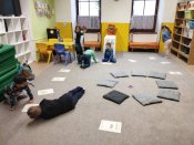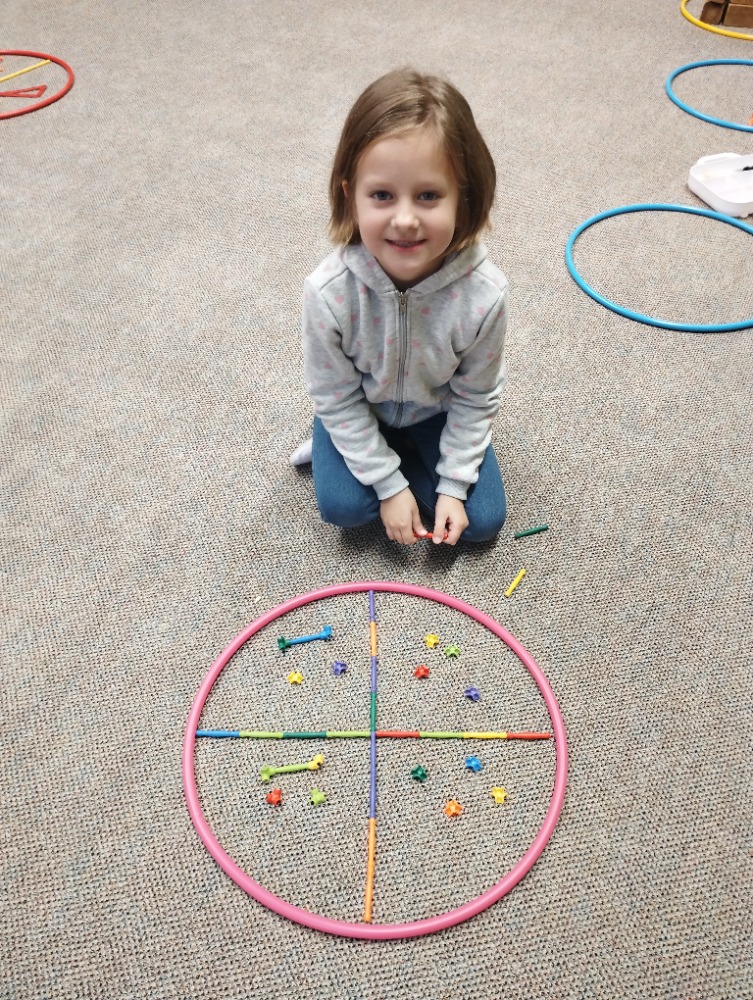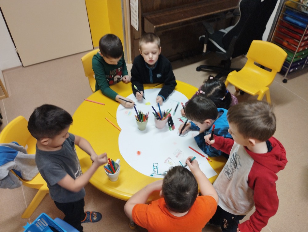 Děti s radostí poznávaly hračky a další vybavení třídy. Učili jsme se hrou nejen barvy i jejich odstíny, ale také spočítat se navzájem, vytleskat své jméno podle slabik, vybarvovat dle pokynů první omalovánku a procvičovat jemnou motoriku prostřednictvím stříhání papíru při výrobě prvního výtvoru – sluníčka za odměnu, že jsme to zvládli celý týden v přípravné třídě.