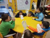 Naše téma JARNÍ OBJEVY pro nás v těchto dnech bylo velmi přínosné. Naučili jsme se mnoho kytiček, které jsme hledali i v přírodě. Oslavili jsme, že nastalo jaro i jako roční období a povídali jsme si o všem, co k jaru patří. Hodně jsme se snažili rozvíjet grafomotoriku různými neobvyklými činnostmi - písmenka z drátků, obkreslování špachtlí, práce s gumičkami dle předlohy, práce s víčky apod. Kdy náměty byly od budoucí paní učitelky, která na toto téma píše diplomovou práci. Podnikli jsme výpravu za broukem Ruměnicí pospolnou, kterou jsme pozorovali pod lupou. Z našeho putovního stromu jsme sundali vločky a ozdobili ho již jarními květy, které děti vyrobily samy. V obchodě jsme si byli koupit fazole a zkoušíme, zda nám naklíčí. Pozorujeme, jak se ze semínka stává rostlinka. Poznávali jsme ptáky, kteří k nám přilétají z teplých krajin a vytvořili svého ptáčka, který s námi vítá jaro.