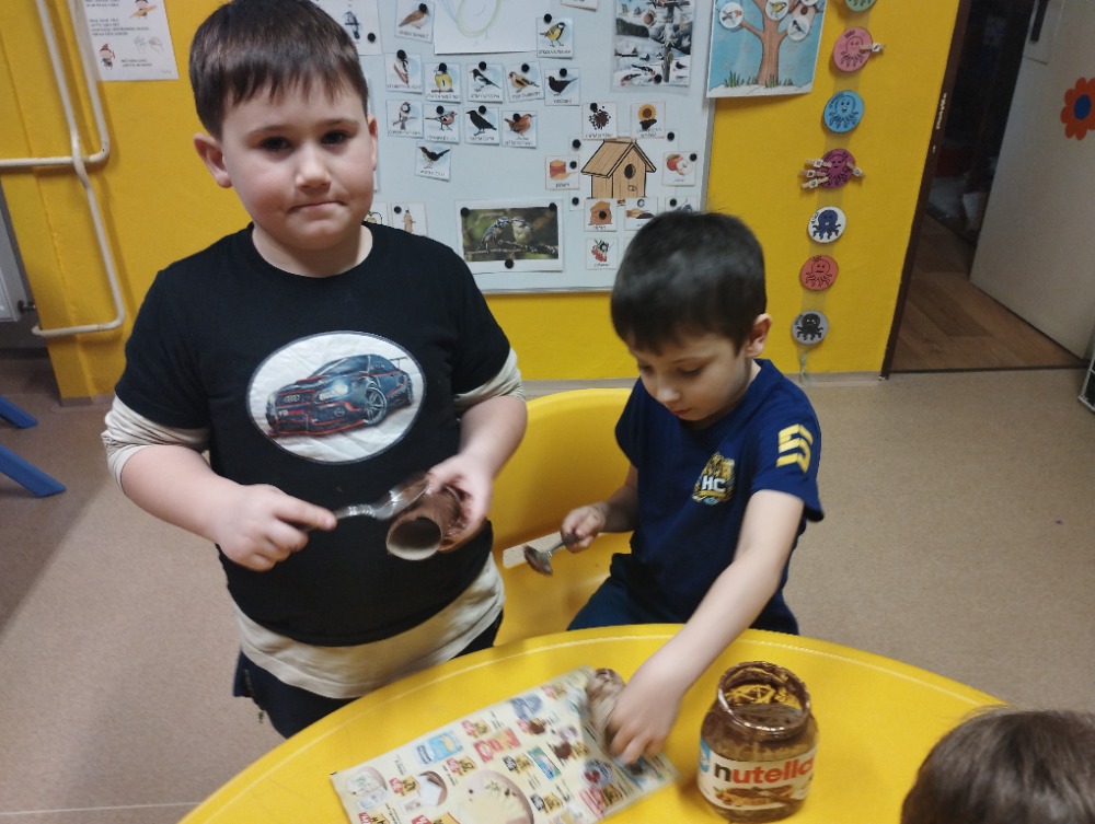 Před prázdninami jsme se zabývali tématem "Kdo přiletí na krmítko?" Naučili jsme se poznat nejčastěji vídané ptáčky u krmítek a to dokonce i podle jejich zpěvu. Všechny aktivity byly zaměřené na ptáčky, tudíž jsme měli čtrnáct dní takové "ptáčkobraní". Dozvěděli jsme se, čím ptáčky můžeme krmit, jaká existují krmítka. Opět jsme si do knihovny zašli vypůjčit knihy o ptáčcích a dokonce jsme byli koupit i jídlo pro ptáčky v místní Drogerii u pana Tyce. Při pobytu venku jsme se zaměřili na hledání hnízd na stromech, poslouchání ptačího zpěvu a pozorování ptáčků. Vyráběli jsme naše hnízdečko pro ptáčky z přírodního materiálu.