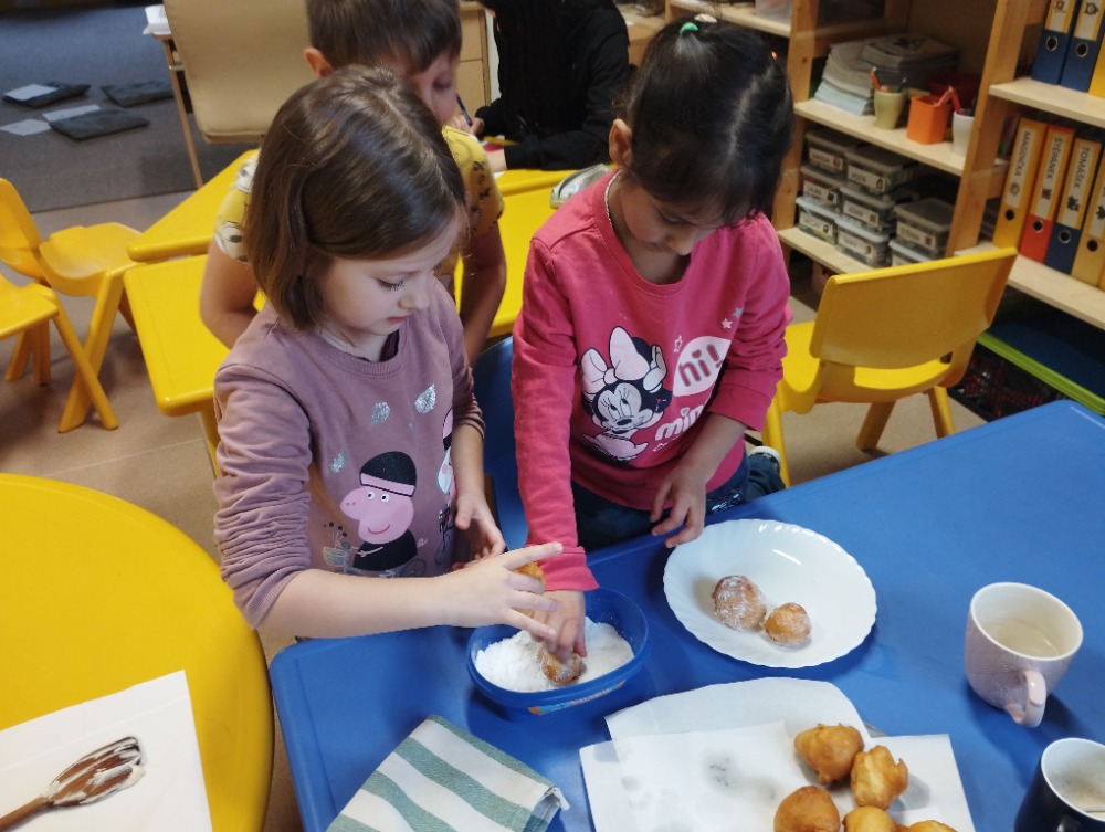 Projektové vyučování v přípravné třídě se těchto čtrnáct dní skládalo z různých činností a aktivit k Masopustu. Naše téma bylo - MASOPUST DRŽÍME A NEPUSTÍME. Zkoumali jsme masky, které dříve chodily v masopustním průvodu, povídali jsme si o zvycích a tradicích. I my sami jsme si zvolili jednodenní půst, dali jsme si výzvu, že budeme jeden den bez mobilu. Hodně jsme si hráli s barvičkami, díky počasí jsme si udělali ledové ozdoby. Vyrobili jsme si kastaněty, abychom zvládli udělat velký "rambajs" na našem karnevale ve třídě a zpívali jsme různé písničky. Řádně jsme si zatančili na moderní písničky. Usmažili jsme si tradiční koblížky, na kterých jsme si společně moc pochutnali.