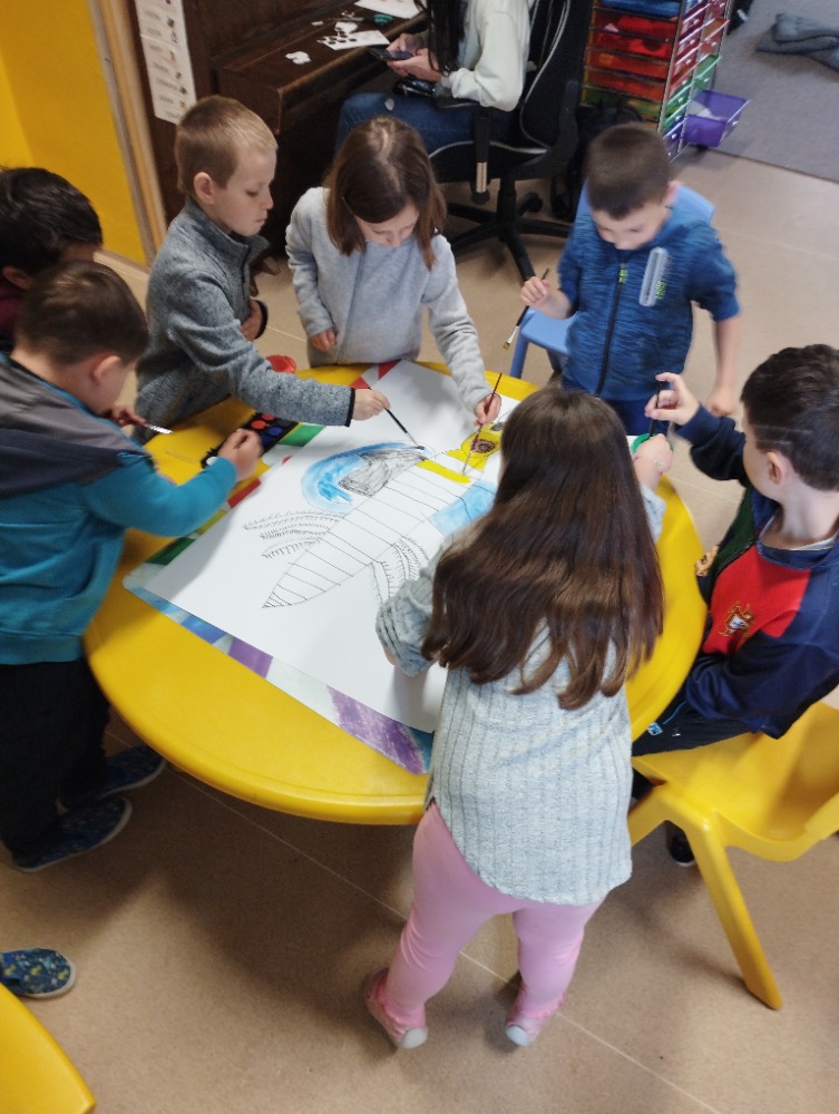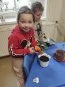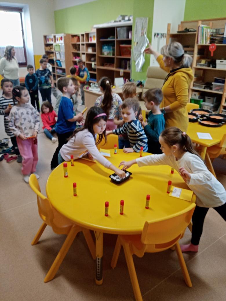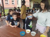 Nejdříve jsme si vysvětlili, co Den Země znamená, že naše planeta Země slaví svátek a tento svátek vyzývá k ochraně naší planety. Ve venkovní učebně pro nás byly připraveny sazeničky salátu a kedluben a k zasetí ředkvičky a hrášek. Potom jsme si ve třídě pomocí temperových barev namalovali planetu Zemi. Ve sportovní hale pro nás byla připravena stanoviště, která nám měla ukázat, jak se trénuje stolní tenis. Děti byly nadšeny, spokojeny a zpoceny. Děkujeme všem za přípravu a jsme moc rádi, že jsme se i my, jako přípravka, mohli zúčastnit.