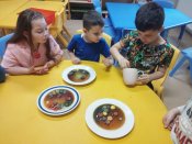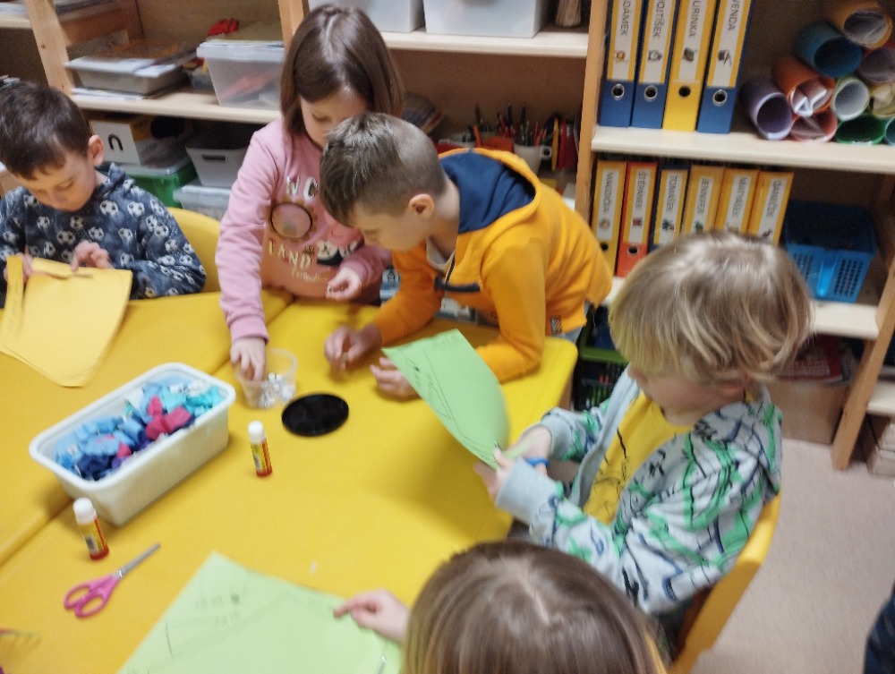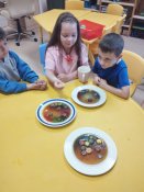 Vystříhávali jsme z časopisů obrázky potravin, které jsme rozdělovali na zdravé a nezdravé. Děti spolu hezky spolupracovaly a o všem se radily. Také jsme si společně vyrobili smoothie nápoj. Děti si vybíraly, co mají rády. Nejvíce vítězilo jablko a banán.