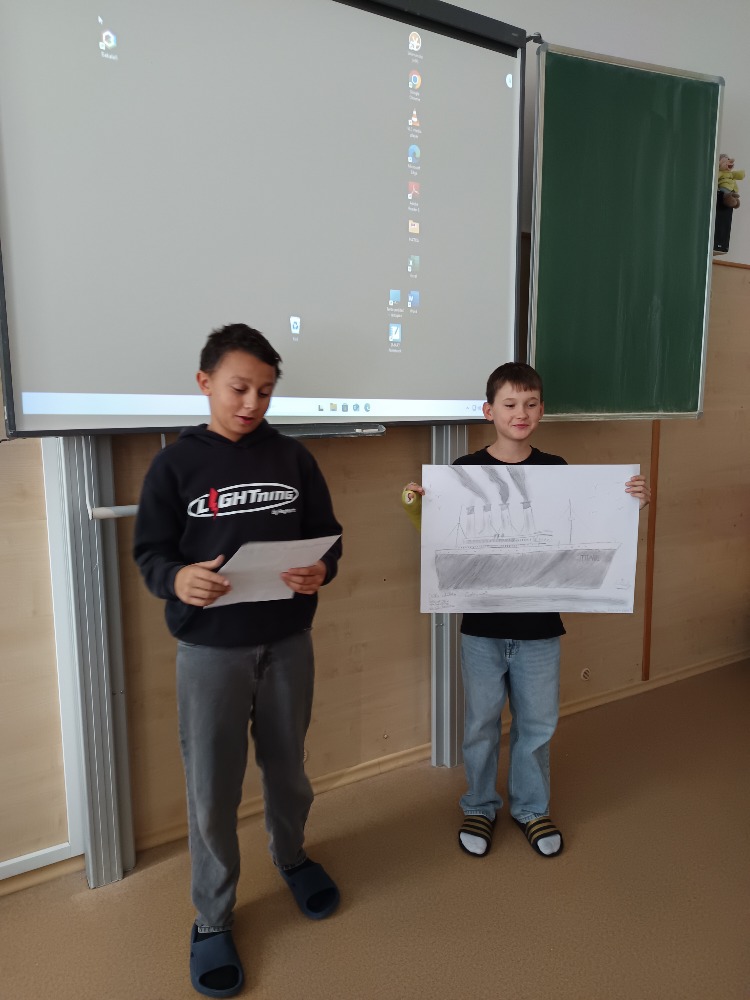 Ve čtvrtek 23. 10. se v rámci projektového dne naše třída 6. B převtělila do dětských pasažérů třetí třídy na palubě Titaniku. Zajímavé detaily přednášky všechny natolik zaujaly, že se ve zbylý čas ve třídě a někteří i doma tomuto tématu věnovali.