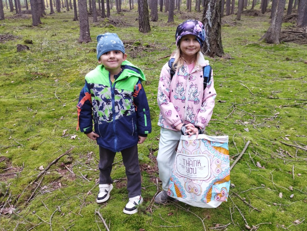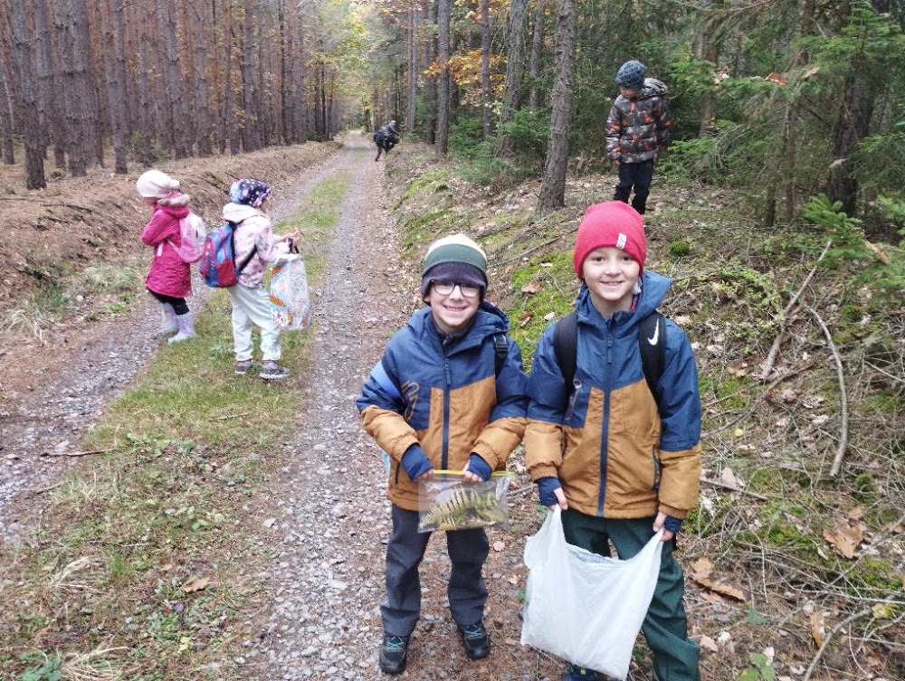 Ve čtvrtek 16.10. jsme s dětmi a skřítky Podzimníčky podnikli výpravu do lesa. Hned ráno jsme jeli autobusem do Horky. Od zastávky jsme se vydali směr Mezihoří a odbočili jsme na lesní cestu, která nás dovedla až k Horeckému rybníku. Cestou jsme sbírali lesní poklady, ze kterých jsme si v pátek vytvořili svůj vlastní les ve třídě. Celkem jsme ušli necelých 6km. Vydařilo se nám počasí a krásně jsme se provětrali.