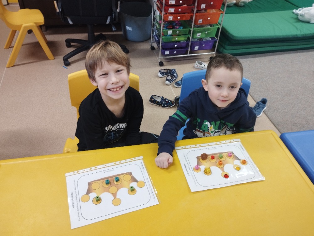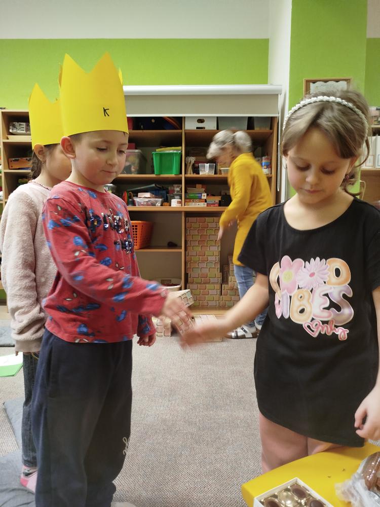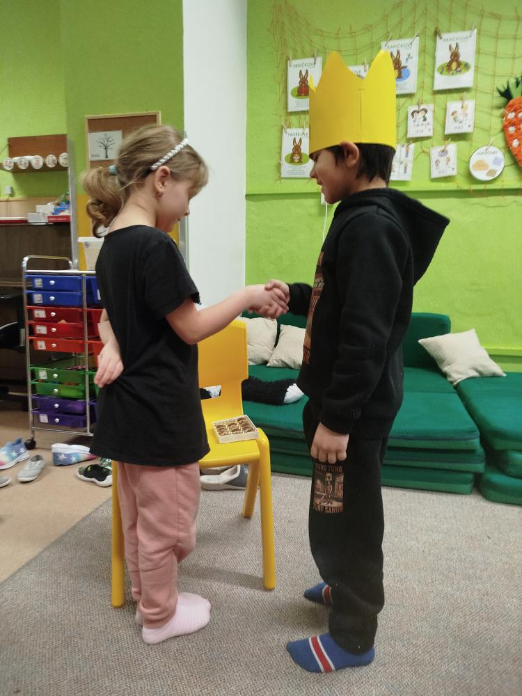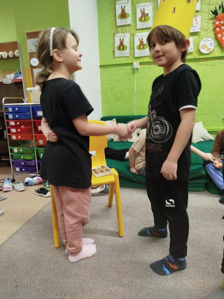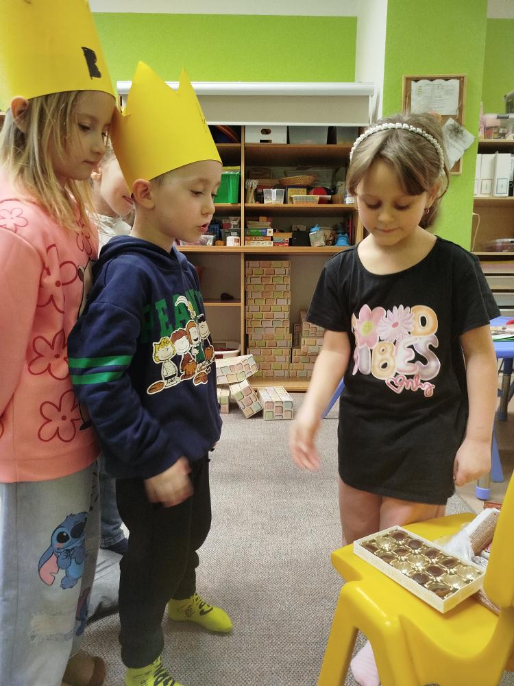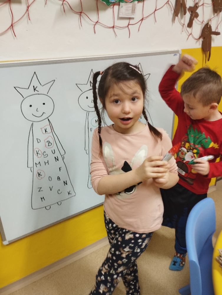 V přípravné třídě jsme se tento týden vydali po stopách Tří králů. Společně jsme si povídali o jejich cestě, symbolech a tradicích, které k tomuto období patří. Děti si s velkou chutí vyráběly královské koruny. Zdobily koruny diamanty, ty ale nebylo snadné získat – byly schované v burizonech a děti je musely pomocí magnetů opatrně vytáhnout. Tato aktivita rozvíjela jemnou motoriku, soustředění i trpělivost. Obtahovali jsme krále jedním tahem a jednoho z králů jsme si namalovali. Nechyběla ani hudba – naučili jsme se část písně „My tři králové“, kterou si děti s radostí zazpívaly a doprovodily pohybem.