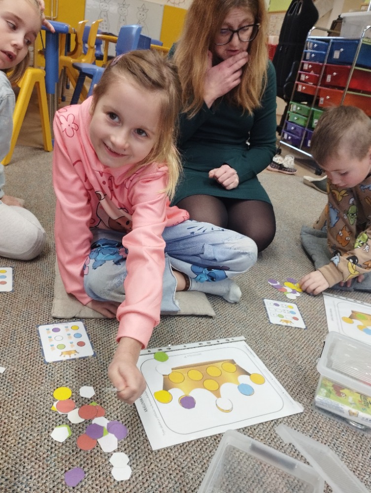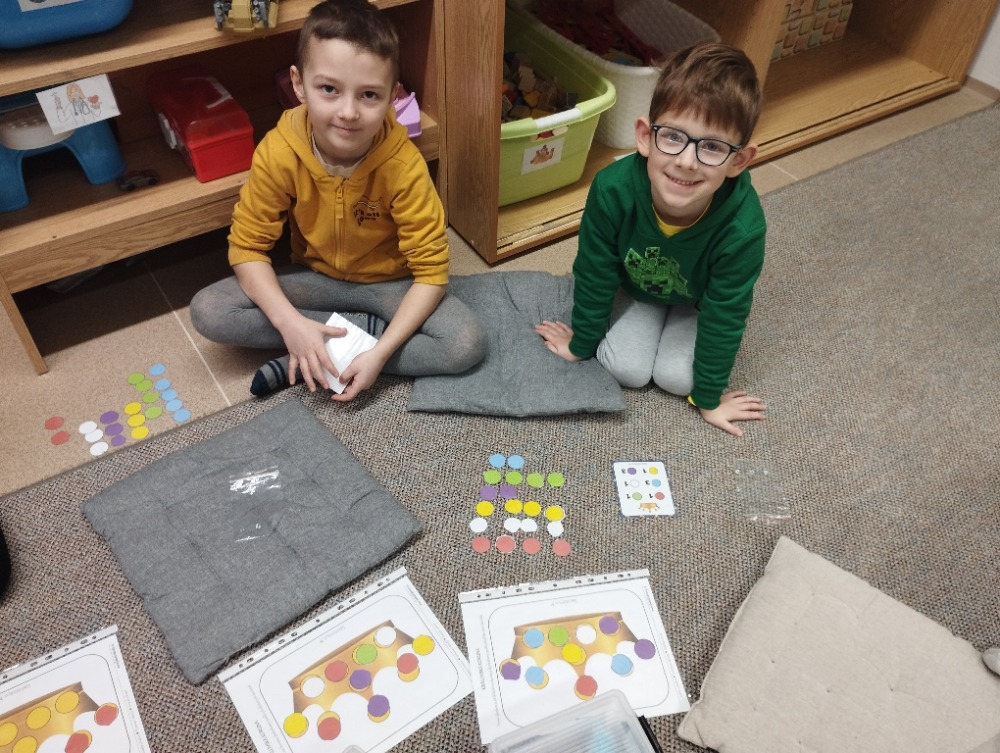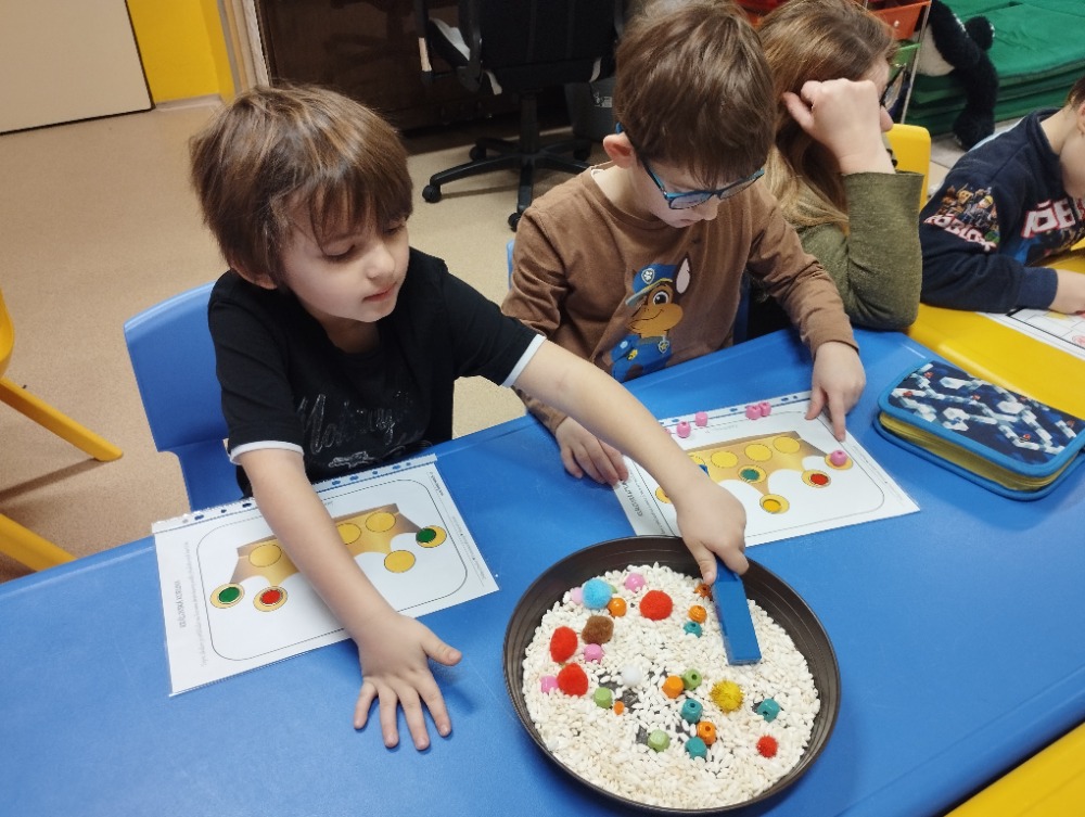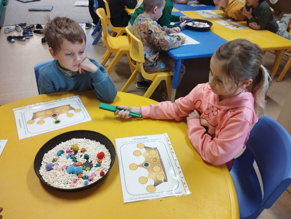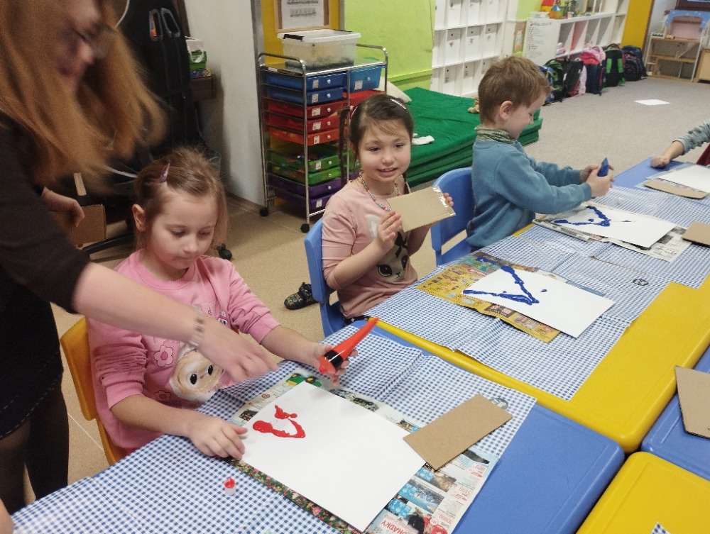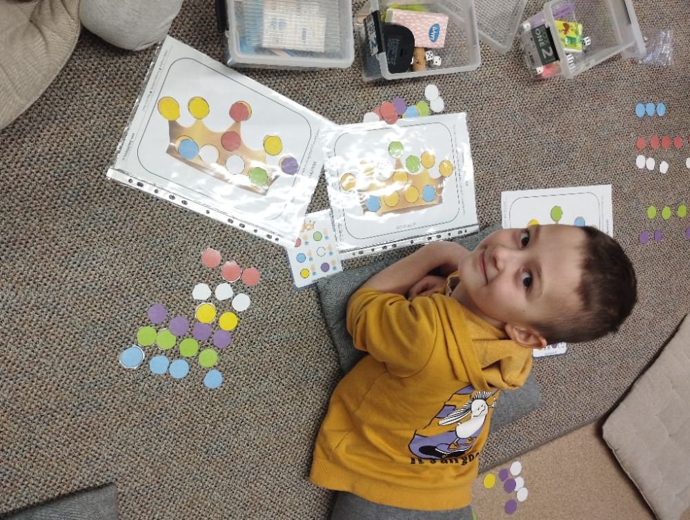V přípravné třídě jsme se tento týden vydali po stopách Tří králů. Společně jsme si povídali o jejich cestě, symbolech a tradicích, které k tomuto období patří. Děti si s velkou chutí vyráběly královské koruny. Zdobily koruny diamanty, ty ale nebylo snadné získat – byly schované v burizonech a děti je musely pomocí magnetů opatrně vytáhnout. Tato aktivita rozvíjela jemnou motoriku, soustředění i trpělivost. Obtahovali jsme krále jedním tahem a jednoho z králů jsme si namalovali. Nechyběla ani hudba – naučili jsme se část písně „My tři králové“, kterou si děti s radostí zazpívaly a doprovodily pohybem.
