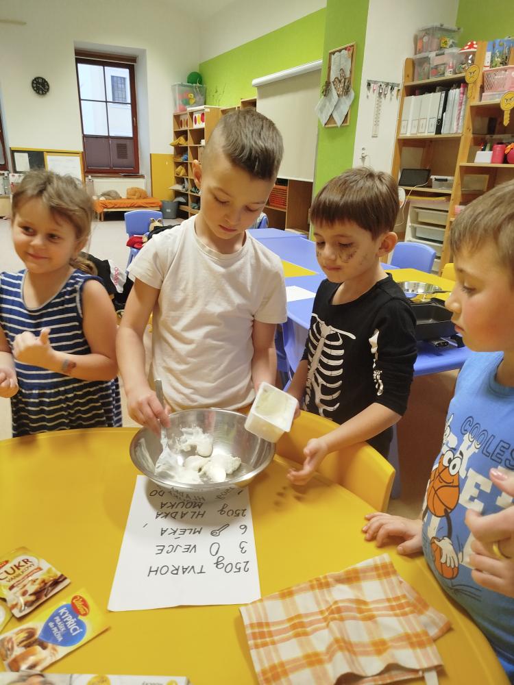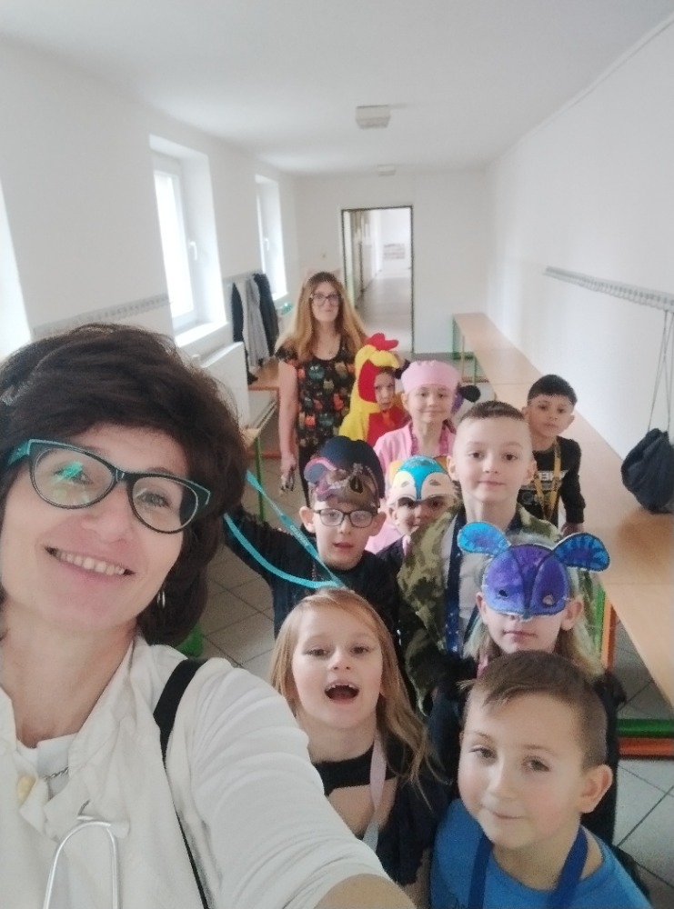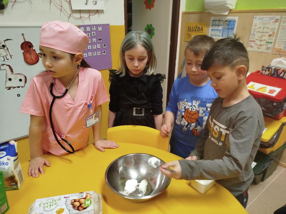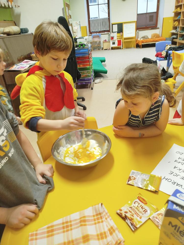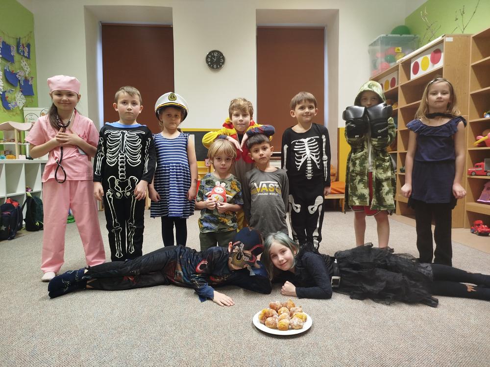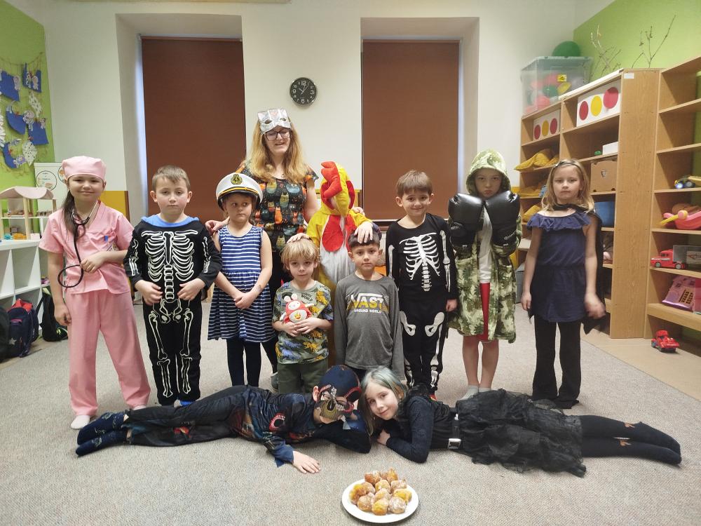 Masopust je čas veselí, masek a dobrého jídla – a přesně v tomto duchu se nesl i masopustní týden v naší přípravné třídě. S dětmi jsme si povídali o tom, co masopust znamená, jak se slavil dříve a jaké tradiční masky k němu patřily. Děti se dozvěděly, proč se lidé převlékali, jakou roli měly jednotlivé masky a proč byl masopust vždy plný smíchu a zábavy. Nezůstali jsme ale jen u povídání. S maňásky jsme si zahráli divadlo. Společně jsme se vydali nakoupit suroviny na smažení koblížků a už samotná příprava byla pro děti velkým zážitkem. V pátek pak přišla ta nejsladší část – smažení koblížků. Vůně se linula celou třídou a děti si pochutnaly na vlastnoručně připravené masopustní dobrotě. Vyvrcholením celého týdne byl masopustní karneval. Každé dítě přišlo v masce a třída se na chvíli proměnila v kouzelné místo plné pohádkových bytostí, zvířat i hrdinů. Kromě toho jsme si vytvořili vlastní škrabošky na obličej a masopustní masky jsme také kreslili, aby si děti mohly vyzkoušet, jaké to je být návrhářem masek. Masopustní týden jsme si všichni moc užili. A jedno je jisté – masopust držíme a nepustíme!