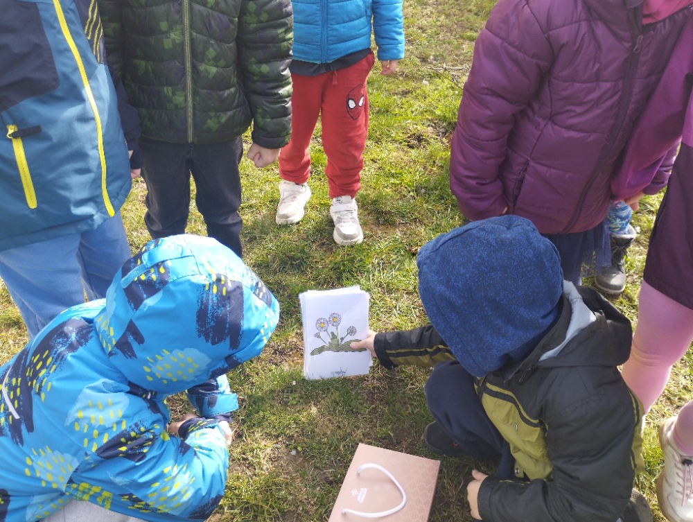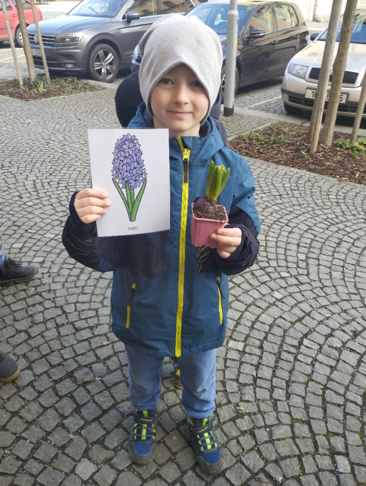 Naše pozorování jsme si zpestřili malou „jarní pátračkou“. Podle obrázků, které jsme si pojmenovali ve třídě, bylo naším úkolem najít "opravdické" kytičky v přírodě. Děti s nadšením hledaly sněženky, bledule nebo první narcisky. Učily se všímat si detailů, porovnávat obrázek se skutečností a objevovat krásu probouzející se přírody.