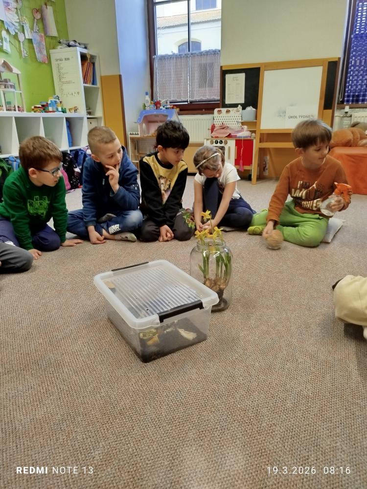 S příchodem teplejších dnů jsme se s dětmi z přípravné třídy vydali přivítat jaro do přírody. Společně jsme si povídali o tom, jak poznáme, že zima už pomalu končí, a co všechno se na jaře mění. Děti samy přicházely s krásnými postřehy.