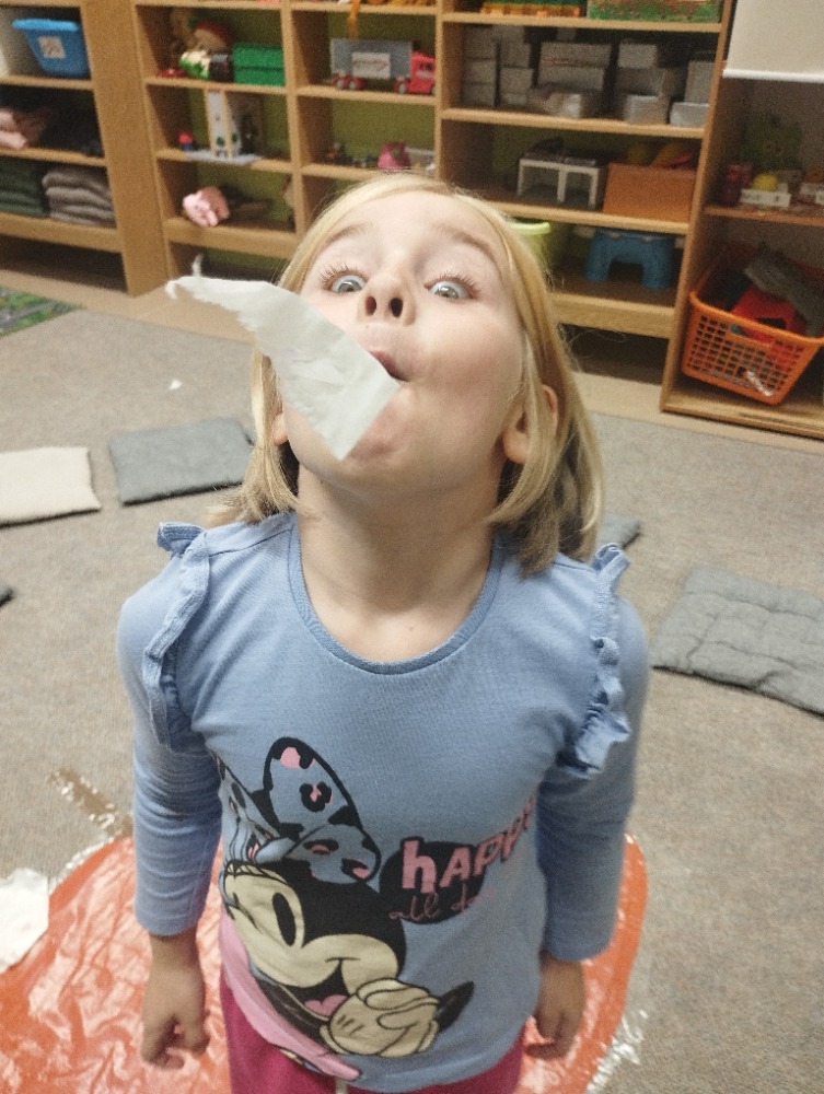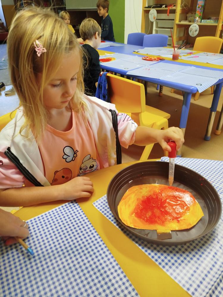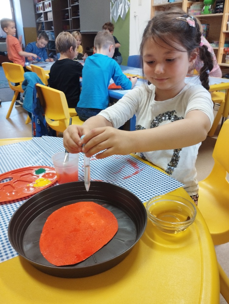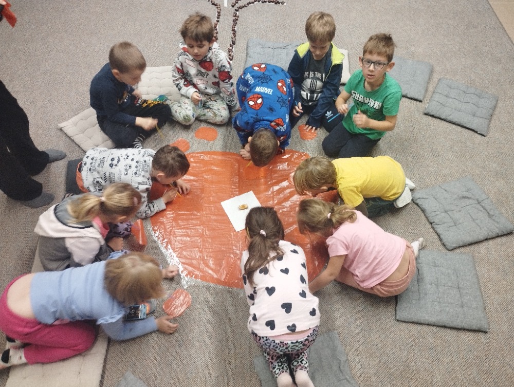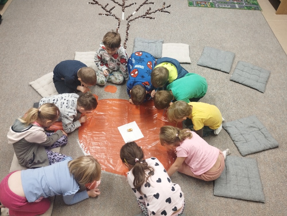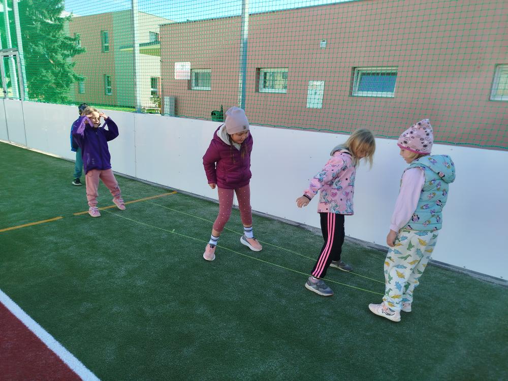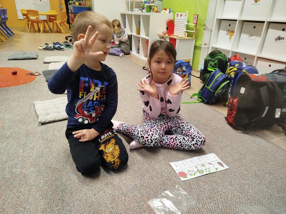 Minulý týden jsme s dětmi začali projektové vyučování "jablíčkobraní". Začali jsme tím, že si děti přinesly dvě jablíčka a ty jsme celý týden zkoumali. Učili jsme se pojmenovávat jeho části, ochutnávali jsme ho. A nyní jsou všechny naše činnosti zaměřené na jablíčka. V tělocvičně jsme cvičili s overbally jako s jablíčky, po žebřinách jsme si vyšplhali pro jablíčko. Z kaštanů, které jsme si sami nasbírali, jsme vytvořili jabloň na koberci. Bylo milé, že jsme se mohli podívat i k jedné babičce na zahradu, kde jsme měli jabloň přímo před sebou. Nezapomněli jsme ani na zámeckou zahradu, kde jsme pozorovali menší jablůňky. Činnosti ve třídě byly zaměřené na počítání s jablíčky, naučili jsme se písničku Koulelo se koulelo, nakreslili jsme si jablíčko temperovými barvami se sodou, jako experiment jsme na něj nakapali ocet a jablíčko nám šumělo. Červík nám prolezl jablíčkem - pomocí provázku, jsme mu udělali cestičky. Byli jsme rádi, že jsme mohli být i na interaktivní tabuli, kde jsme toho mnoho procvičili.